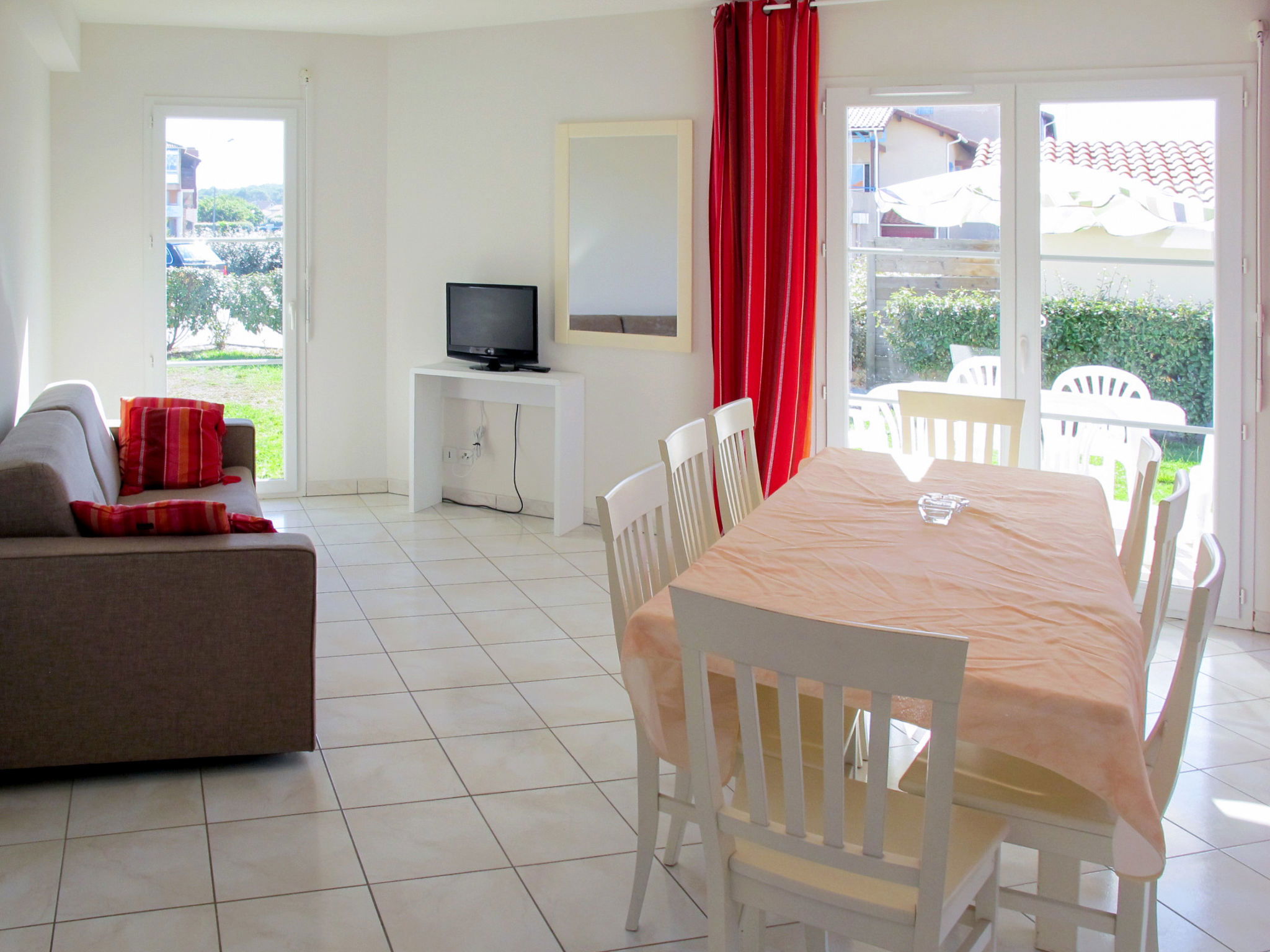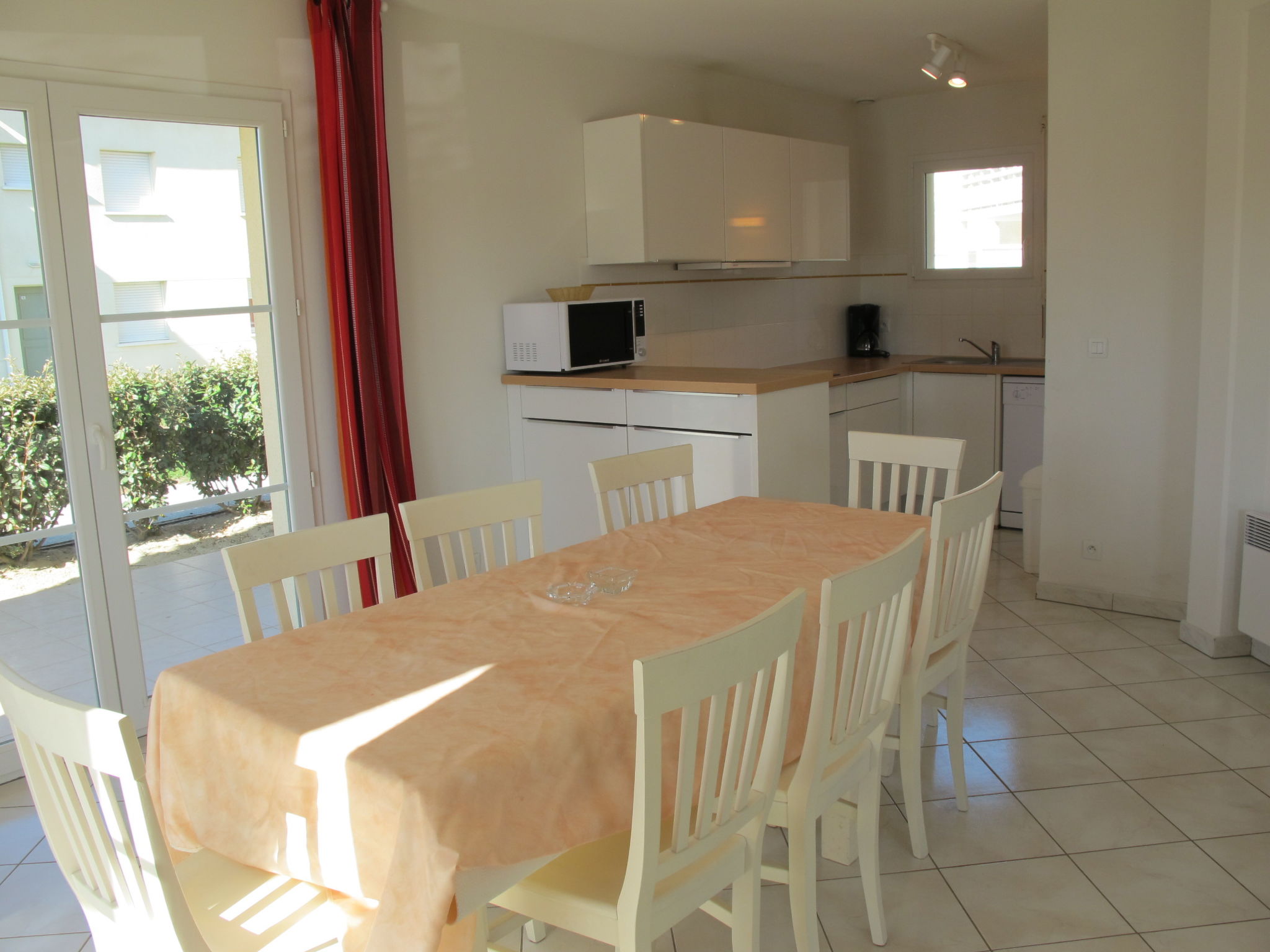 "Résidence Indigo II", maison 5 pièces 90 m2 sur 2 niveaux. Clair, aménagement fonctionnel et plaisant: séjour/salle à manger avec table pour les repas et TV (écran plat). Sortie sur la terrasse. 1 chambre avec 1 grand-lit (140 cm, longueur 190 cm). Sortie sur le jardin. Coin cuisine (lave-vaisselle, 4 plaques vitrocéramiques, grille-pain, bouilloire électrique, micro-ondes, congélateur, cafetière électrique). Douche/WC. À l'étage supérieur: 1 chambre avec 1 grand-lit (140 cm, longueur 190 cm). 1 chambre avec 2 lits (90 cm, longueur 190 cm). Sortie sur le balcon. 1 chambre avec 2 lits (90 cm, longueur 190 cm). Salle de bains, WC séparé. Chauffage électrique. Balcon, terrasse partiellement couverte. Meubles de terrasse. A disposition: lave-linge, fer à repasser, chaise haute pour enfant, lit bébé (en sus). Internet (Connexion WIFI, gratuit). Veuillez noter: maximum 1 animal/ chien autorisé. Détecteur de fumée.
