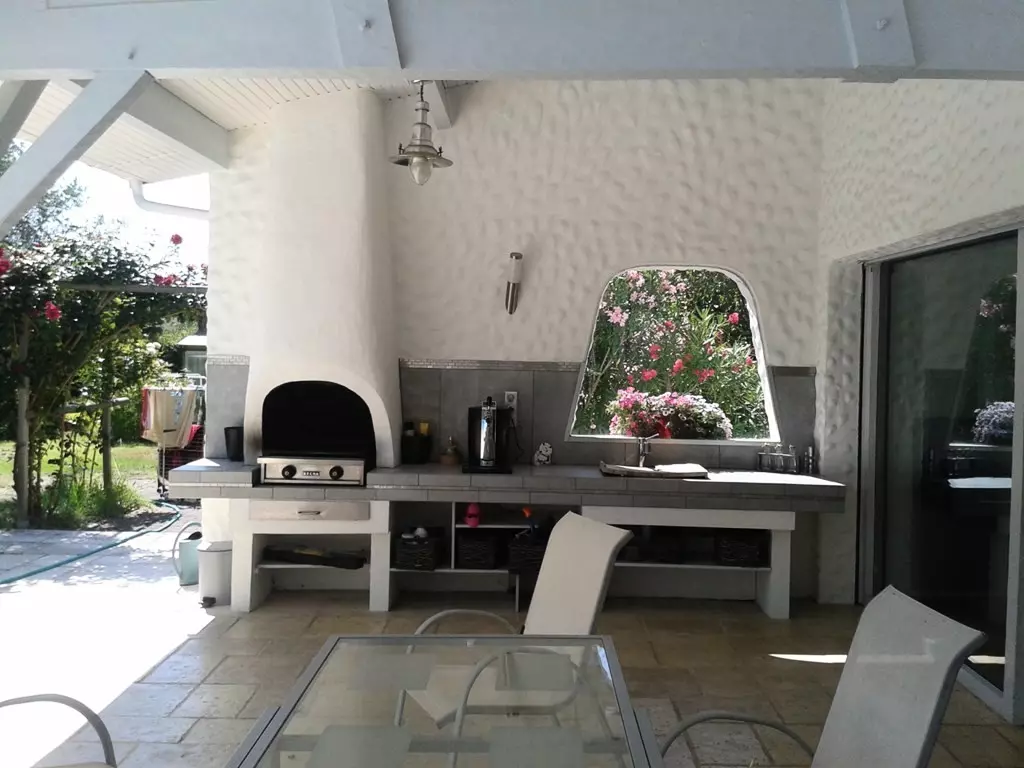 Terrasse couverte de 50m2, cuisine d'été avec plancha et transats