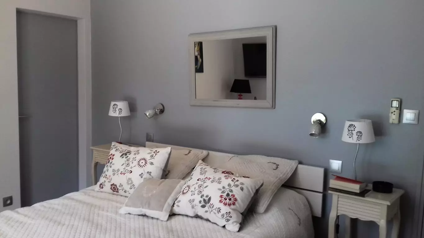1 chambre bleue: 1 lit en 160, placard , salle d'eau attenante