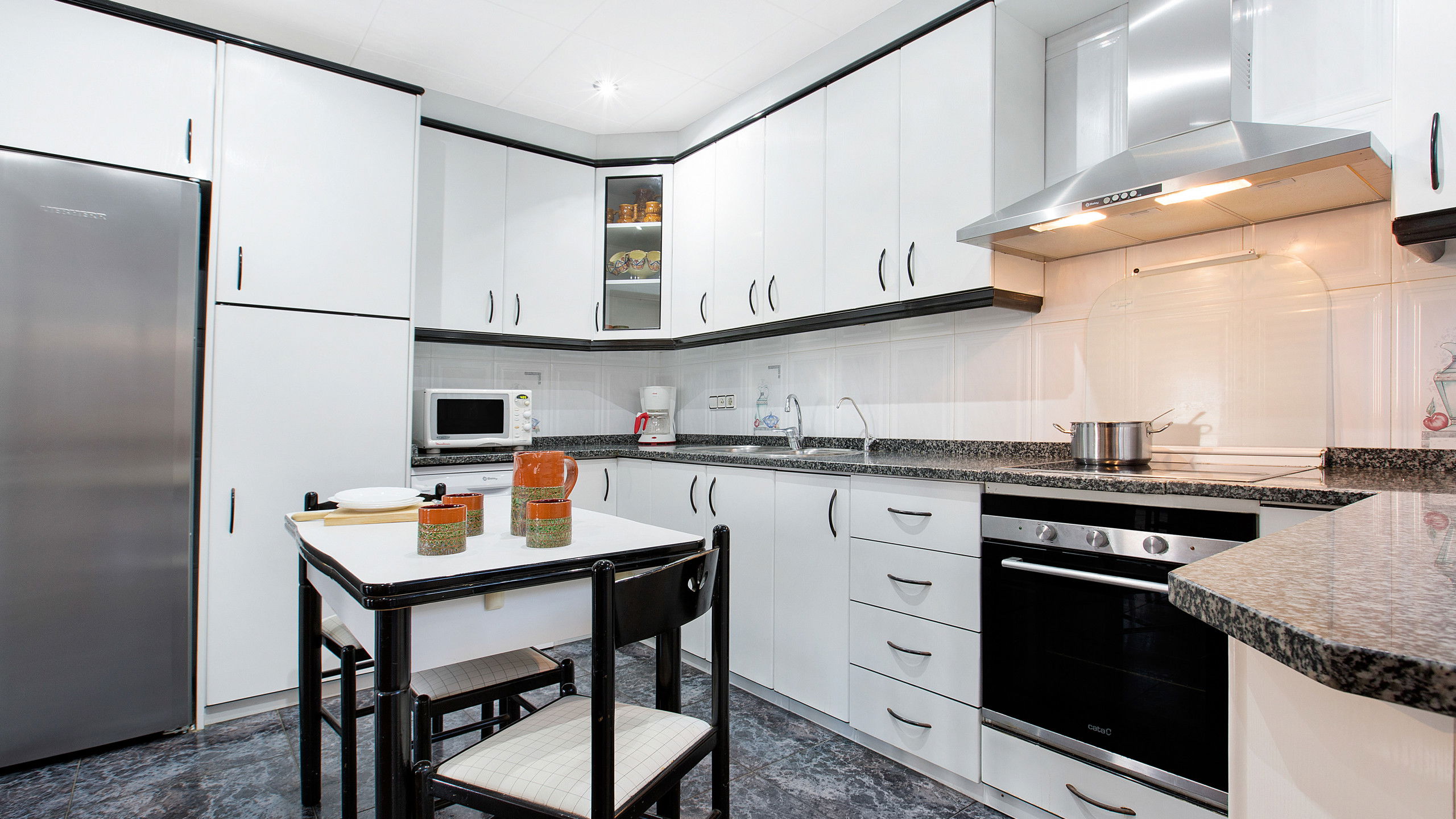 140 m2 de surface intérieure avec un spacieux salon-salle à manger avec TV et accès direct à la terrasse. Cuisine entièrement équipée avec tout ce dont vous avez besoin pour cuisiner tels que: couverts, casseroles, réfrigérateur, micro-ondes, grille-pain, four, lave-linge et lave-vaisselle.