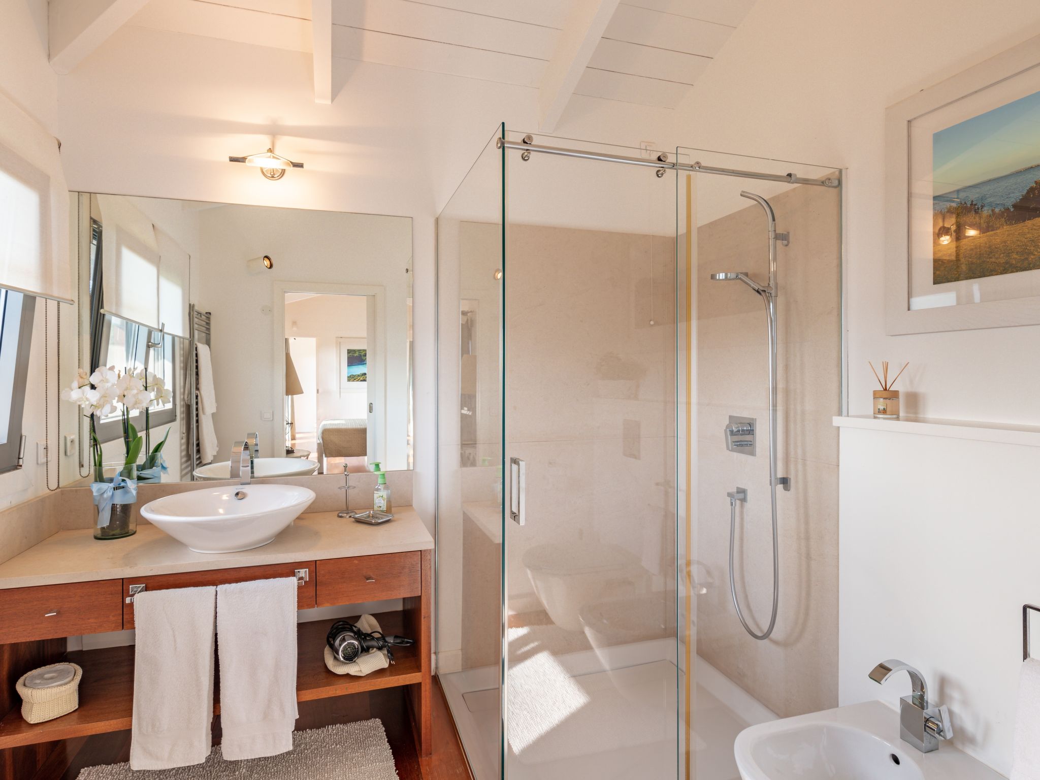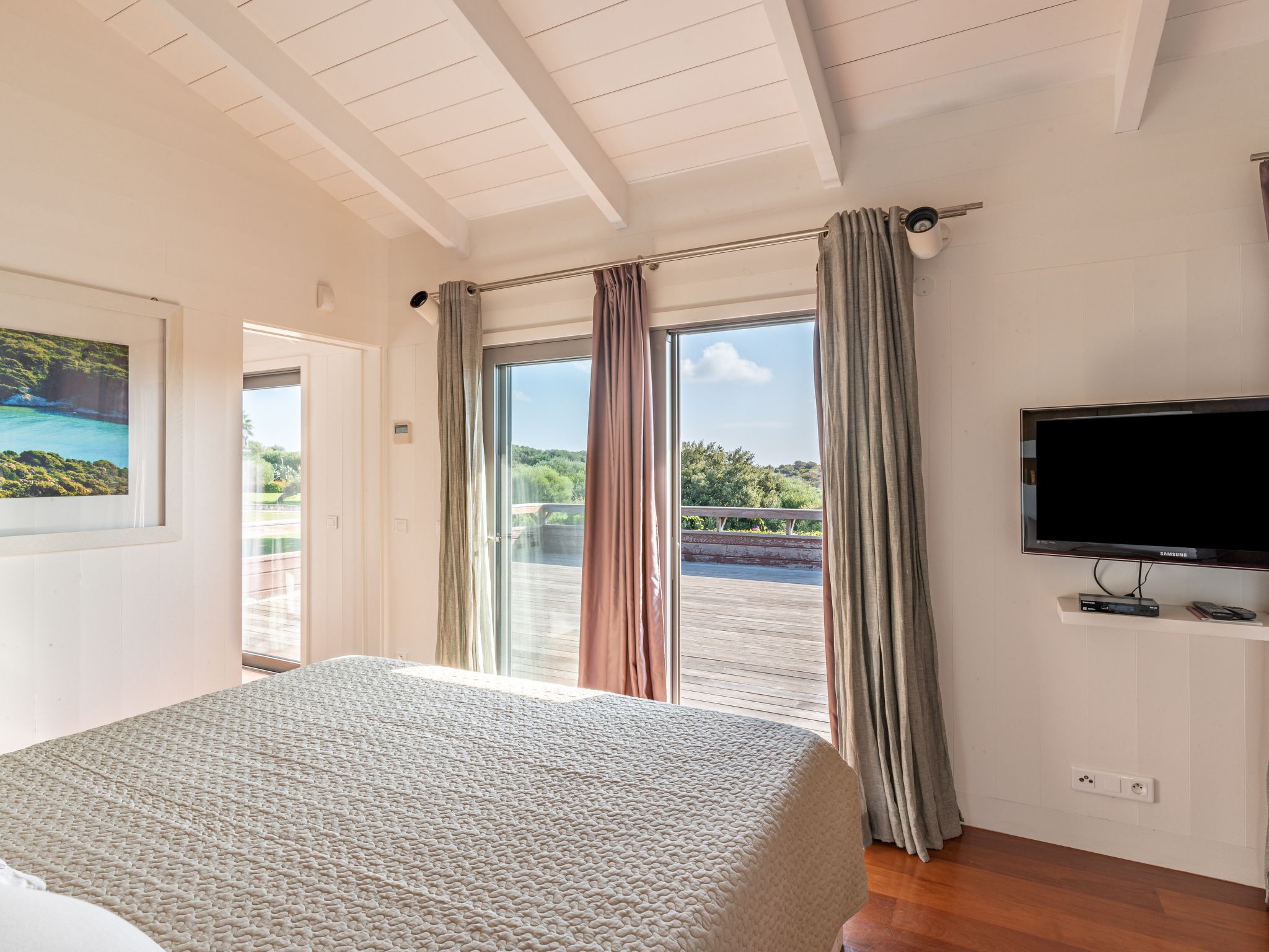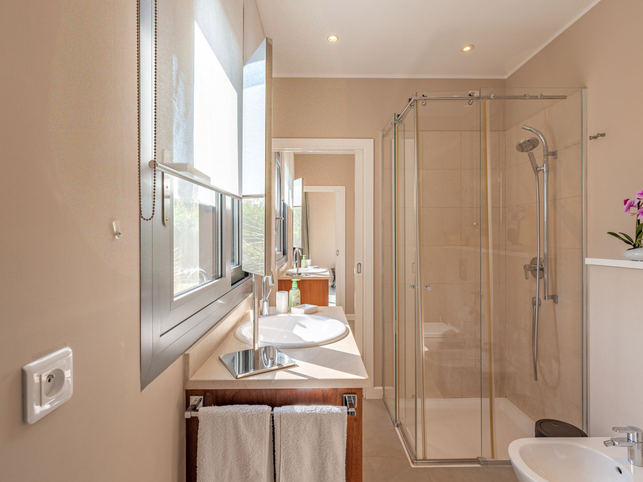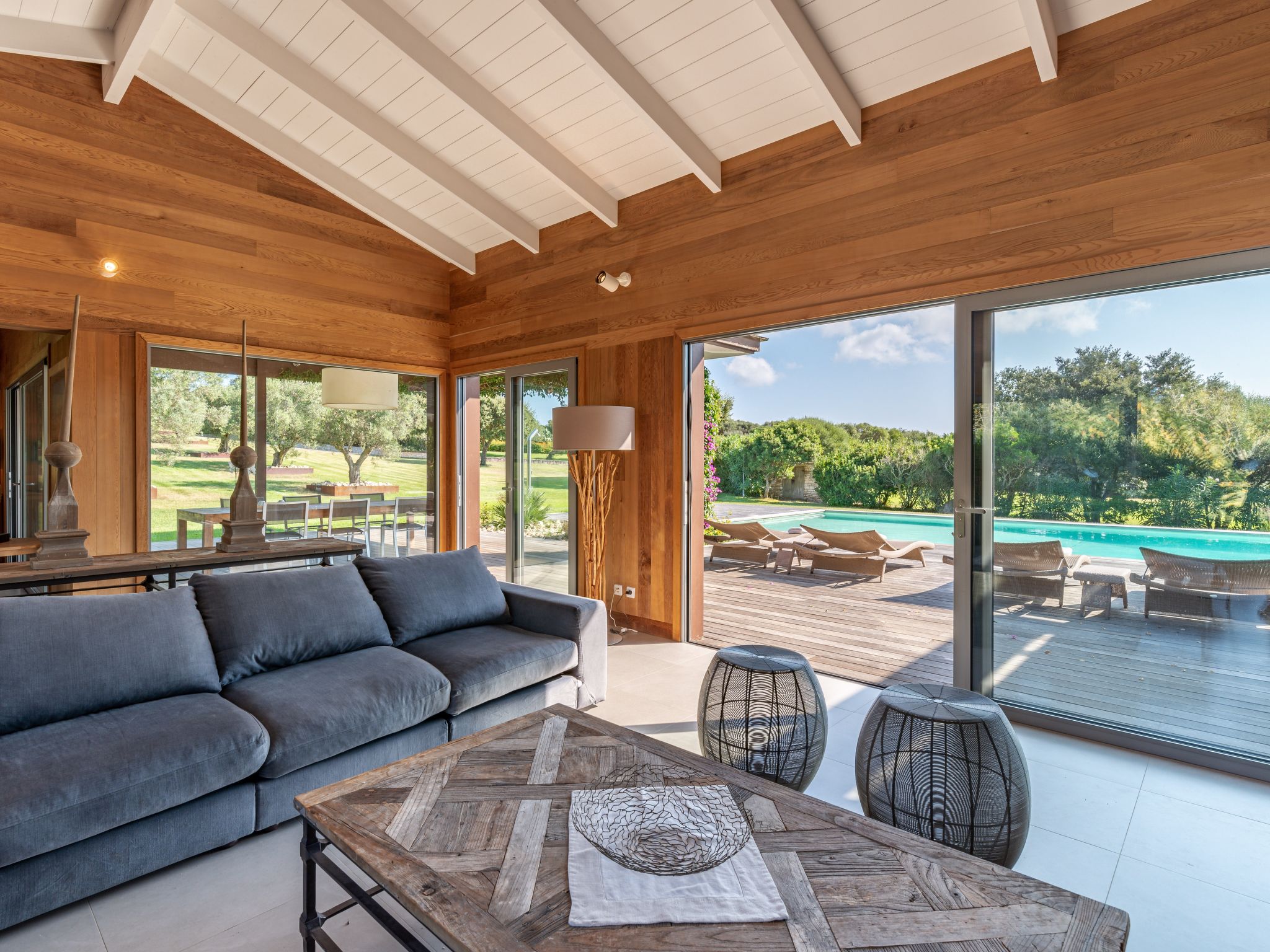 Spacieux et clair, aménagement très confortable et agréable: grand séjour/salle à manger avec cheminée (uniquement à titre de décoration), WC séparés et TV (écran plat). Sortie sur la terrasse, sur la piscine. 1 chambre avec 2 x 2 lits superposés (90 cm, longueur 190 cm), douche/bidet/WC. Sortie sur la terrasse, sur la piscine. 1 chambre avec 1 lit double (180 cm, longueur 190 cm), douche/bidet/WC. Sortie sur la terrasse, sur la piscine. 1 chambre avec 1 lit double (180 cm, longueur 190 cm), douche/bidet/WC. Sortie sur le jardin. Grande cuisine ouverte (four, lave-vaisselle, 5 plaques à induction, grille-pain, bouilloire électrique, four micro-ondes, cafetière électrique, Capsules pour machine à café (Nespresso)). WC séparé. Air-conditionné.