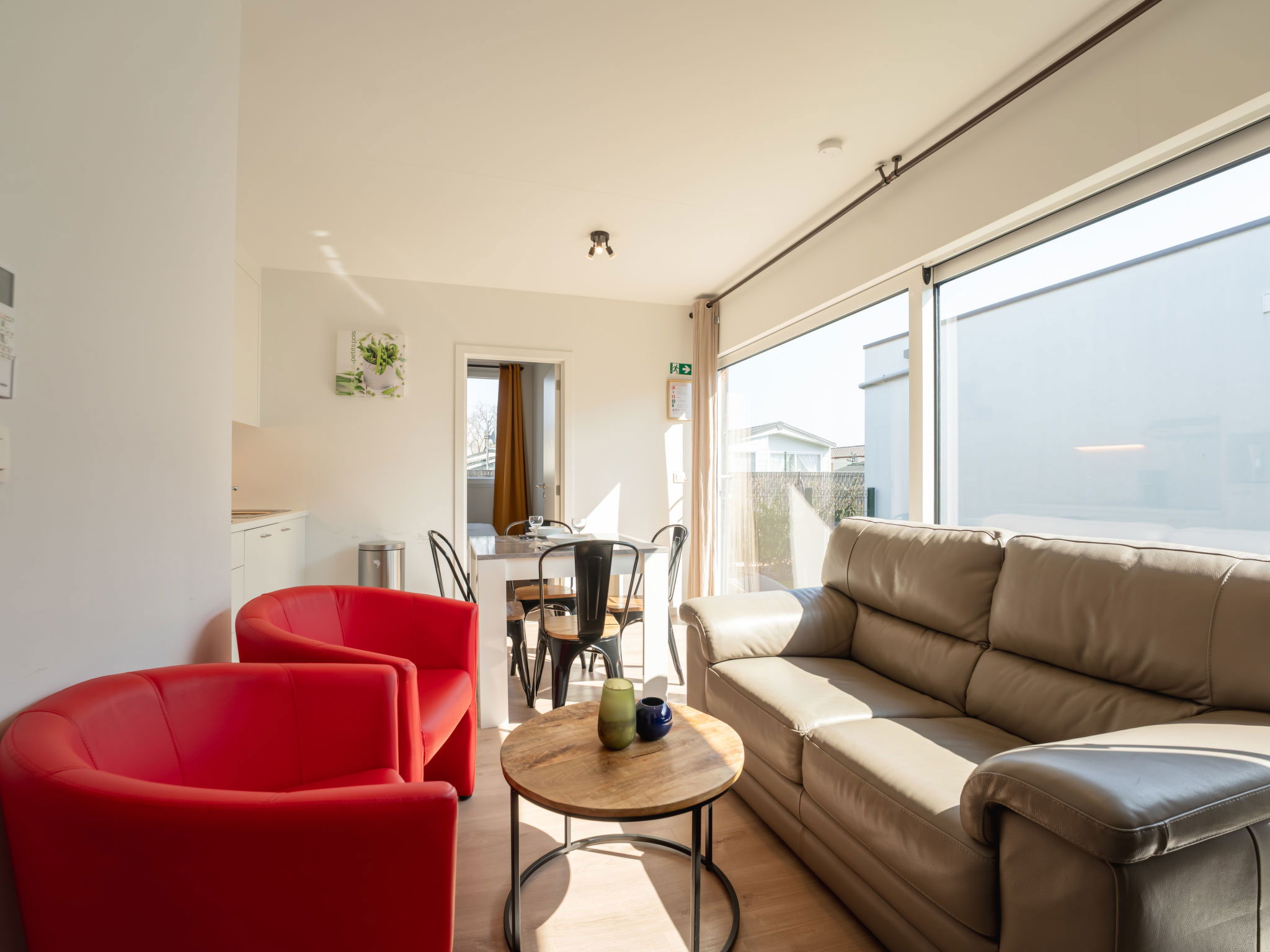 "New Dahlia 13 with parking", chalet 3 pièces 44 m2. Aménagement confortable et moderne: séjour/salle à manger avec table pour les repas, WC séparés, Télévision numérique et chaînes de TV internationales. Sortie sur la terrasse. 1 chambre double avec 1 lit double (160 cm, longueur 200 cm), lavabo, douche/WC et air-conditionné. 1 chambre double avec 2 lits (80 cm, longueur 200 cm), lavabo et douche. Cuisine ouverte (lave-vaisselle, 4 plaques à induction, grille-pain, bouilloire électrique, congélateur, cafetière électrique, combiné micro-ondes). Meubles de terrasse. A disposition: sèche-cheveux. Internet (Connexion WIFI, gratuit). Place de parking (1 Voiture). Veuillez noter: maison non-fumeur. Maximum 1 animal/ chien autorisé. TV seulement NL, FR. Détecteur de fumée, extincteur. LD394680