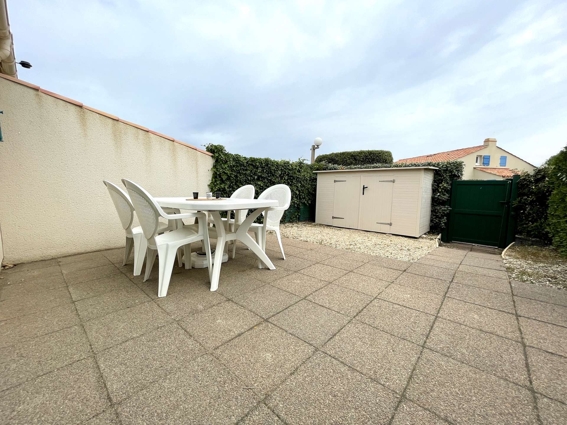 Les Plus de cette location à la mer : piscine sécurisée et chauffée, courts de tennis, jardinet clos avec terrasse, salon de jardin et transats, parking privatif.