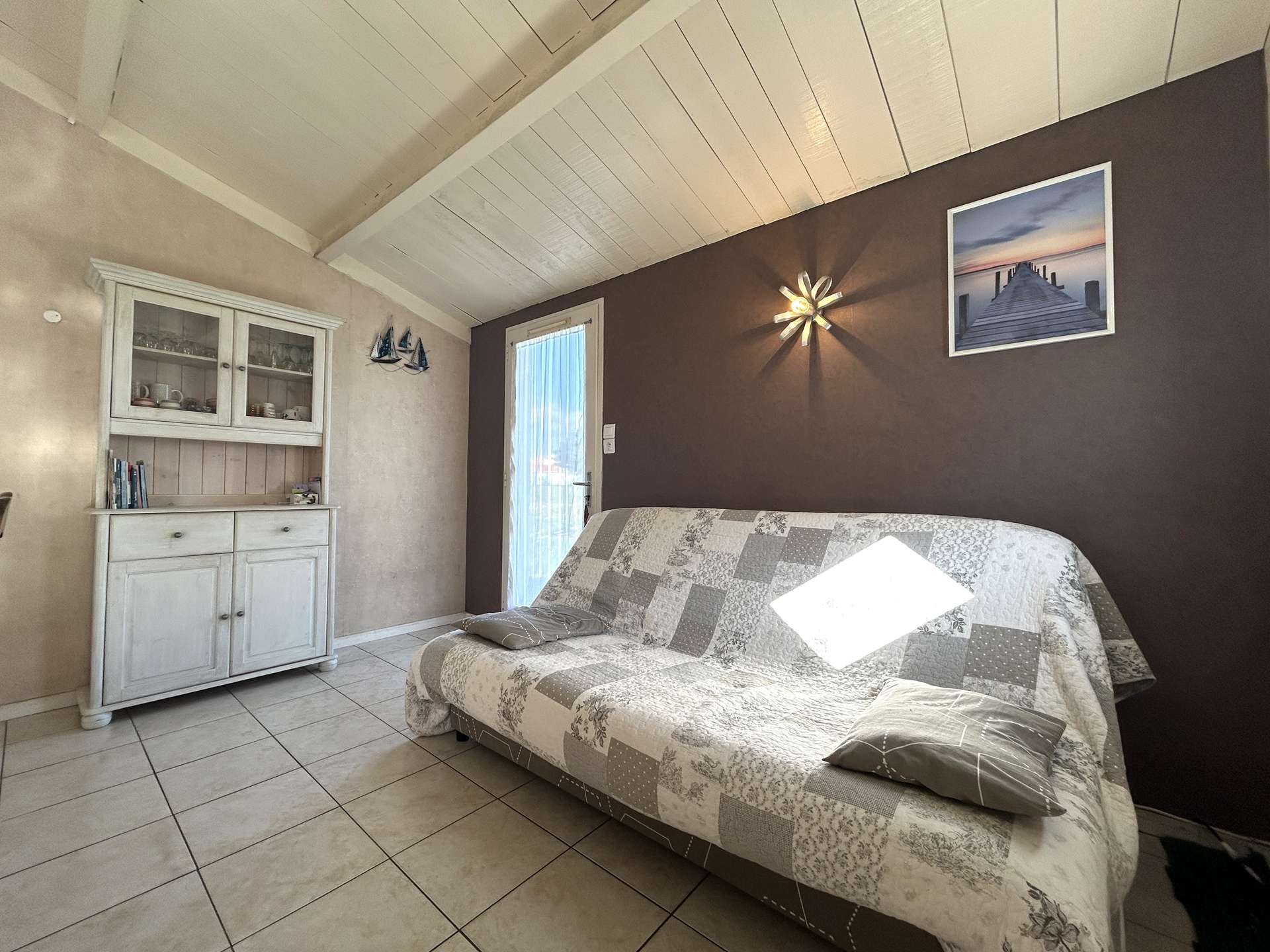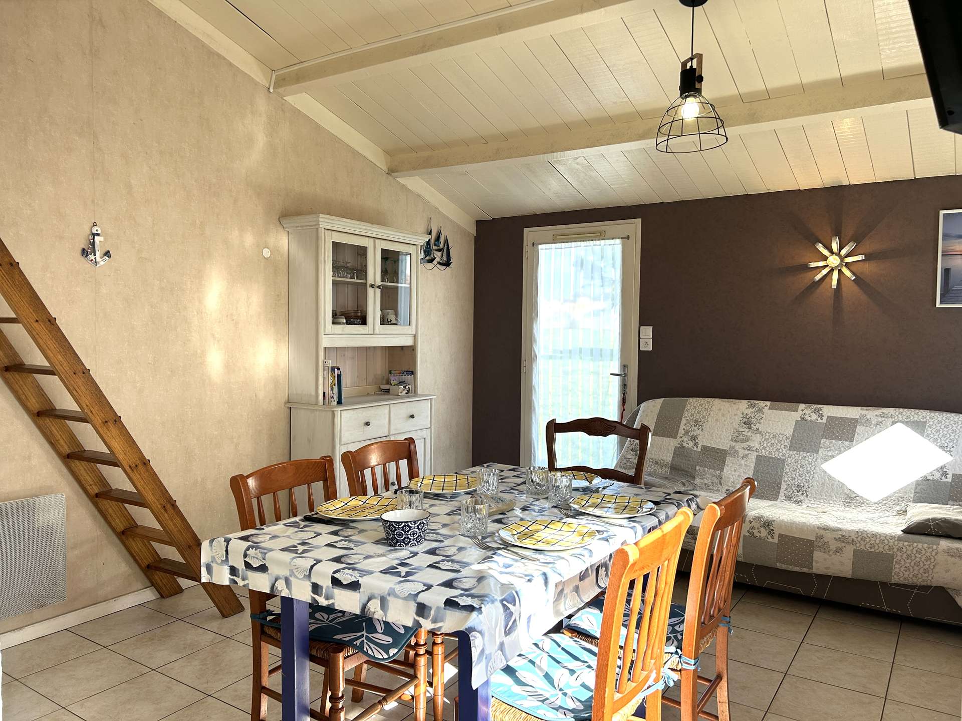 Cette maison de vacances comprend un coin-cuisine avec plaque induction et micro-ondes,réfrigérateur/congélateur, un séjour avec télévision et canapé convertible, une chambre avec un lit double, une mezzanine (hauteur maximal 1m40 avec pour accès une échelle de meunier) avec un lit simple, une salle d'eau, un wc.