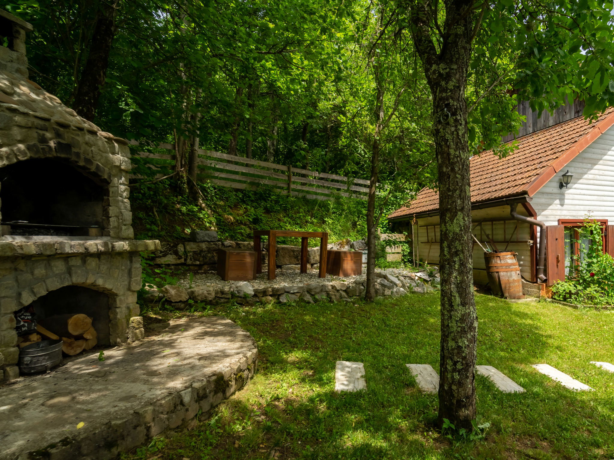 Velika Lešnica à 3 km de Brod na Kupi: Maison individuelle "Gorski Raj". Situation tranquille, à 50 km de la mer, à 50 km de la plage. A usage privé: terrain 400 m2 (clôturé), jardin 50 m2. Barbecue. Infrastructures de la Maison: accès internet, lave-linge. Place de parking près de la maison sur le terrain. Magasins 3.5 km, restaurant 3.5 km, arrêt de bus 3.7 km. Attractions à proximité: Rafting Croatia 2 km.