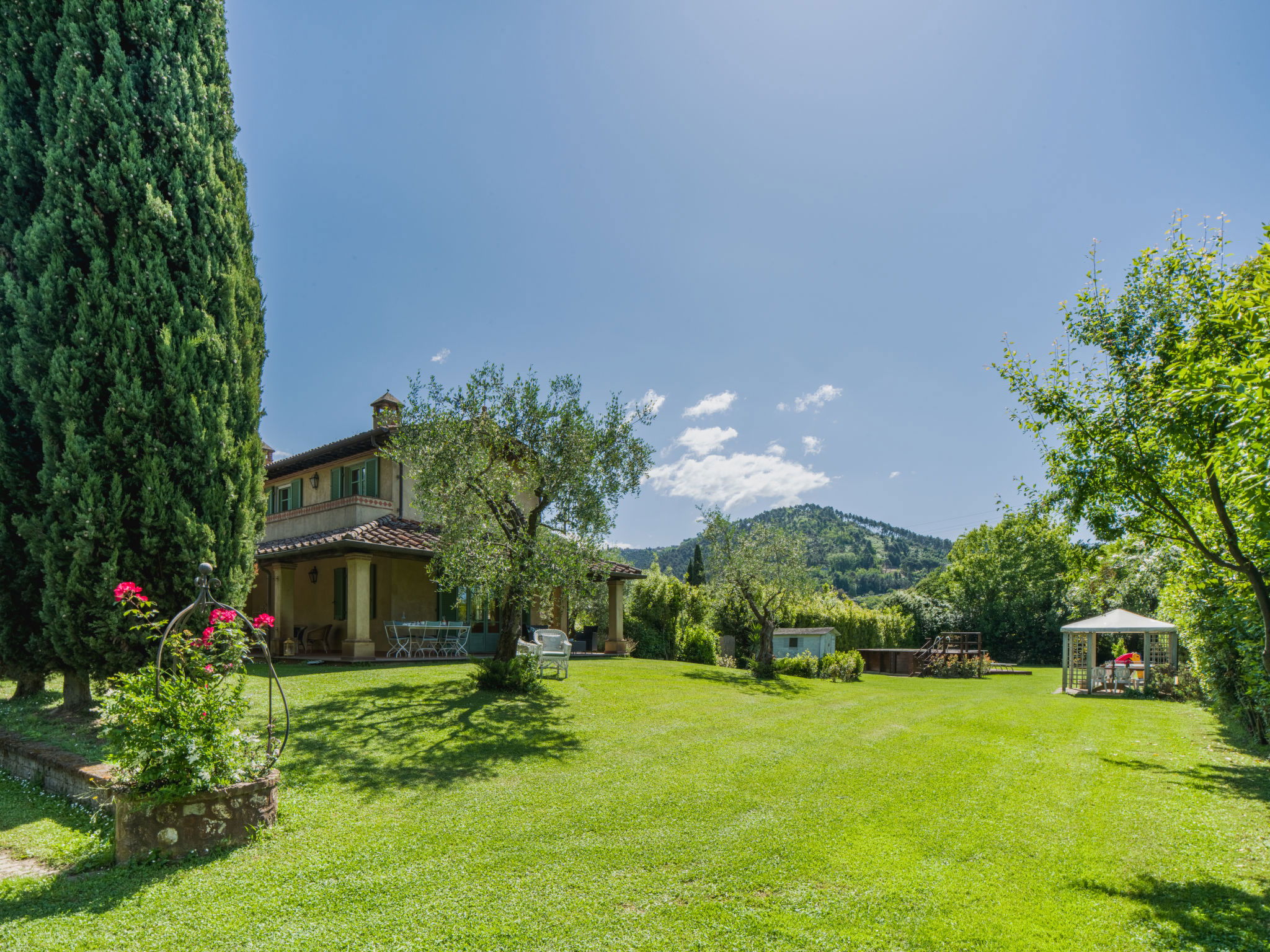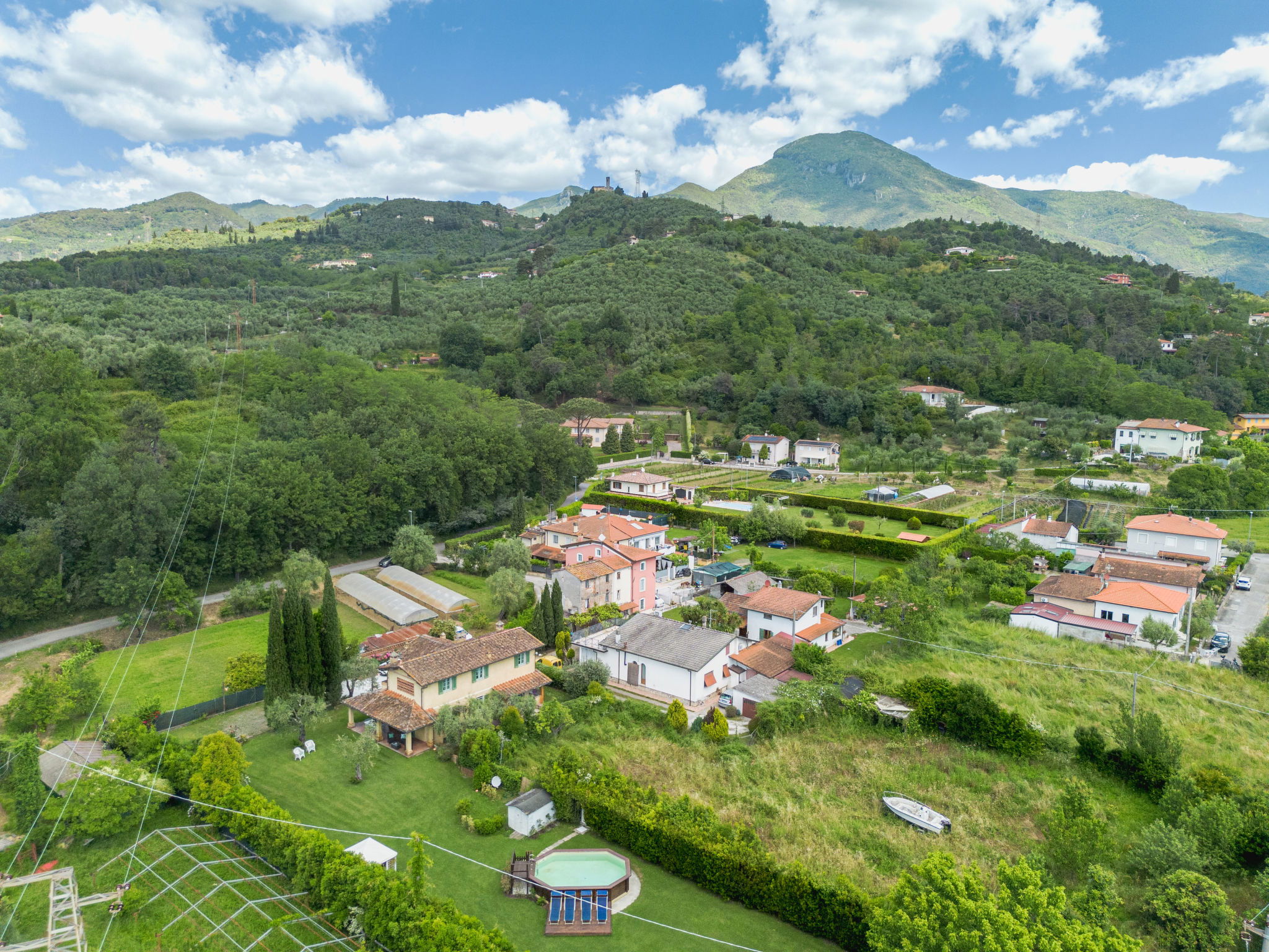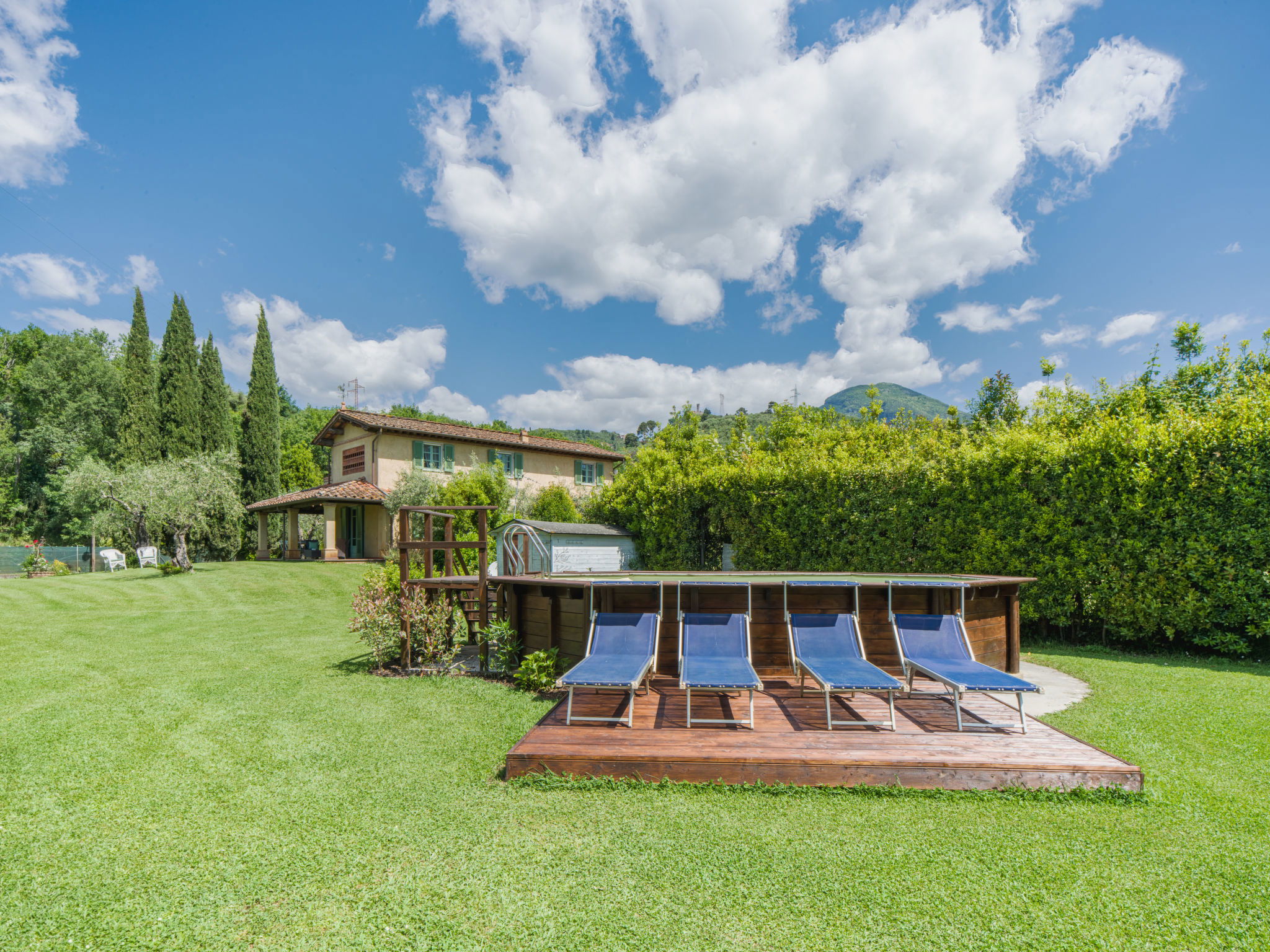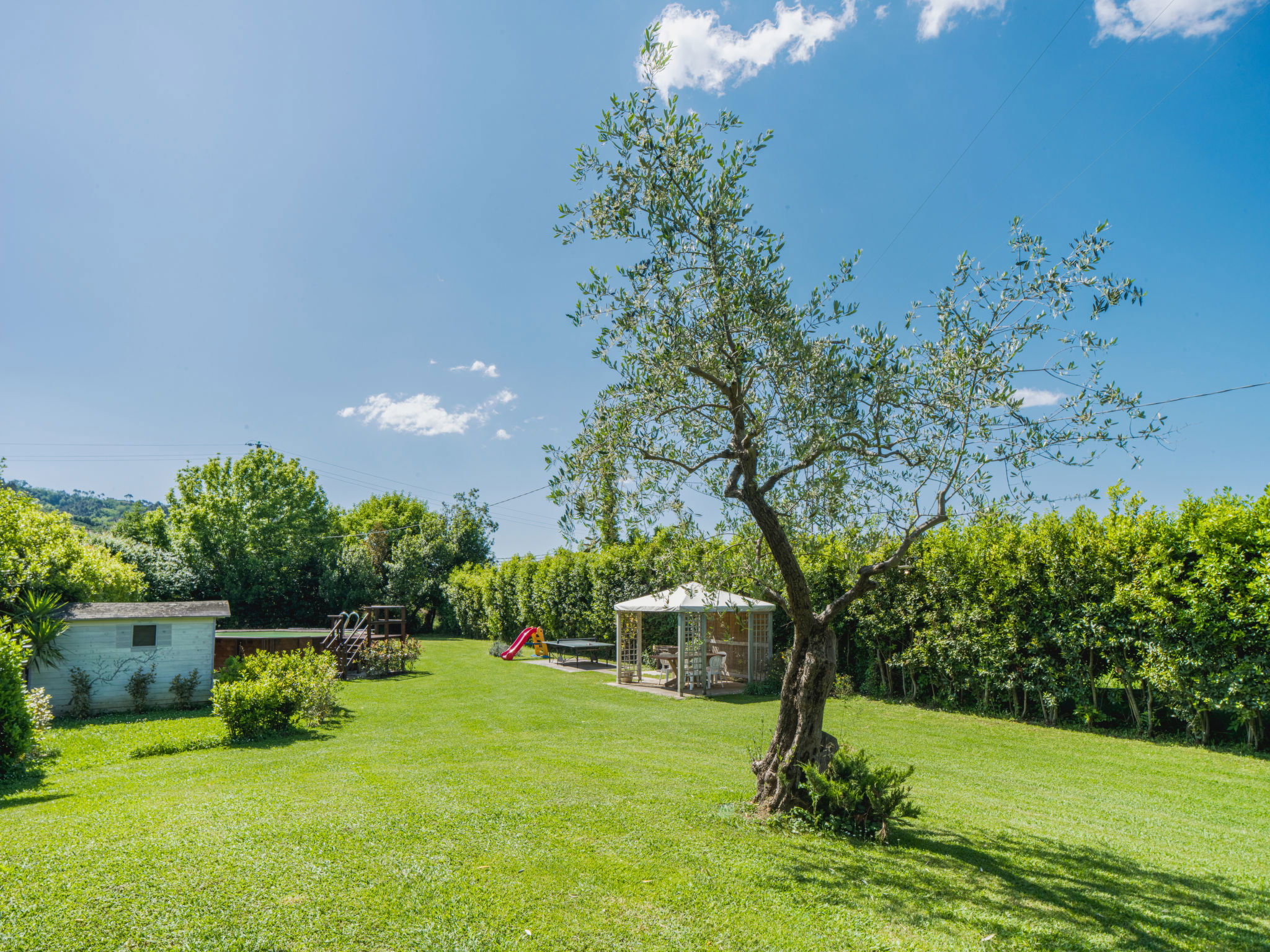 Capezzano à 4 km de Camaiore: Belle maison individuelle moderne "Il Casale", environnée par les prés. À 500 m du centre de Capezzano, à 5 km du centre de Lido di Camaiore, à 20 km du centre de Lucca, situation centrale, ensoleillée, à 5 km de la mer, à 5 km de la plage, dans une impasse, dans une rue, dans la verdure. A usage privé: jardin 1'500 m2 (clôturé) avec pelouse, piscine (hors sol) (6 x 3 m, profondeur 100 cm, disponibilité saisonnière: 01.Mai. - 04.Oct.). Douche extérieure, jardinet, meubles de jardin, barbecue, place de parking (pour 5 voitures) sur le terrain. Magasin d'alimentation 500 m, supermarché 1 km, restaurant 1 km, bar 1 km, arrêt de bus 500 m, gare ferroviaire "Viareggio" 6 km, plage de sable 5 km. Attractions à proximité: Camaiore 5 km, Forte dei Marmi 11 km, Pietrasanta 5 km, Marina di Pietrasanta 9 km, Pisa 46 km, Carrara cave Fantiscritti 44 km. Les lacs connus sont facilement accessibles: Torre del Lago 22 km, Lago di Massaciuccoli 16 km. Région de randonnées: Antro del Corchia Levigliani 32 km. Veuillez noter: voiture recommandée. Le propriétaire n'accepte pas les groupes de jeunes.