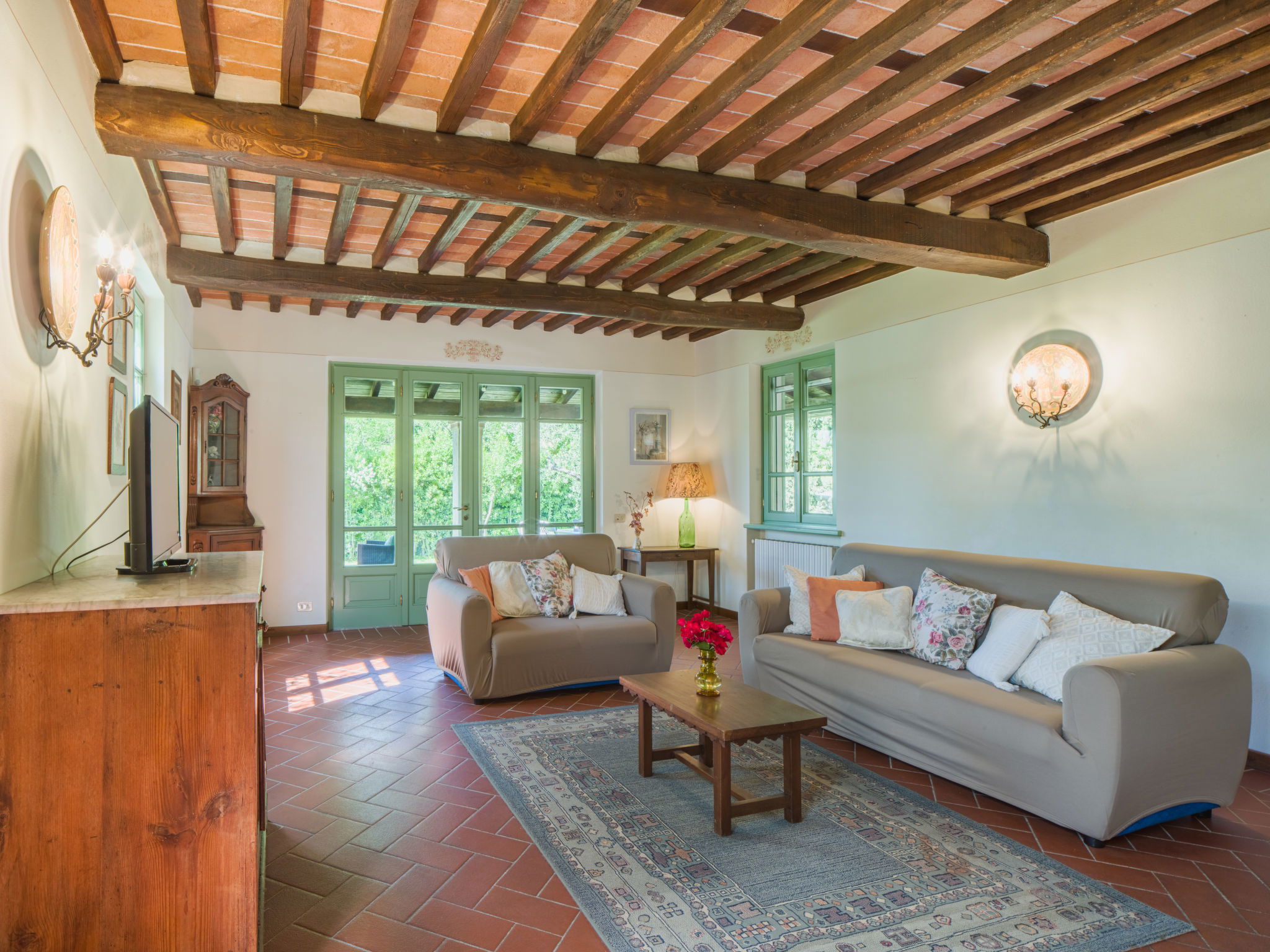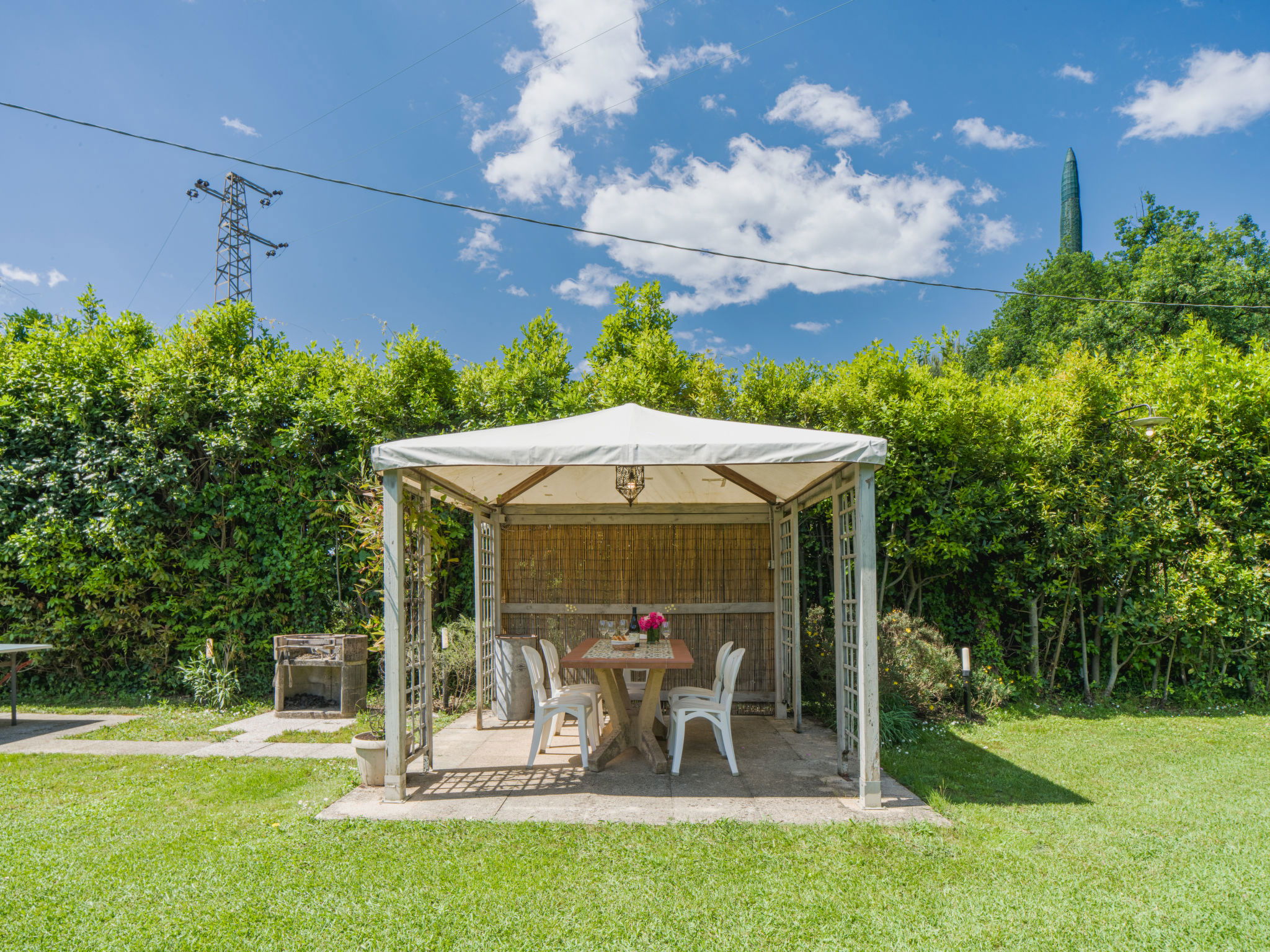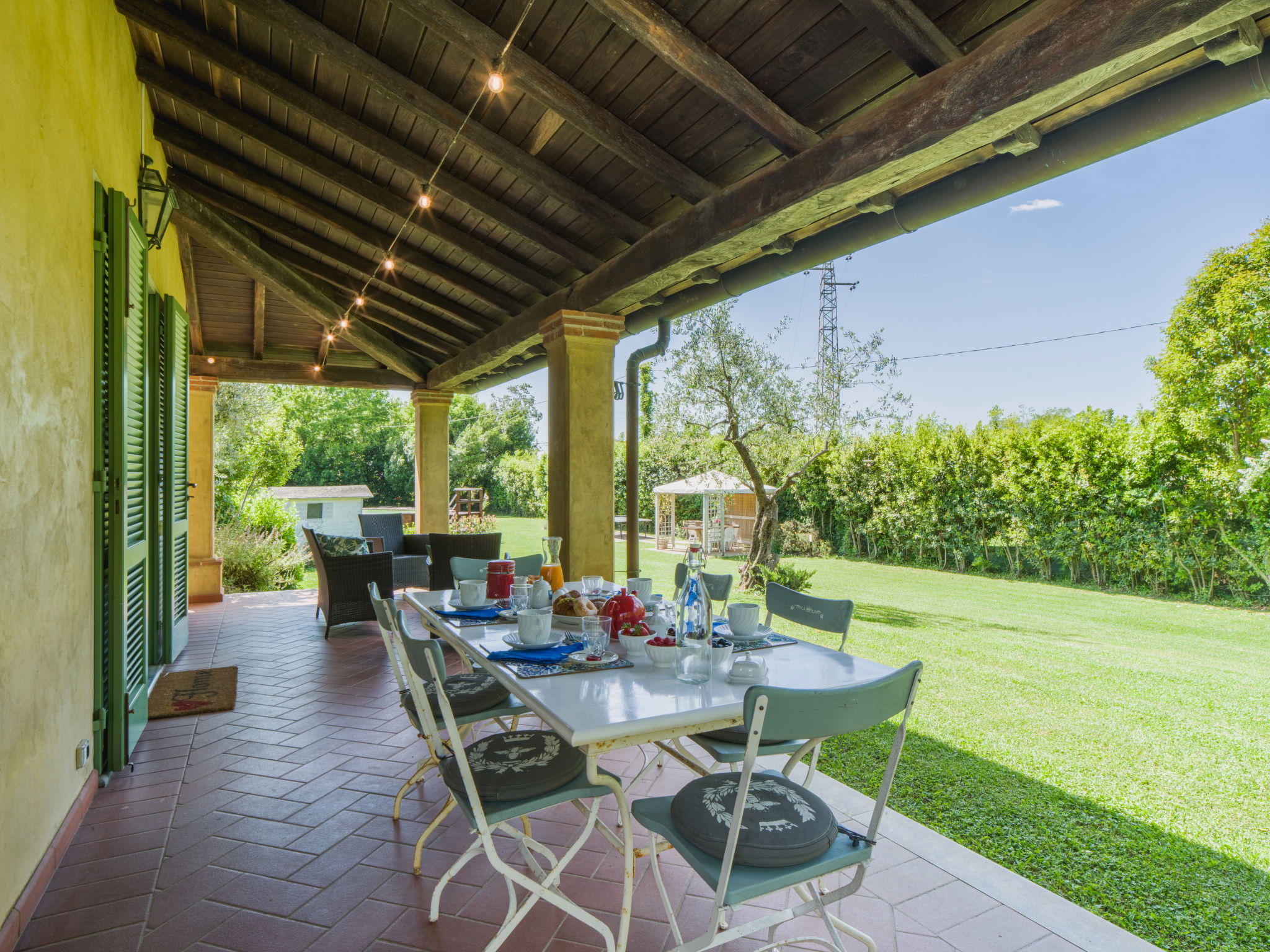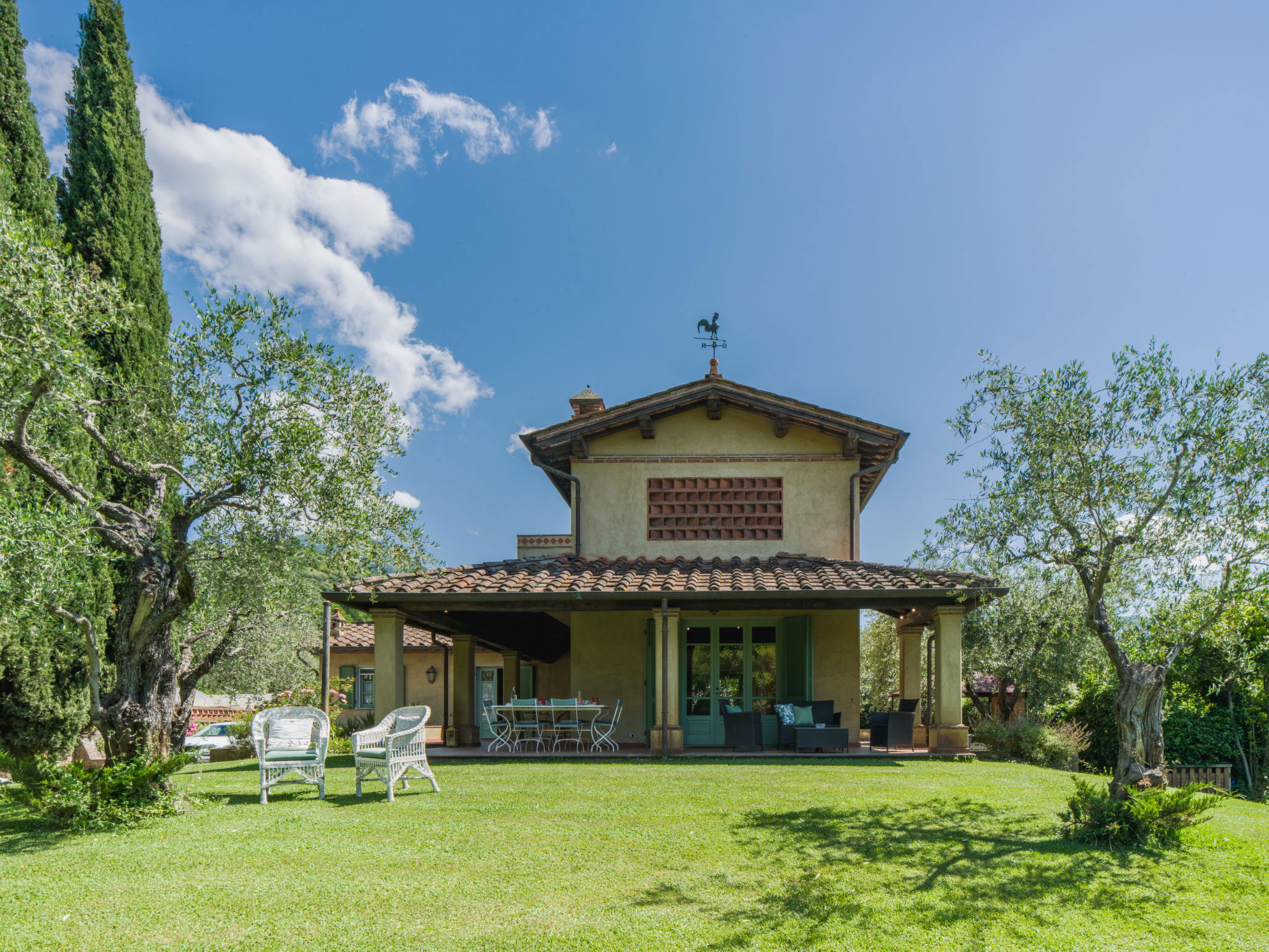 Capezzano à 4 km de Camaiore: Belle maison individuelle moderne "Il Casale", environnée par les prés. À 500 m du centre de Capezzano, à 5 km du centre de Lido di Camaiore, à 20 km du centre de Lucca, situation centrale, ensoleillée, à 5 km de la mer, à 5 km de la plage, dans une impasse, dans une rue, dans la verdure. A usage privé: jardin 1'500 m2 (clôturé) avec pelouse, piscine (hors sol) (6 x 3 m, profondeur 100 cm, disponibilité saisonnière: 01.Mai. - 04.Oct.). Douche extérieure, jardinet, meubles de jardin, barbecue, place de parking (pour 5 voitures) sur le terrain. Magasin d'alimentation 500 m, supermarché 1 km, restaurant 1 km, bar 1 km, arrêt de bus 500 m, gare ferroviaire "Viareggio" 6 km, plage de sable 5 km. Attractions à proximité: Camaiore 5 km, Forte dei Marmi 11 km, Pietrasanta 5 km, Marina di Pietrasanta 9 km, Pisa 46 km, Carrara cave Fantiscritti 44 km. Les lacs connus sont facilement accessibles: Torre del Lago 22 km, Lago di Massaciuccoli 16 km. Région de randonnées: Antro del Corchia Levigliani 32 km. Veuillez noter: voiture recommandée. Le propriétaire n'accepte pas les groupes de jeunes.