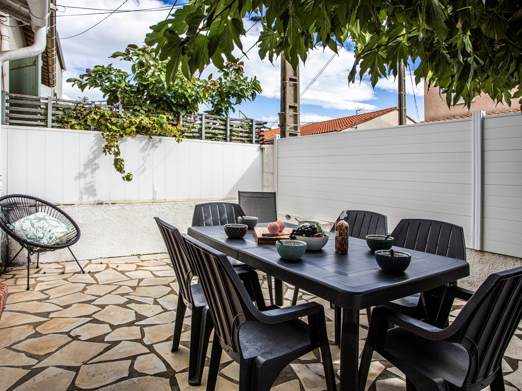 Petite maison mitoyenne. Dans le quartier de Canet Sud, situation tranquille, ensoleillée dans un quartier résidentiel, à 300 m de la mer, à 300 m de la plage. A usage privé: terrain (clôturé), parking public possible dans la rue. Magasins, magasin d'alimentation 200 m, supermarché 2 km, centre commercial 2 km, restaurant, bar, boulangerie, café 200 m, arrêt de bus 100 m, gare ferroviaire "Perpignan" 12 km, plage de sable 300 m, piscine 3 km. Port plaisance 5 km, terrain de golf (18 trous) 8 km, ecole de voile 500 km. Attractions à proximité: Perpignan 12 km, Collioure 25 km, Banyuls 37 km, Espagne 35 km, Andorre 180 km, Barcelone 200 km. Les lacs connus sont facilement accessibles: Lac de Villeneuve de la Raho 19 km, Lac de St Jean Pla de Corts 39 km, Gorges du Gouleyrous 42 km. Région de randonnées: Abbaye de St Martin du Canigou 70 km, Pic du Canigou 77 km, Lac des Bouillouses 105 km.