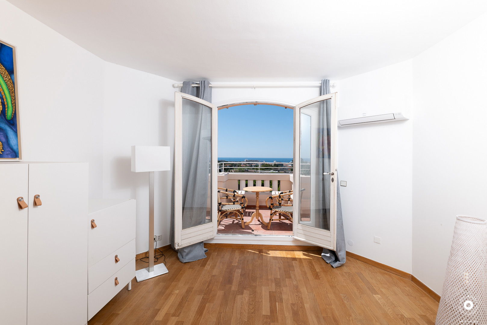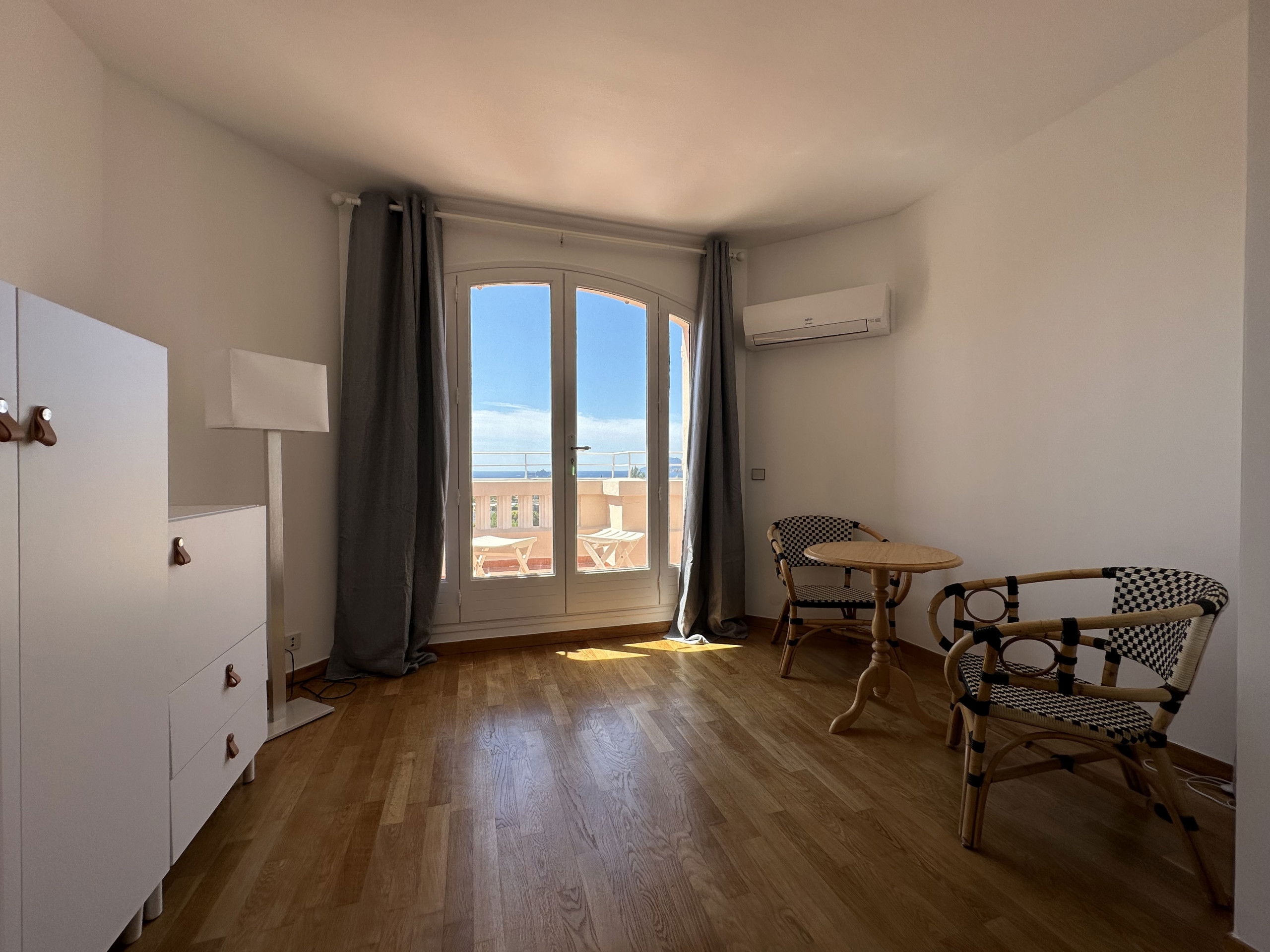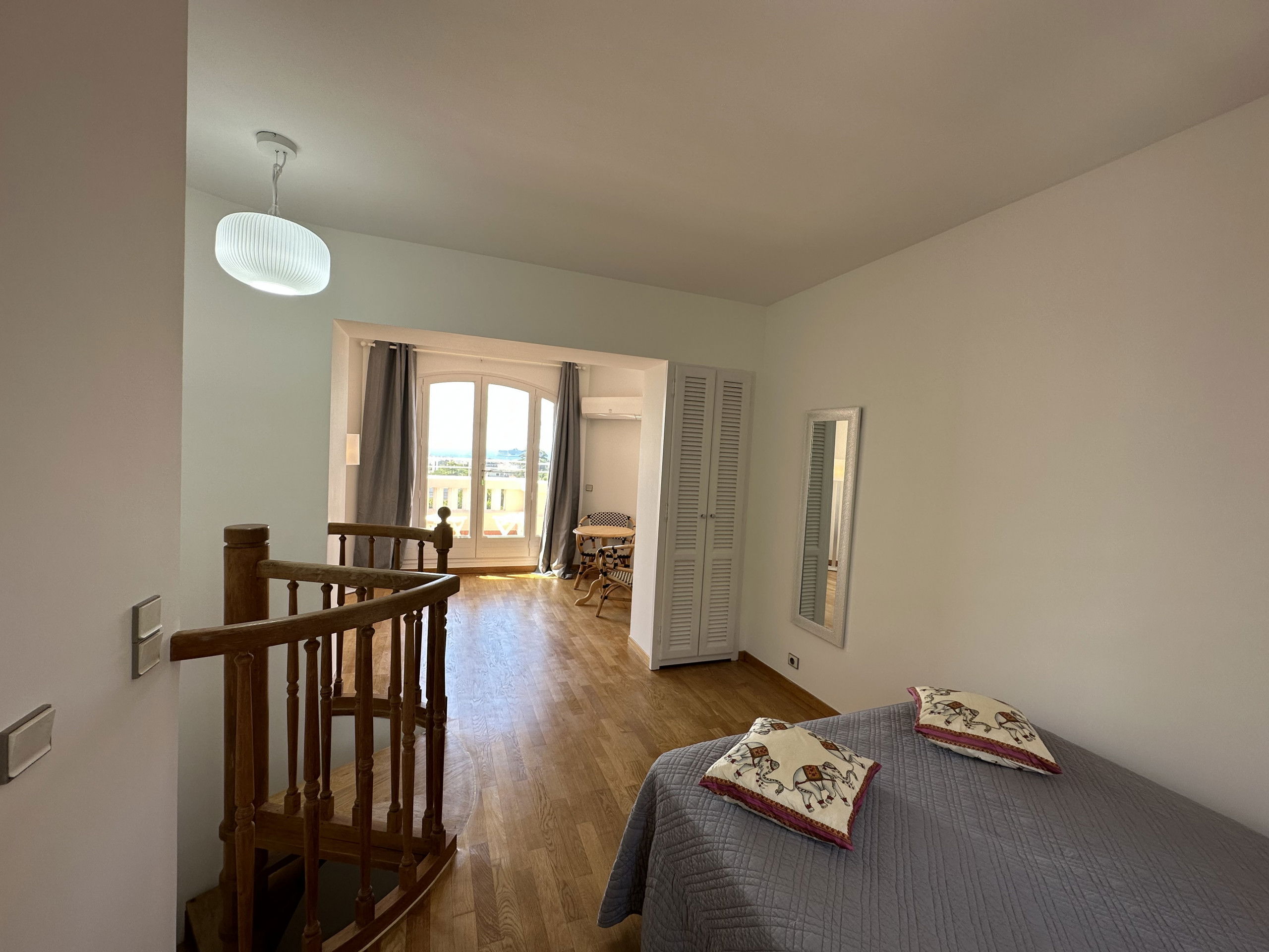 Au second et dernier étage une chambre avec grand lit (largeur 140) , salle de douche et wc, elle aussi avec sa terrasse et superbe vue (mer).