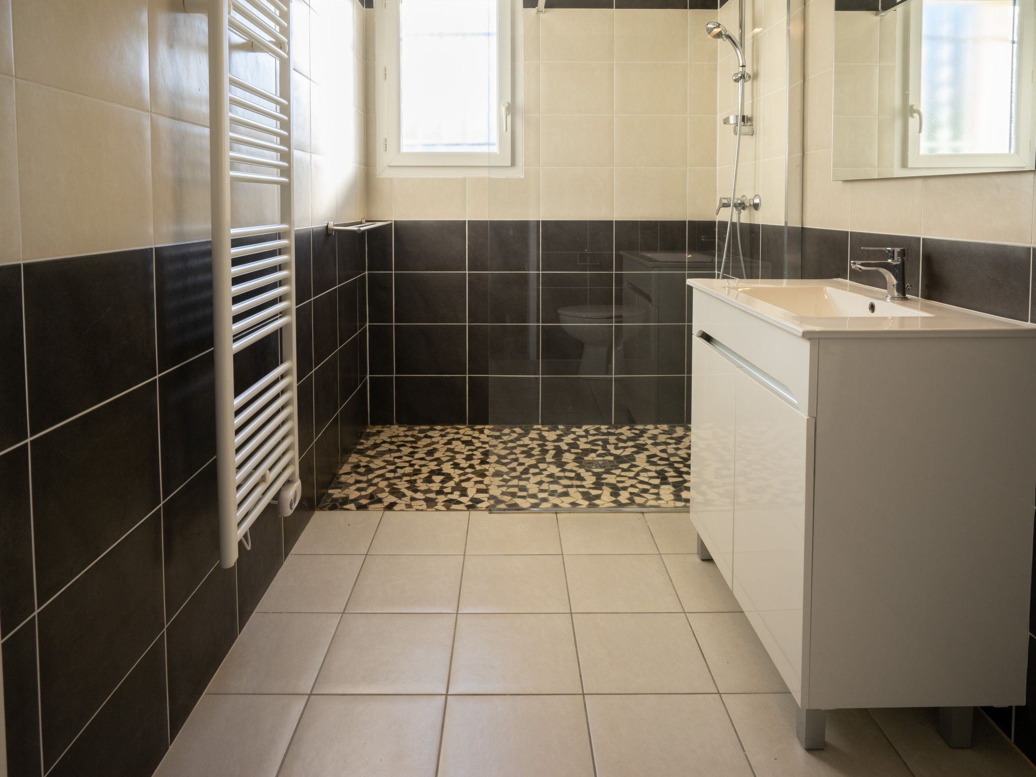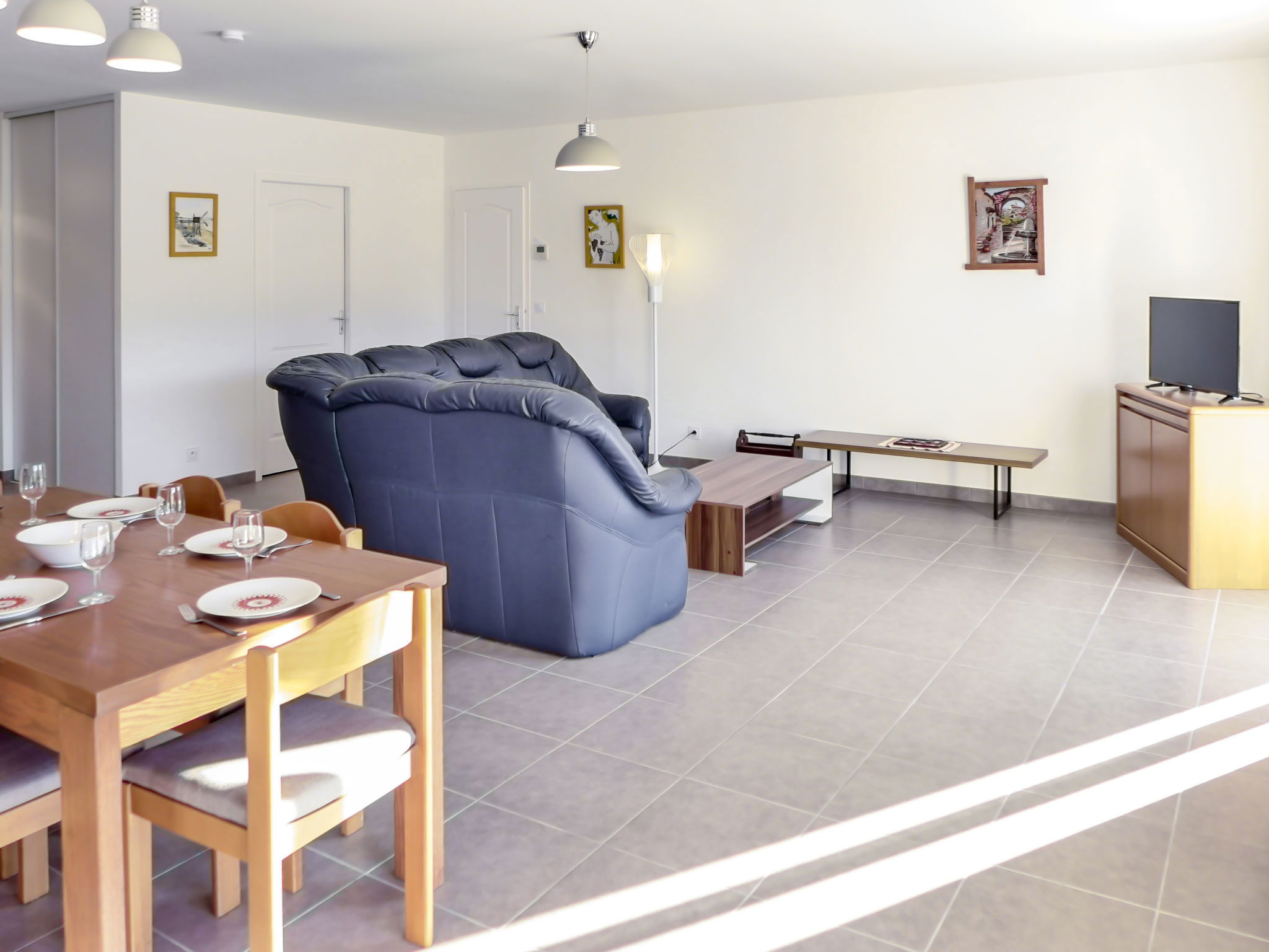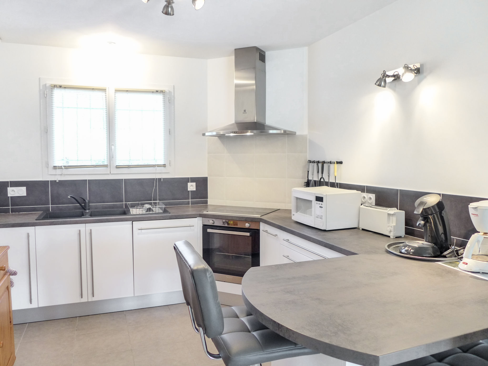 Maison 4 pièces 108 m2. Clair, aménagement fonctionnel: séjour/salle à manger avec TV. Sortie sur la terrasse. 2 chambres, chaque chambre avec: 1 grand-lit (140 cm, longueur 190 cm). 1 chambre avec 2 lits (90 cm, longueur 190 cm). Cuisine ouverte (four, lave-vaisselle, 3 plaques à induction, micro-ondes). Douche/WC, WC séparé. Chauffage électrique, air-conditionné. A disposition: lave-linge. Internet (Connexion WIFI, gratuit). Veuillez noter: maison non-fumeur. Maximum 1 animal/ chien autorisé. Détecteur de fumée.