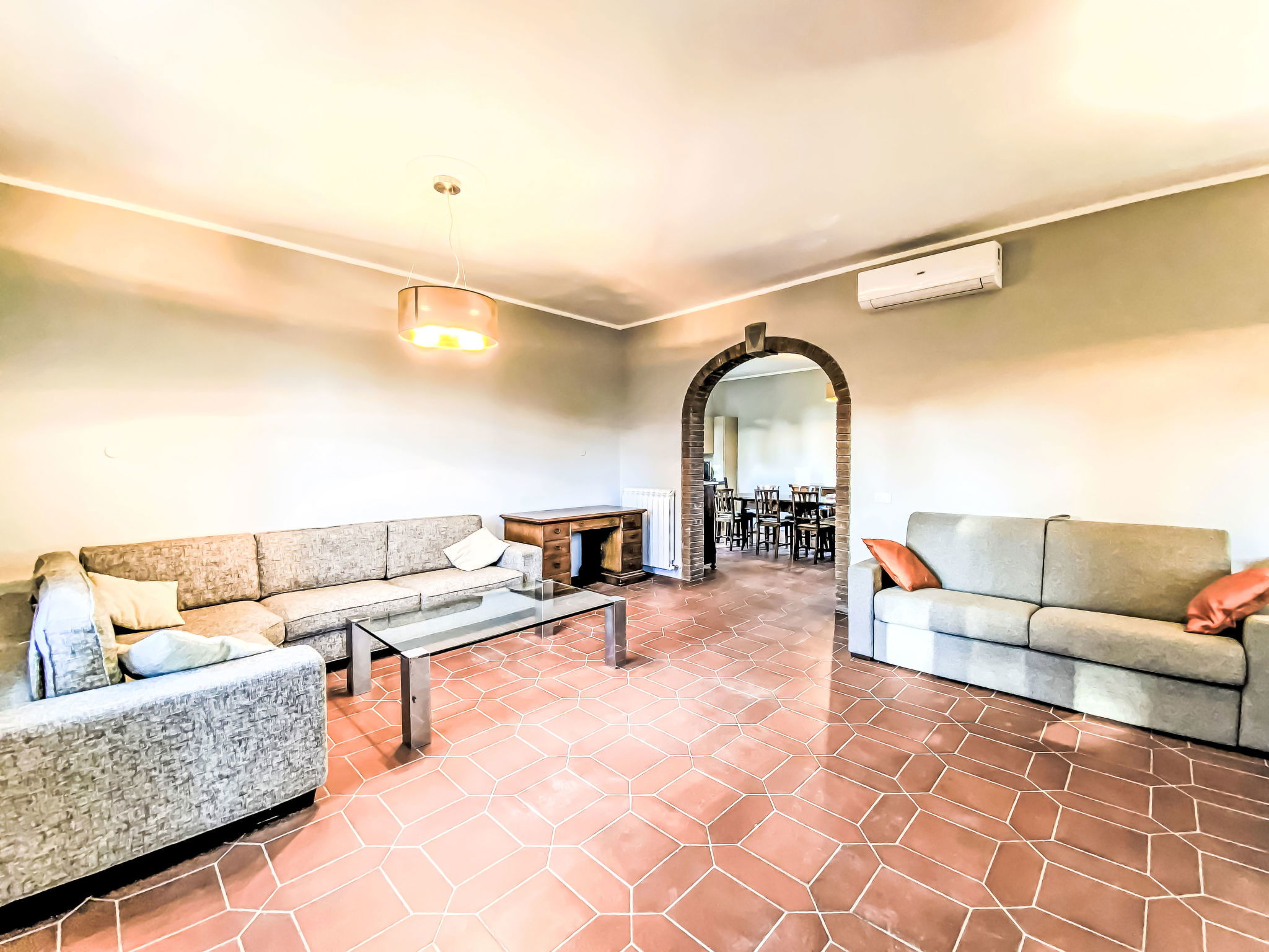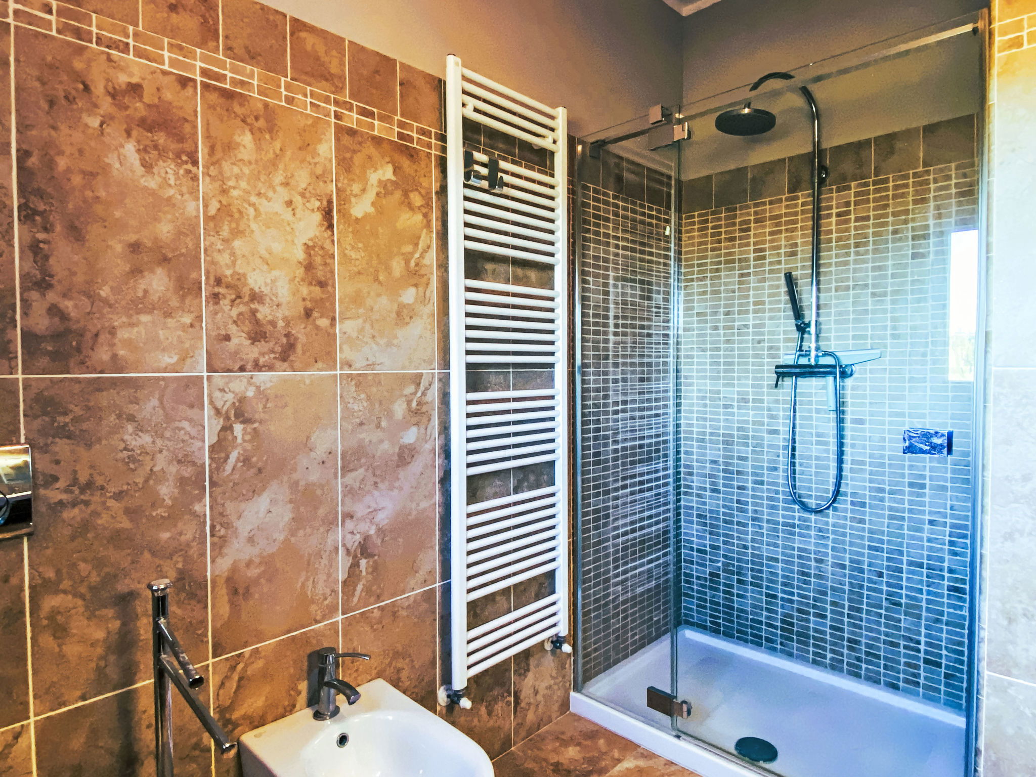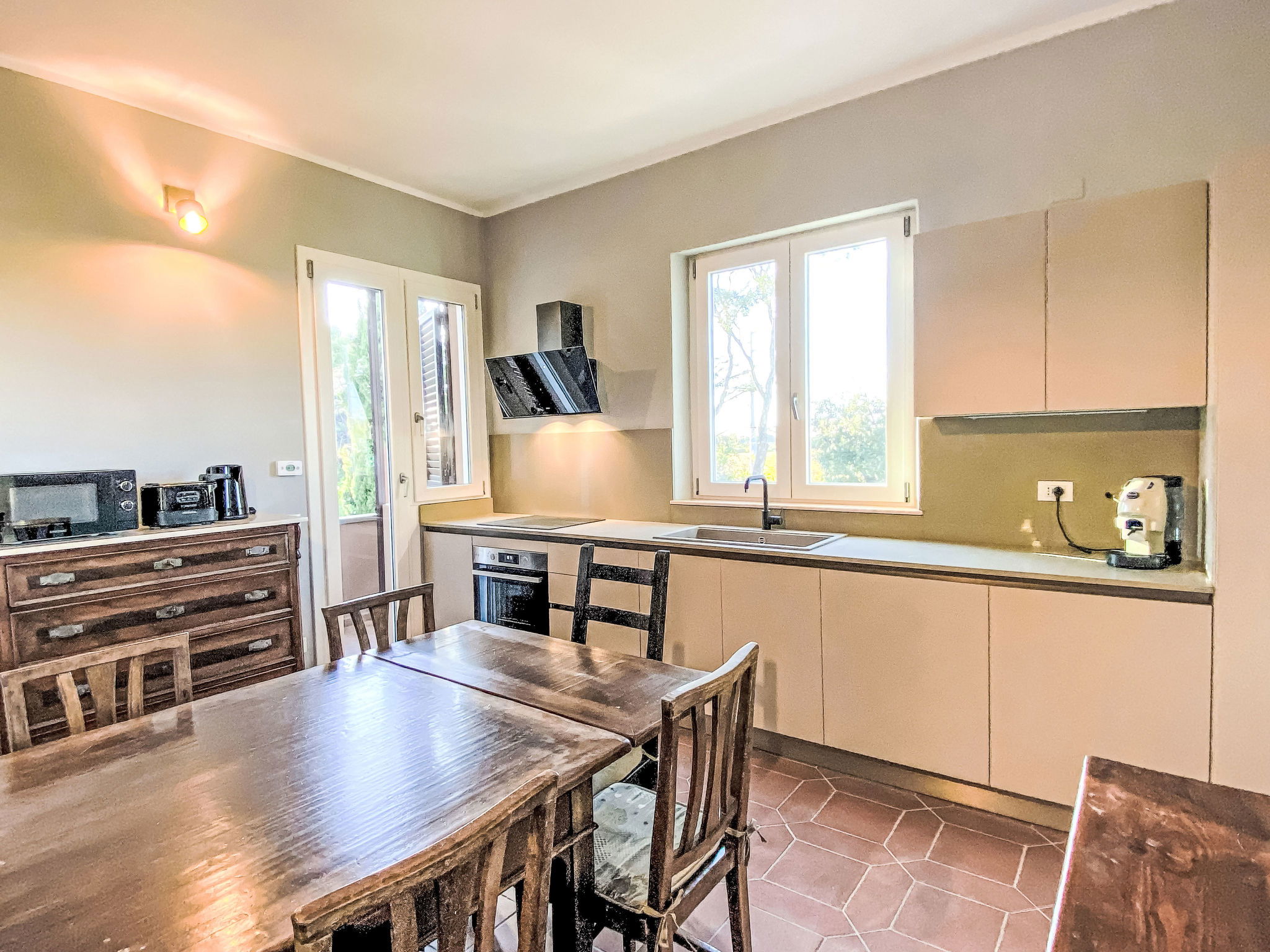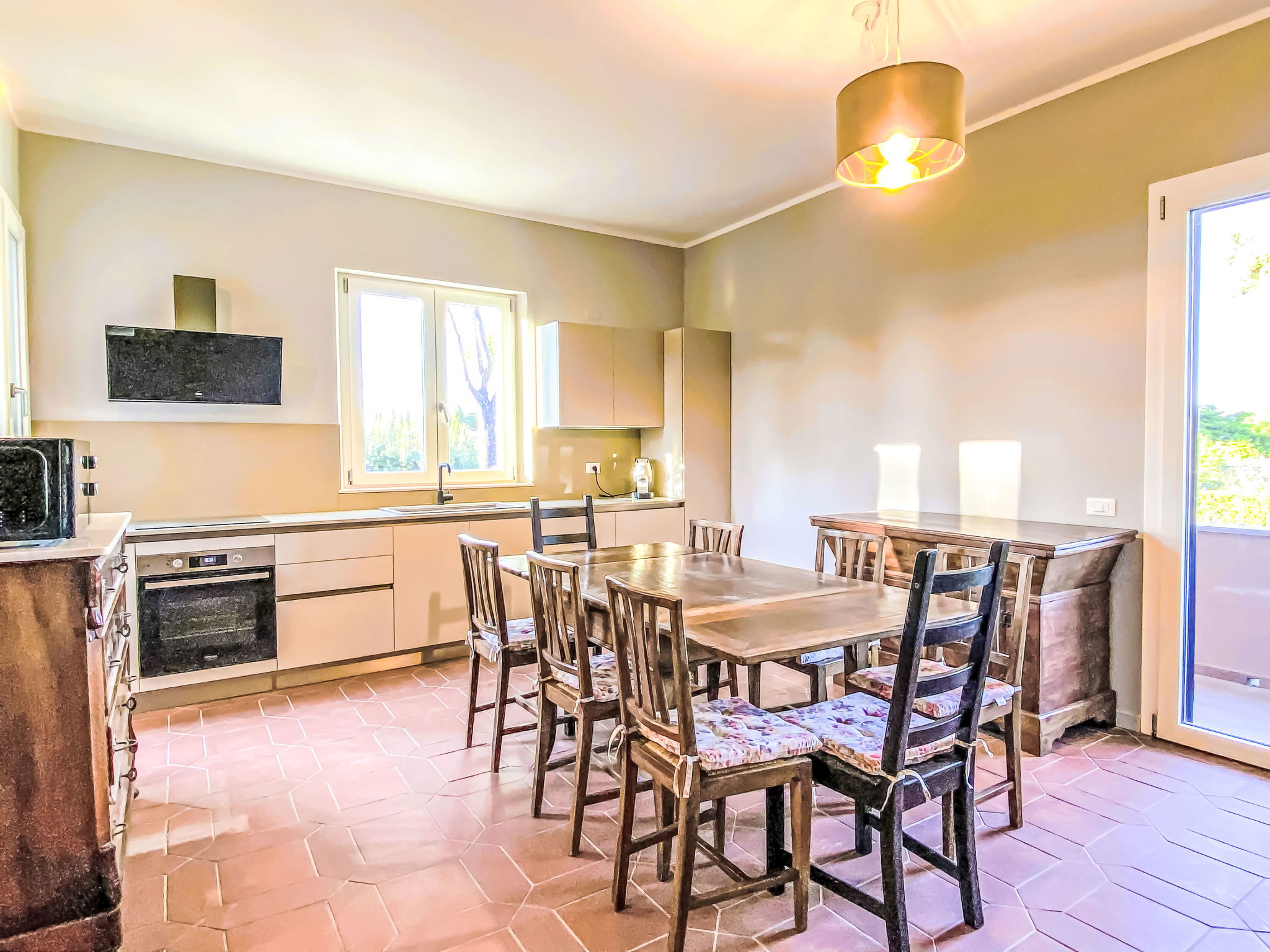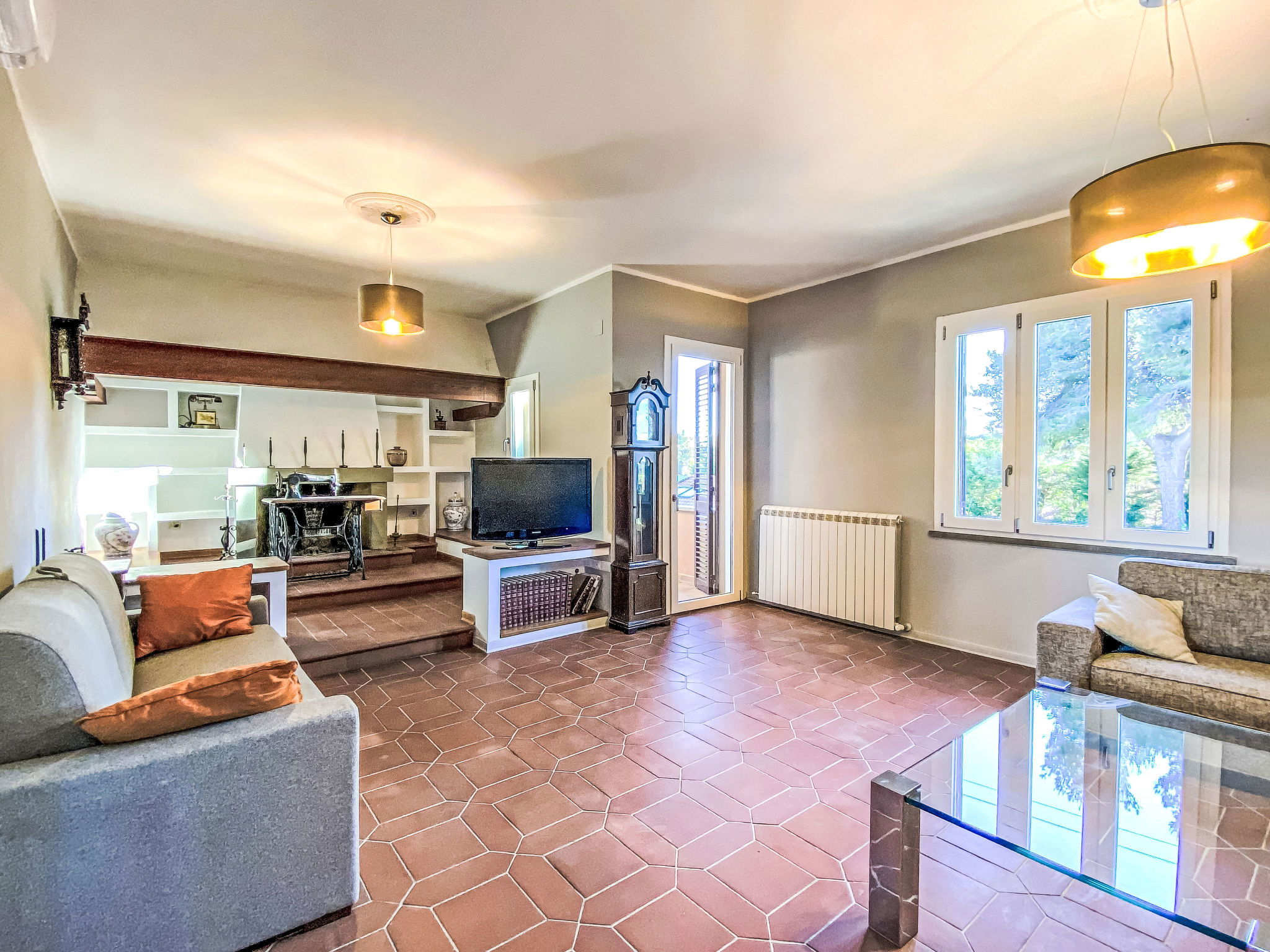 "Rose Adriano Home", maison 5 pièces 150 m2 sur 2 niveaux. Spacieux et clair, partiellement rénovée en 2026, aménagement agréable et plaisant: 1 chambre double avec 1 lit double. Douche/bidet/WC. Chauffage électrique, air-conditionné. À l'étage supérieur: grand séjour/chambre à coucher avec 1 divan-lit double et cheminée (uniquement à titre de décoration). Sortie sur le balcon. 1 chambre double avec 1 lit double. Sortie sur le balcon. 1 chambre avec 2 lits. Cuisine ouverte (four, lave-vaisselle, 4 plaques à induction, grille-pain, bouilloire électrique, cafetière électrique) avec table pour les repas. Sortie sur le balcon. 2 douches/bidet/WC. Chauffage électrique, air-conditionné. Énergie solaire. Grand jardinet. Meubles de terrasse, mobilier de balcon, barbecue, chaises longues. A disposition: lave-linge, fer à repasser, chaise haute pour enfant, lit bébé jusqu'à 2 ans, sèche-cheveux. Internet (Connexion WIFI, gratuit). Borne de recharge électrique. Veuillez noter: logement non-fumeur. Maximum 2 animaux/ chiens autorisés. Entrée privée, extincteur. La piscine mentionnée dans le descriptif est privative. IT049007C2S69H5FXT