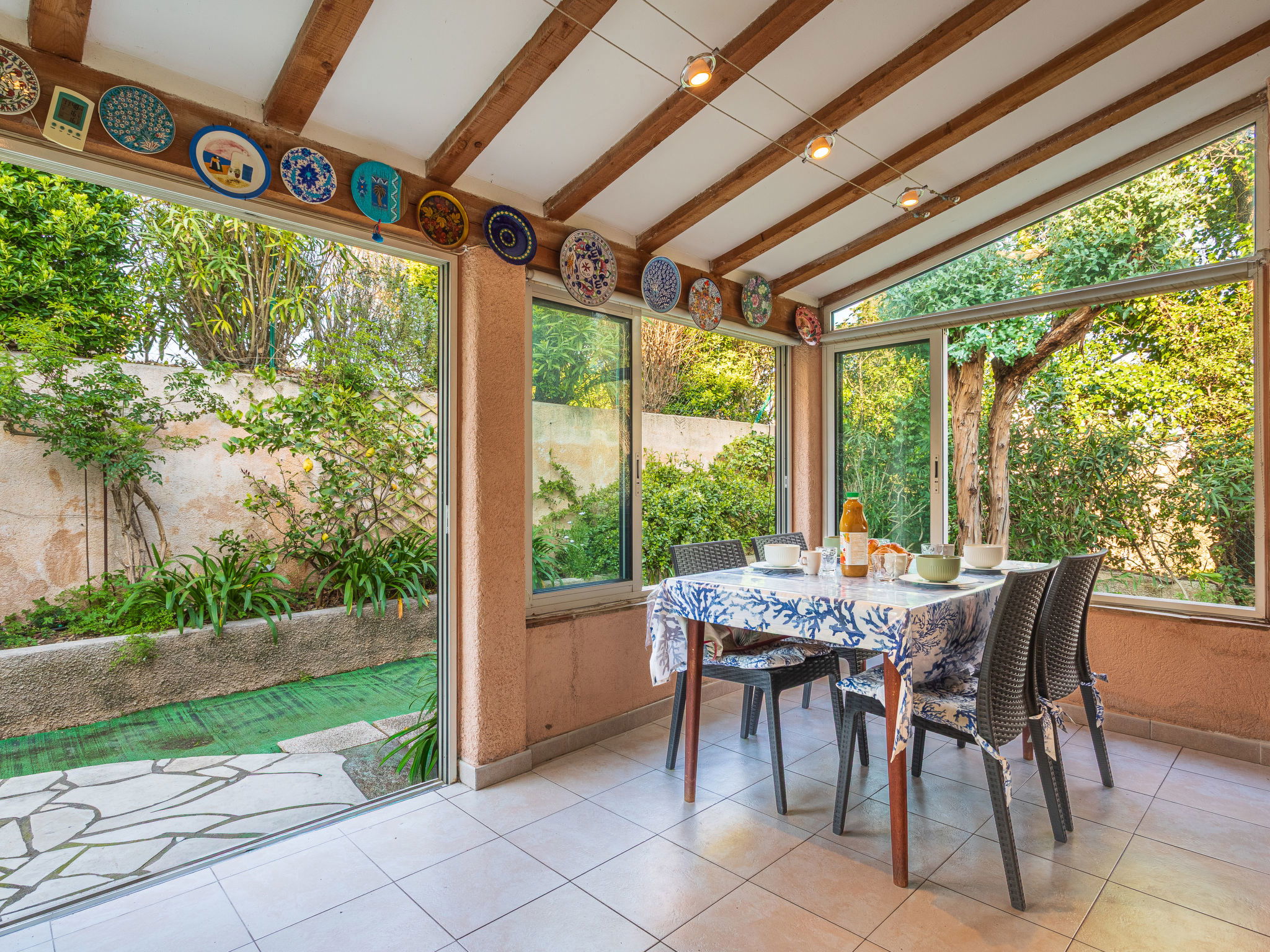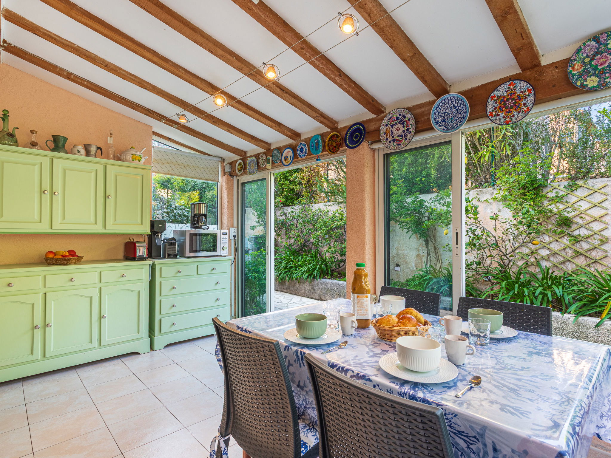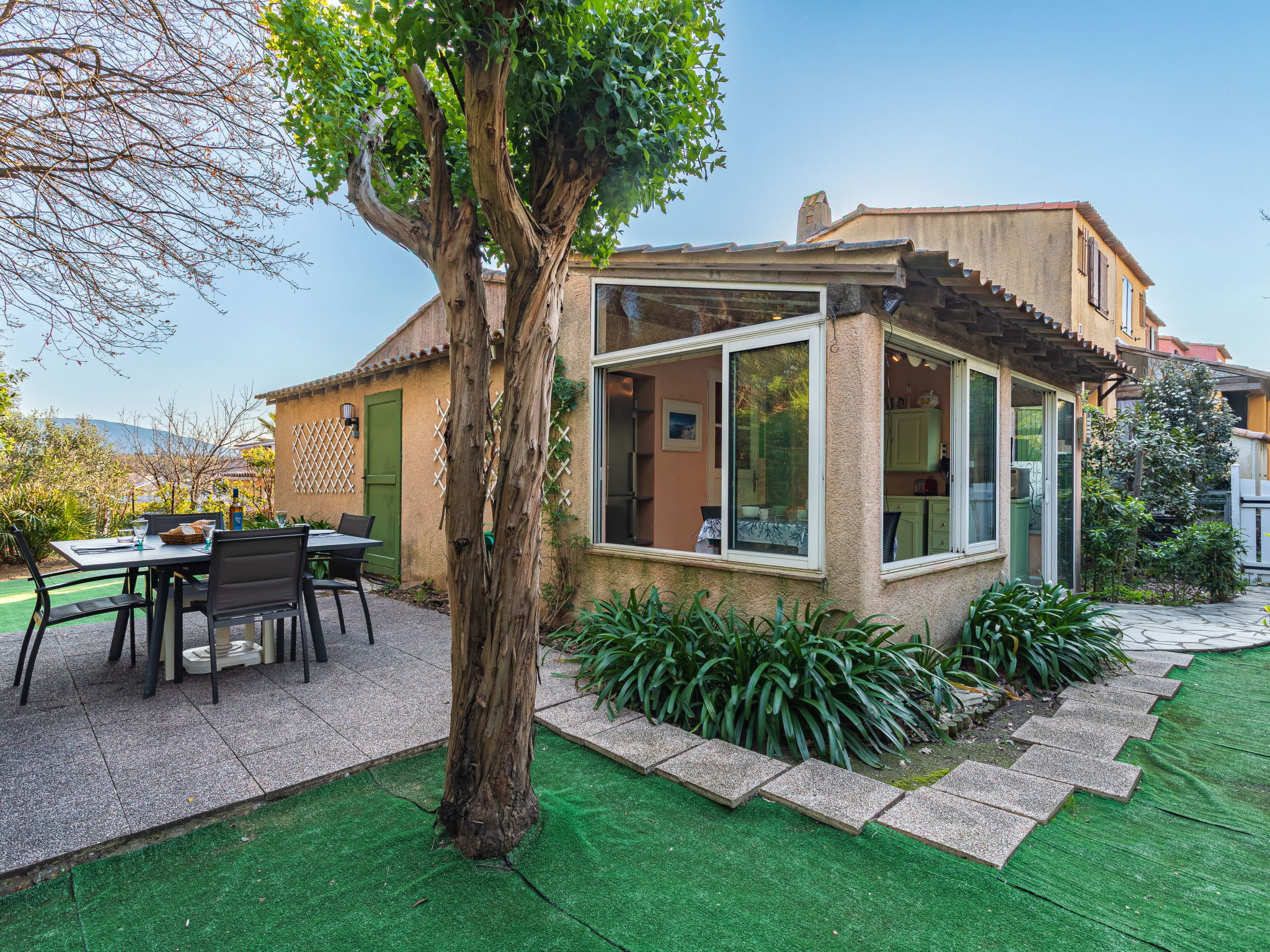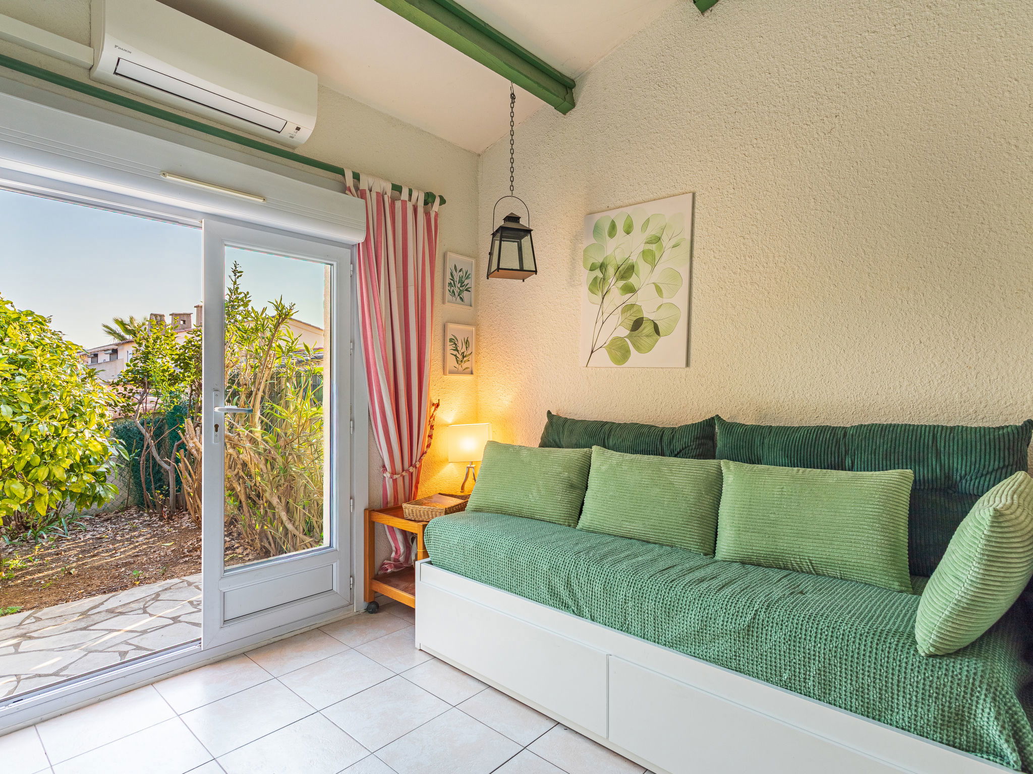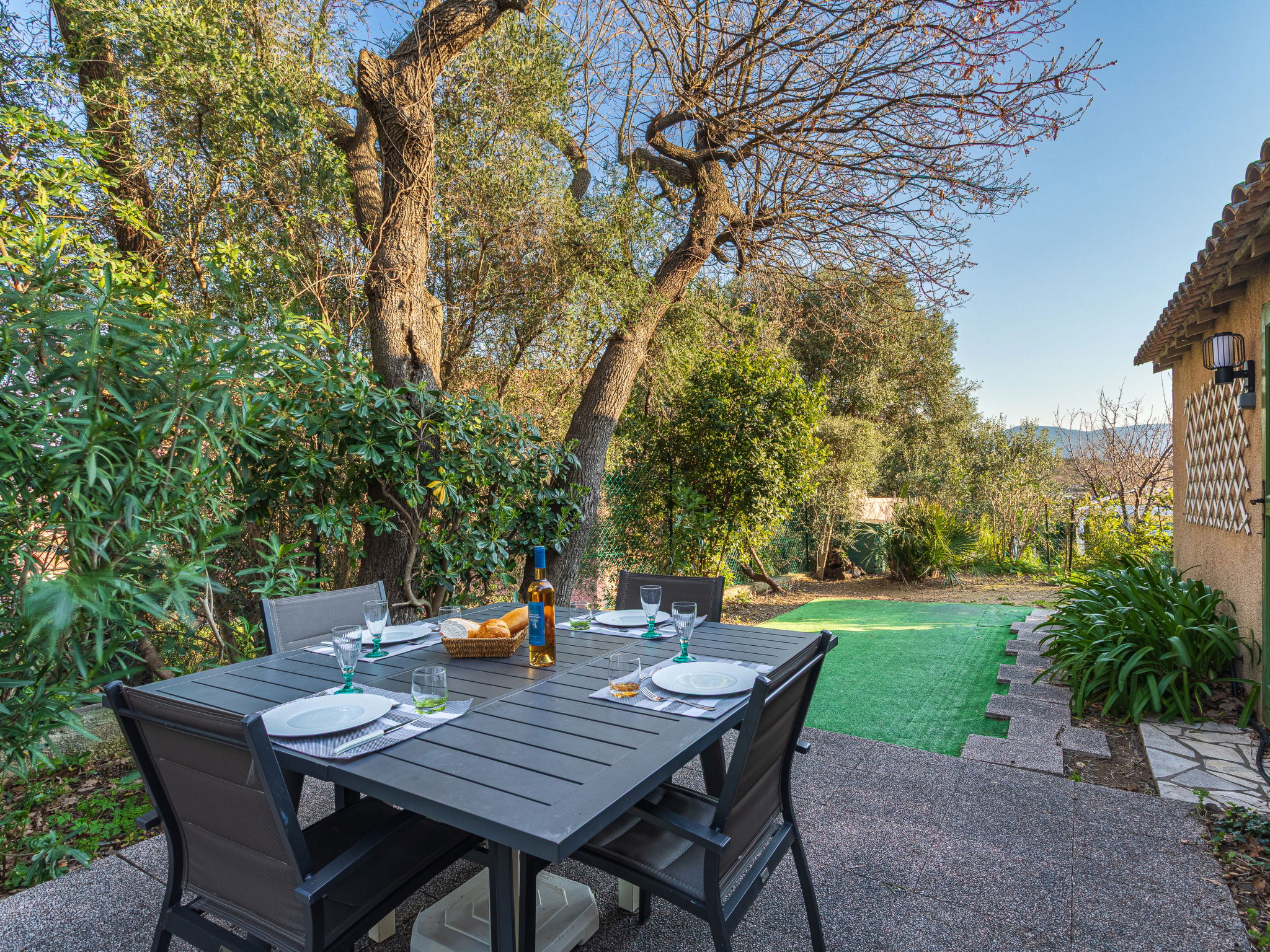 "Le Mas de Cogolin 5", maison mitoyenne 2 pièces 50 m2. Aménagement plaisant: séjour avec 1 lit gigogne (2 x 80 cm, longueur 200 cm), TV, écran plat et air-conditionné. Sortie sur le jardin. 1 chambre avec 1 grand-lit (140 cm, longueur 200 cm), douche/WC. Cuisine ouverte (lave-vaisselle, 4 plaques vitrocéramiques, grille-pain, bouilloire électrique, congélateur, cafetière électrique, Capsules pour machine à café (Nespresso) (NON INCLUSES), combiné micro-ondes) avec coin repas. Sortie sur la véranda. Chauffage électrique. Terrasse 12 m2, jardin 200 m2. Meubles de terrasse. A disposition: lave-linge, sèche-linge. Internet (Connexion WIFI, gratuit). Place de parking No E10. Veuillez noter: logement non-fumeur. 1 animal/ chien de petite taille autorisé. Détecteur de fumée. Annonce d'un particulier (art 155, IV du CGI).