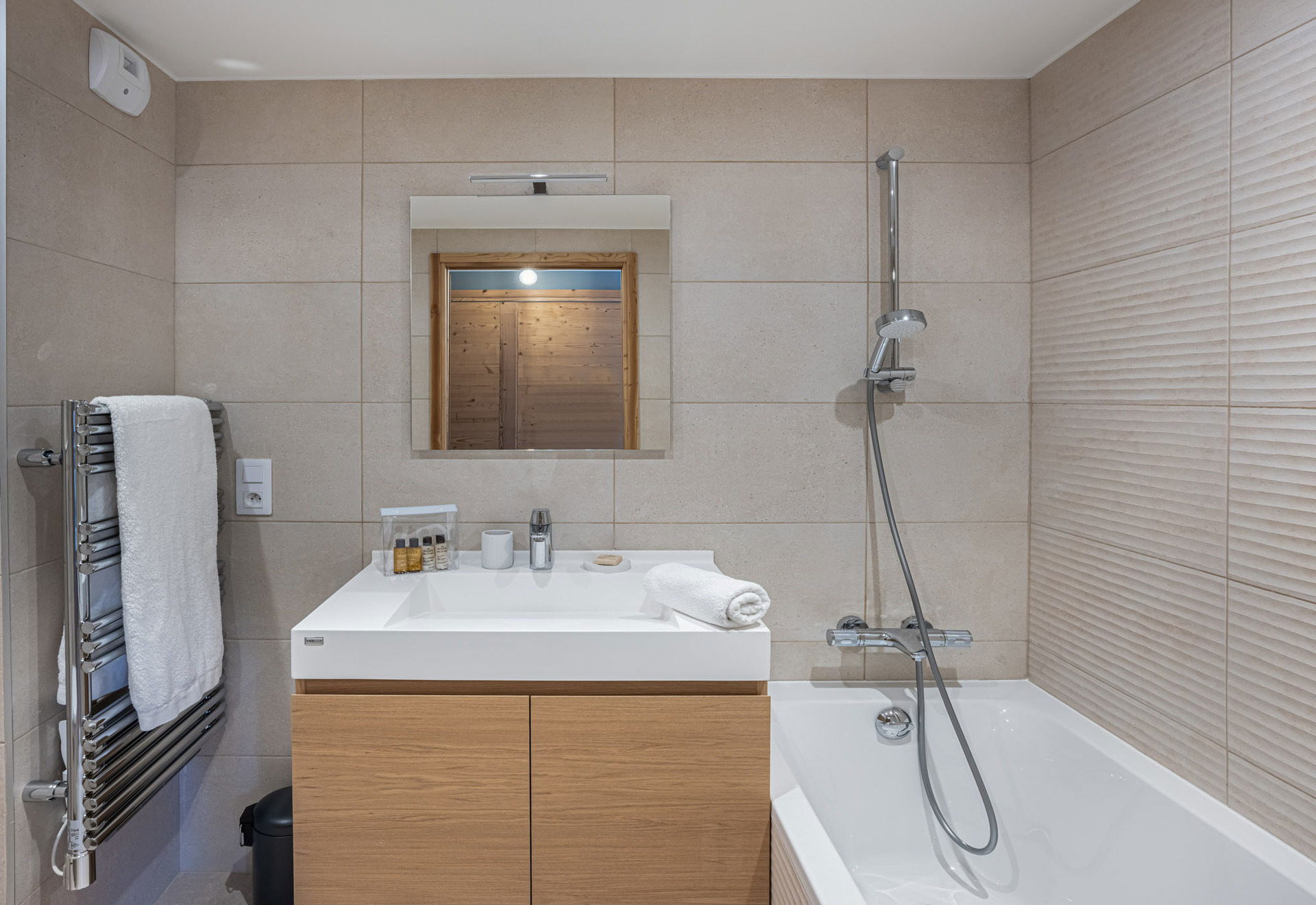 - Chambre 1 en suite : lit double (160*200), salle de douche, sèche serviette, toilette, simple vasque