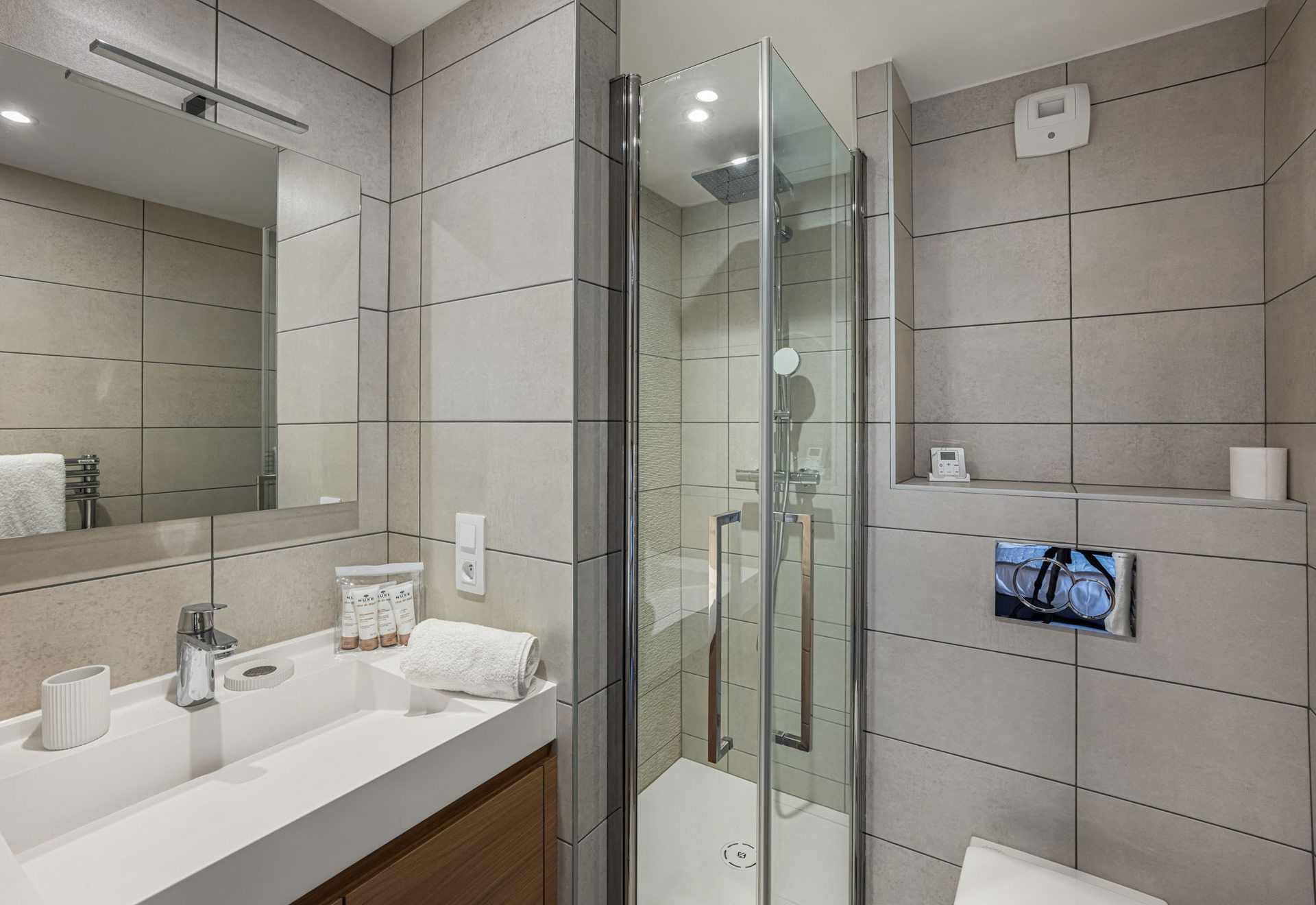- Chambre 3 en suite : lit double (160*200), salle de douche, sèche serviette, toilette, simple vasque