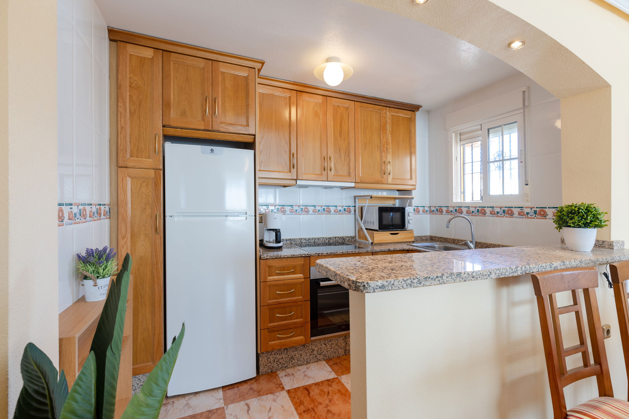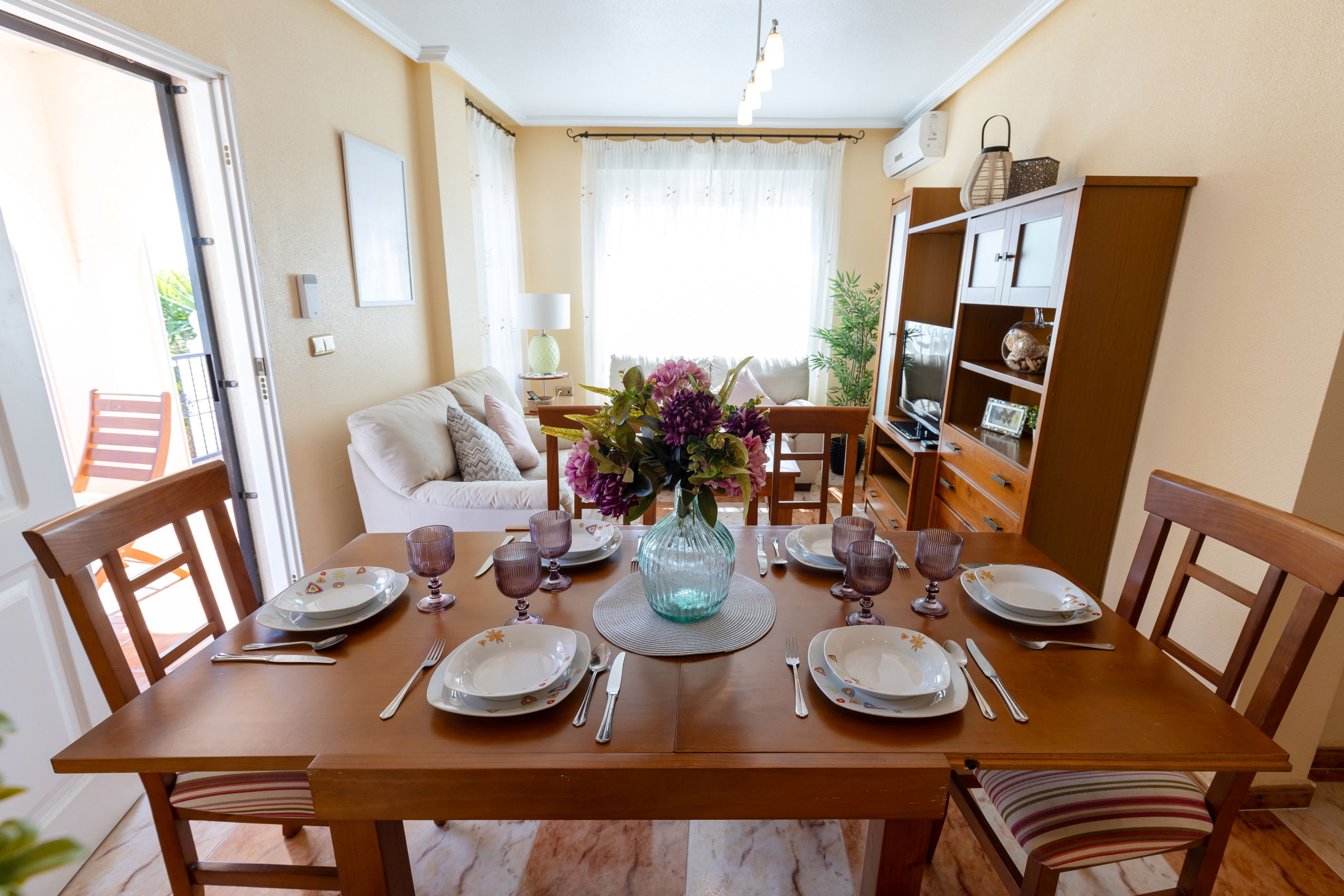 Ce logement se trouve à Cabo Roig, dans un emplacement privilégié à proximité du terrain de golf Dehesa de Campoamor et des plages de La Zenia. La propriété dispose de trois grandes chambres et de deux salles de bains modernes, toutes équipées de climatisation pour assurer le confort tout au long de l'année.