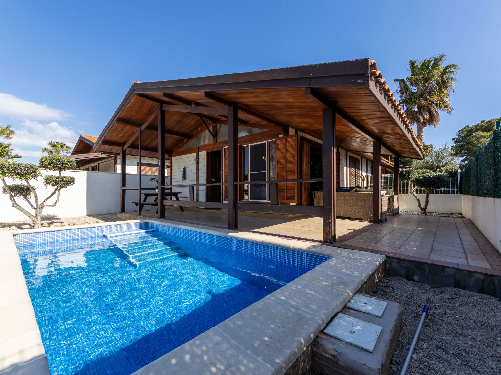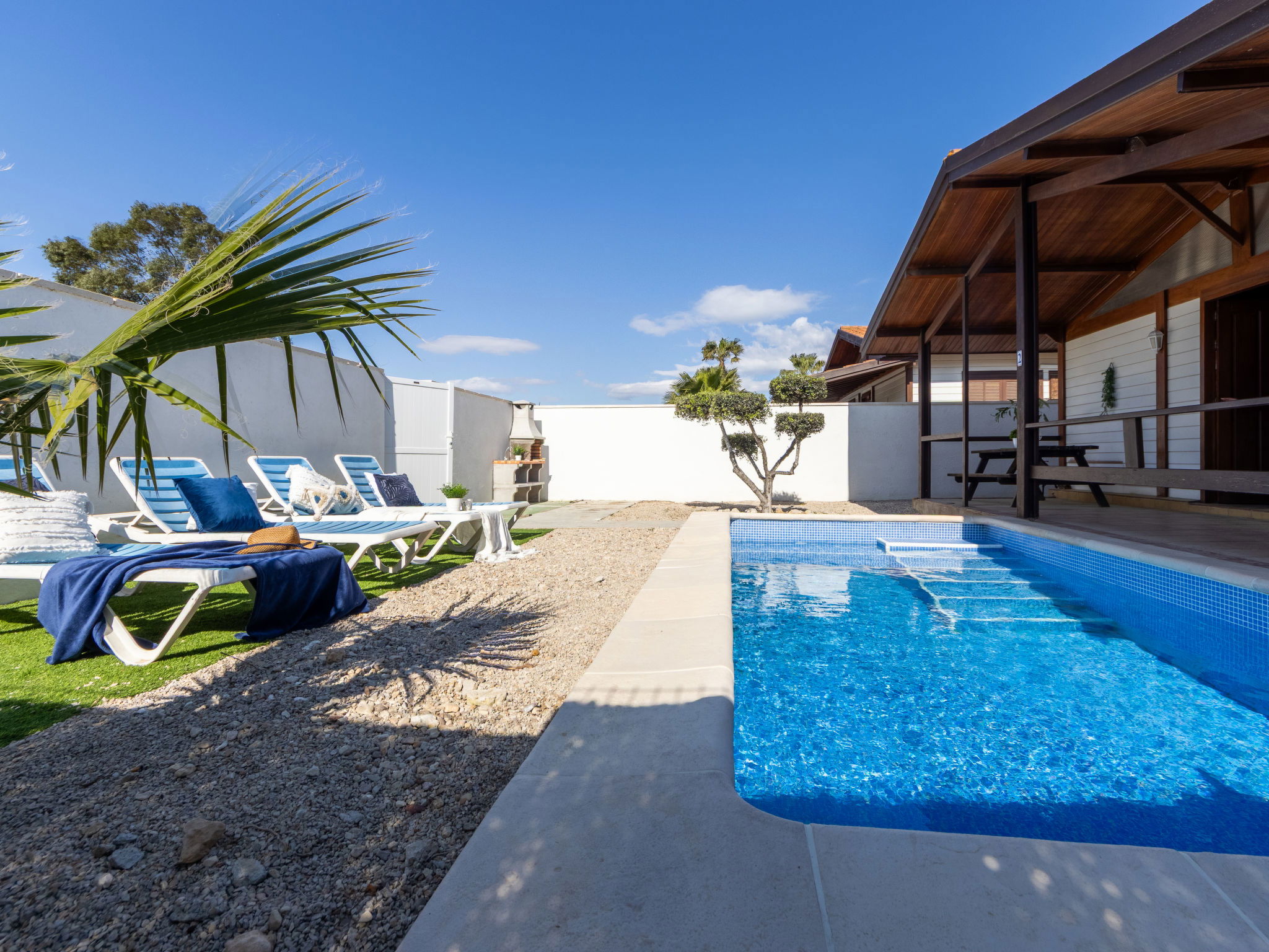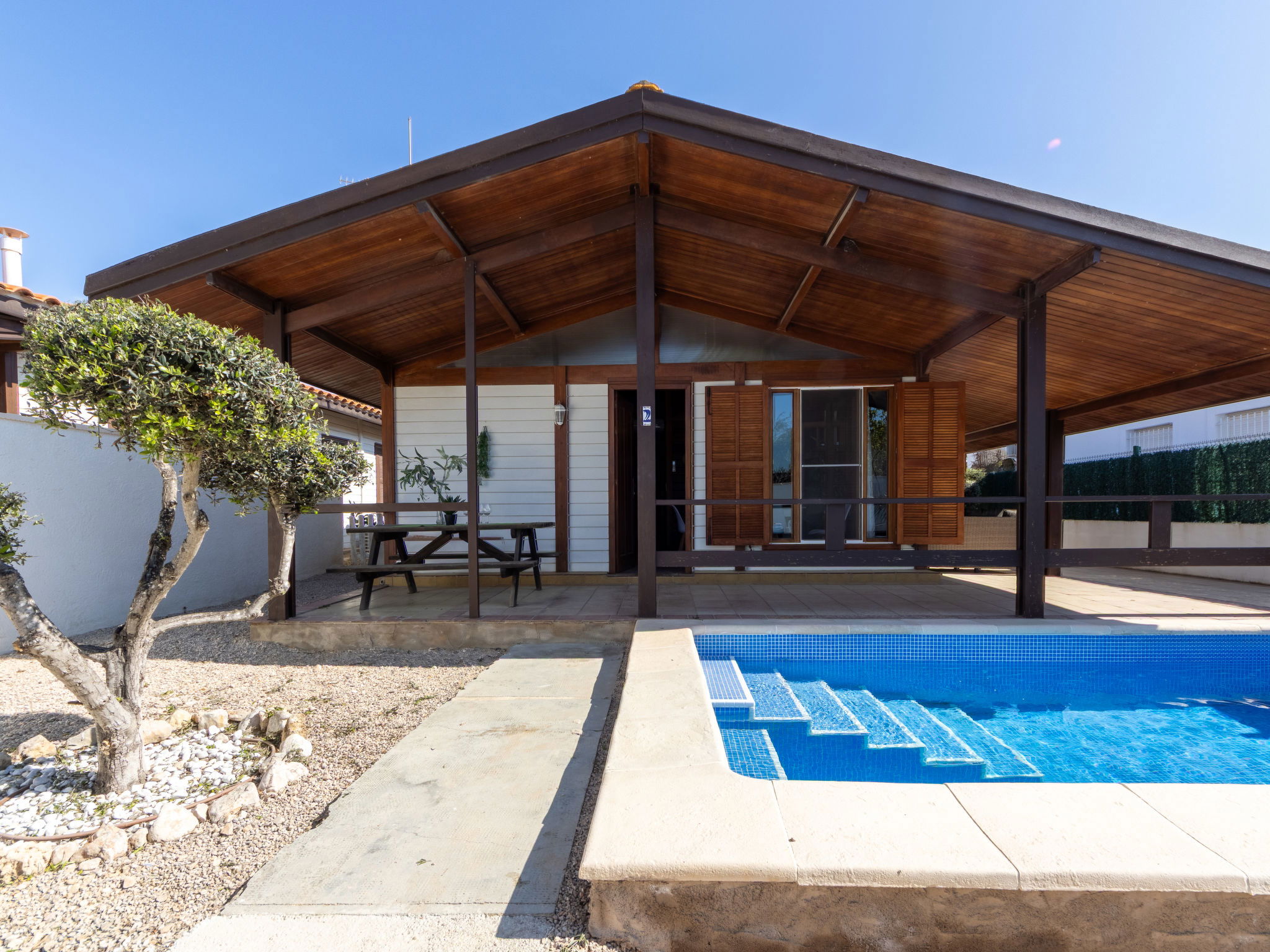 Riumar à 10 km de Deltebre: Beau maison en bois accueillant "Tropical 2", jumelé. Situation tranquille, ensoleillée, à 500 m de la mer, à 500 m de la plage. A usage privé: terrain (clôturé), jardin naturel, piscine rectangulaire (5 x 3 m, profondeur 1 - profondeur 60 cm, disponibilité saisonnière: 01.Mar. - 30.Nov.) avec marches intérieures. Pergola, terrasse, meubles de jardin, barbecue. Infrastructures de la Maison: Connexion WIFI, air-conditionné. Place de parking près de la maison, parking public possible dans la rue. Supermarché 500 m, restaurant, bar 300 m, boulangerie 700 m, arrêt de bus "Riumar" 650 m, gare ferroviaire "Aldea- Amposta" 25 km, plage de sable "Riumar" 500 m. Port plaisance 1 km. Attractions à proximité: Parque natural Delta del Ebro 2 km, Tortosa 35 km, Playa el Trabucador 29 km, Barcelona 190 km, Port Aventura 70 km. Région de randonnées: Parque natural Puerto Tortosa Beseit 52 km, GR 92 15 km. Veuillez noter: voiture recommandée. Adapté(e) aux familles. Groupes de jeunes sur demande seulement. La photo n´est qu´un exemple.