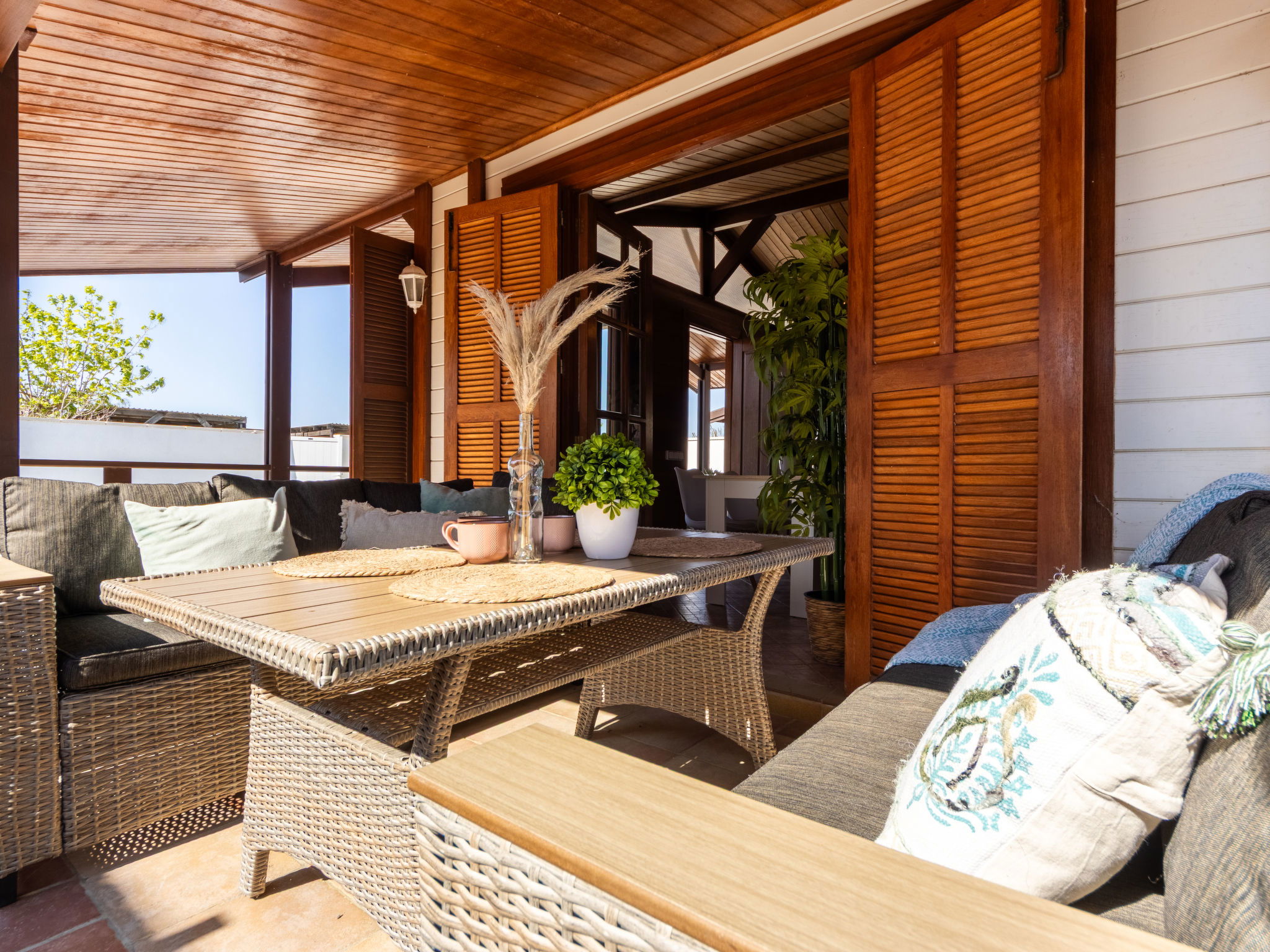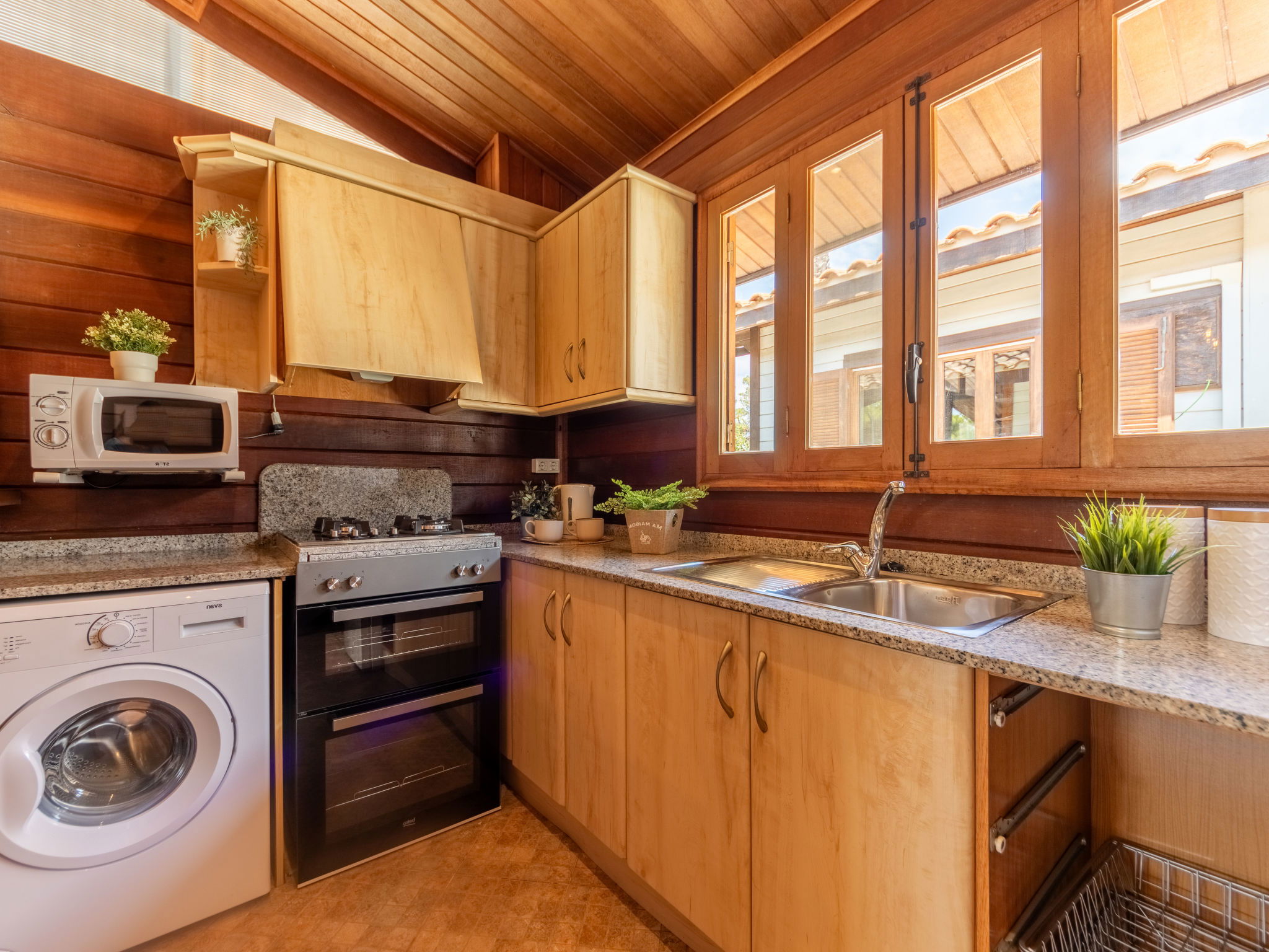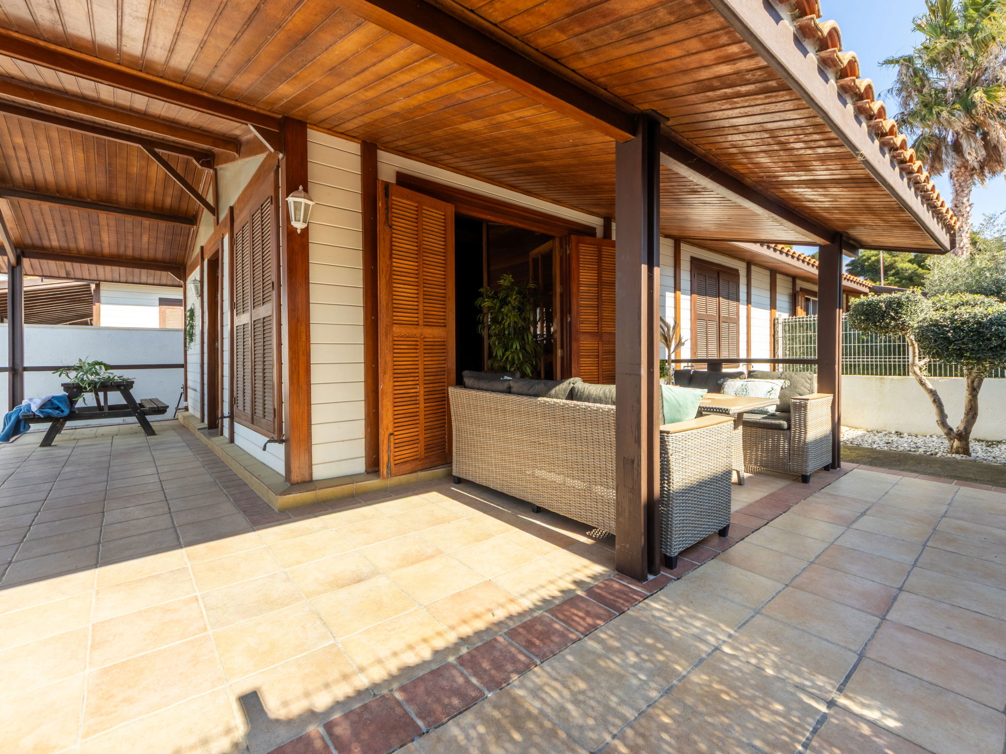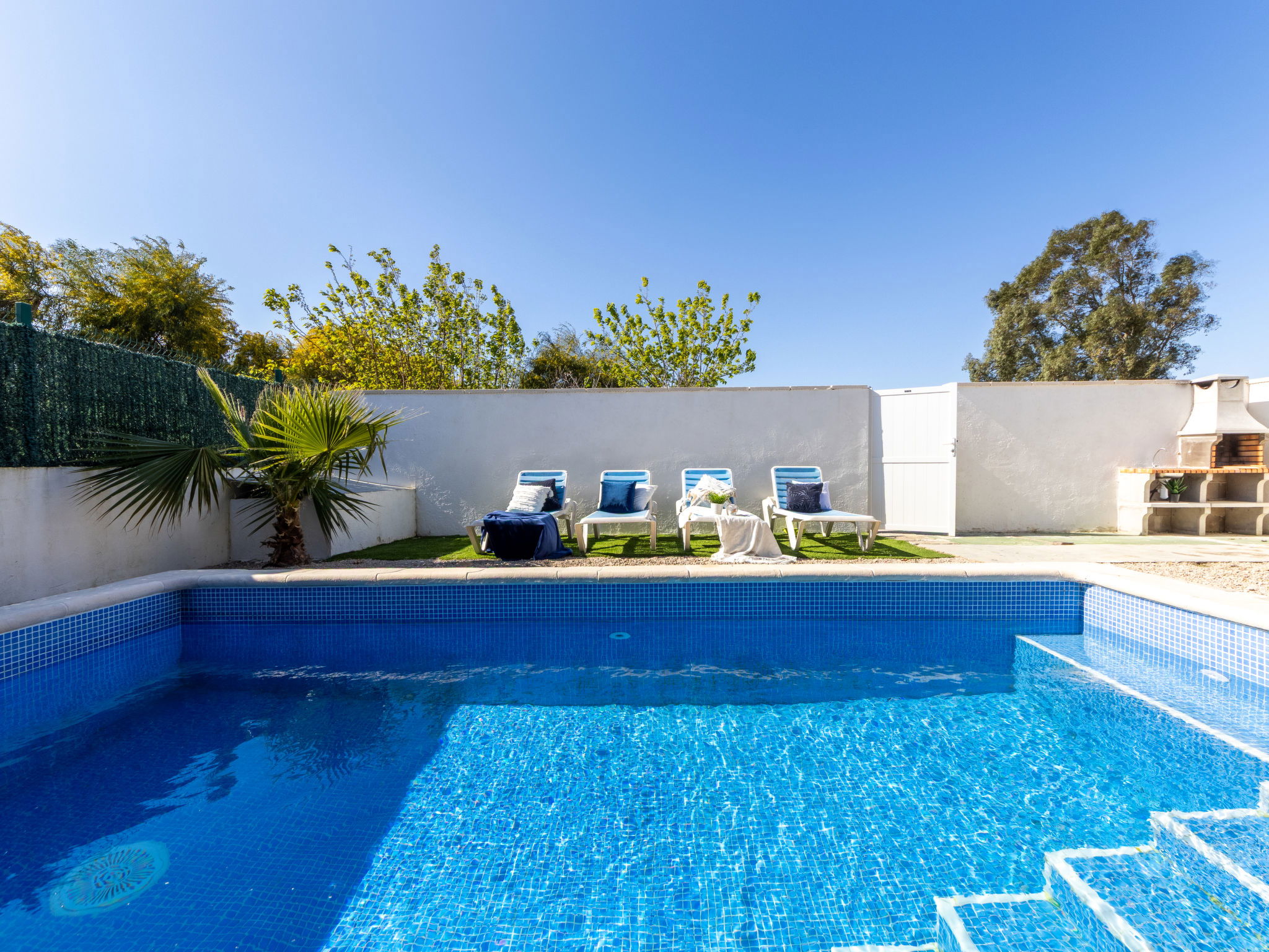 Riumar à 10 km de Deltebre: Beau maison en bois accueillant "Tropical 2", jumelé. Situation tranquille, ensoleillée, à 500 m de la mer, à 500 m de la plage. A usage privé: terrain (clôturé), jardin naturel, piscine rectangulaire (5 x 3 m, profondeur 1 - profondeur 60 cm, disponibilité saisonnière: 01.Mar. - 30.Nov.) avec marches intérieures. Pergola, terrasse, meubles de jardin, barbecue. Infrastructures de la Maison: Connexion WIFI, air-conditionné. Place de parking près de la maison, parking public possible dans la rue. Supermarché 500 m, restaurant, bar 300 m, boulangerie 700 m, arrêt de bus "Riumar" 650 m, gare ferroviaire "Aldea- Amposta" 25 km, plage de sable "Riumar" 500 m. Port plaisance 1 km. Attractions à proximité: Parque natural Delta del Ebro 2 km, Tortosa 35 km, Playa el Trabucador 29 km, Barcelona 190 km, Port Aventura 70 km. Région de randonnées: Parque natural Puerto Tortosa Beseit 52 km, GR 92 15 km. Veuillez noter: voiture recommandée. Adapté(e) aux familles. Groupes de jeunes sur demande seulement. La photo n´est qu´un exemple.