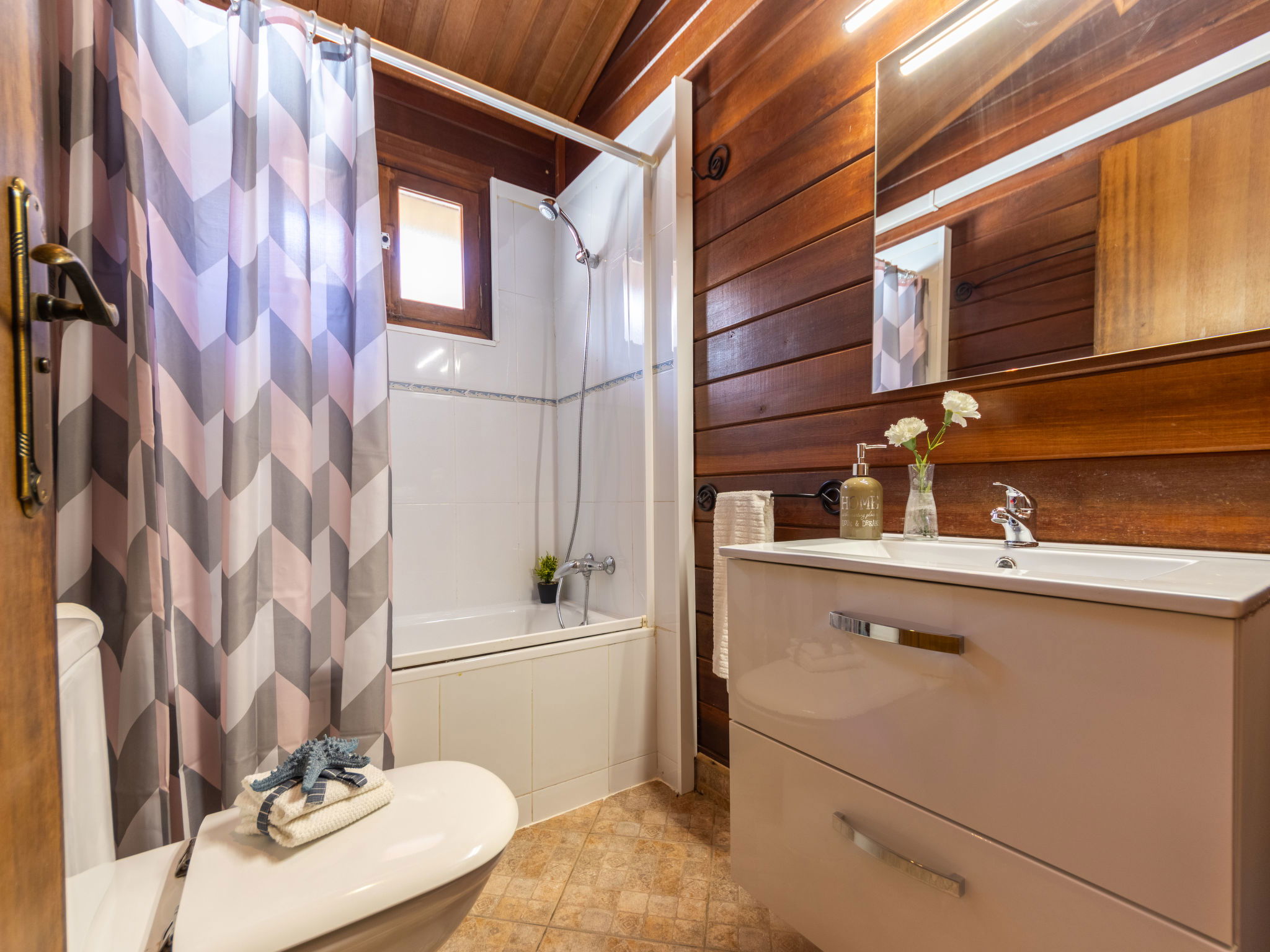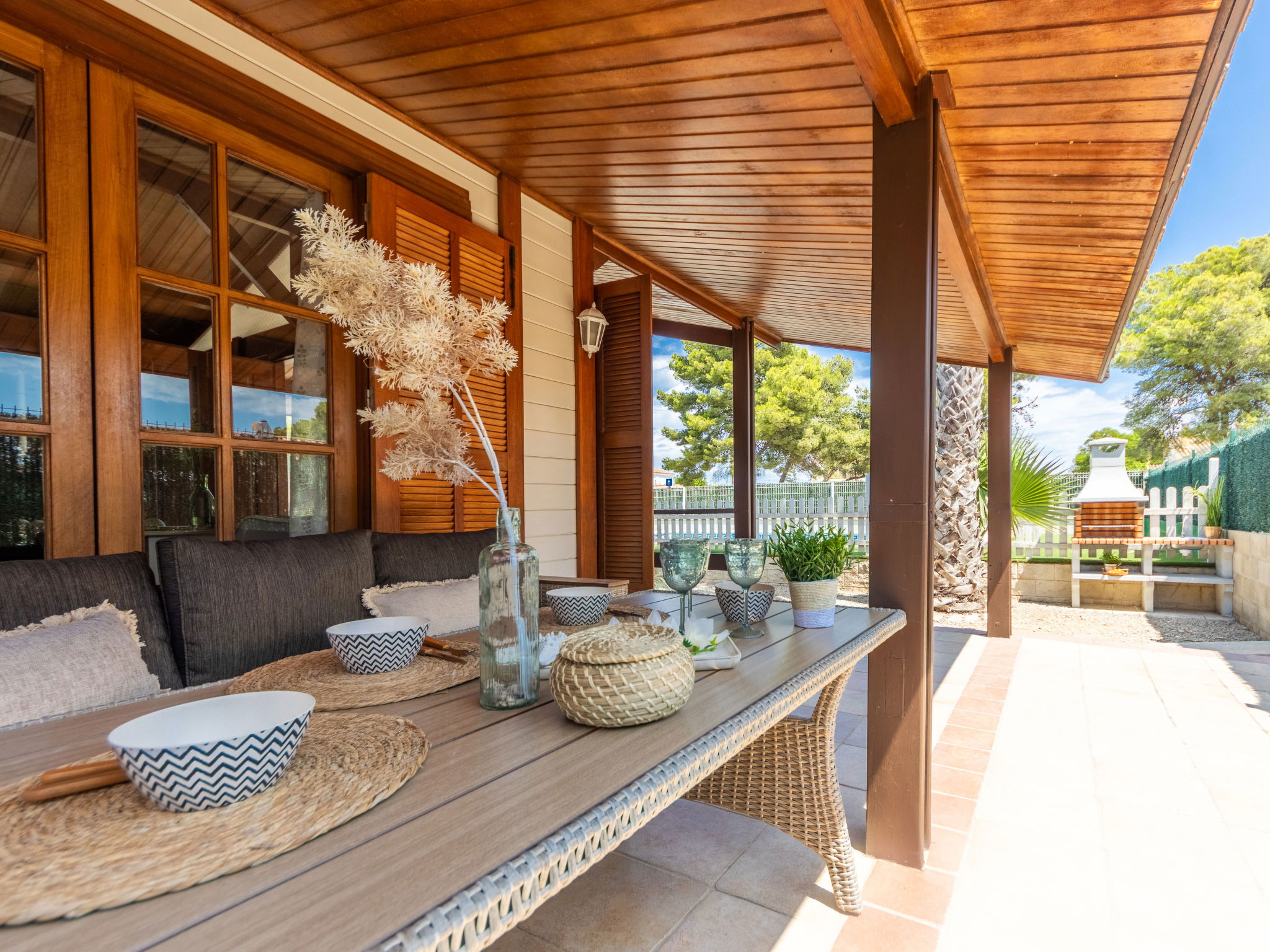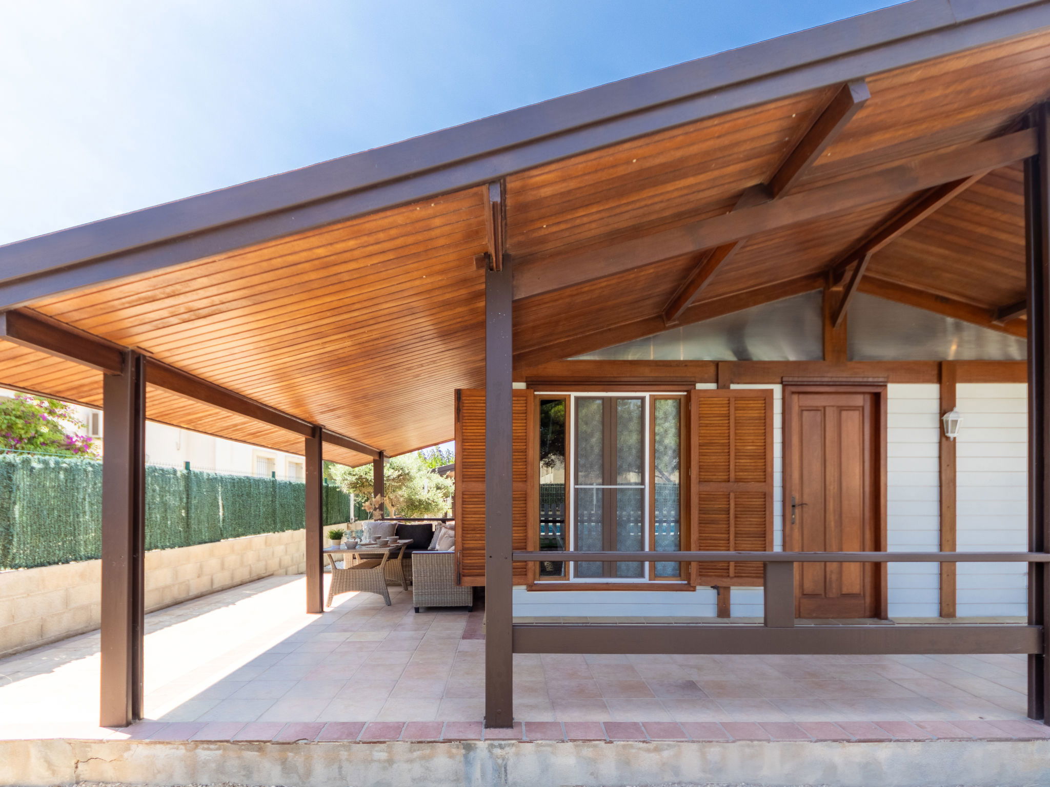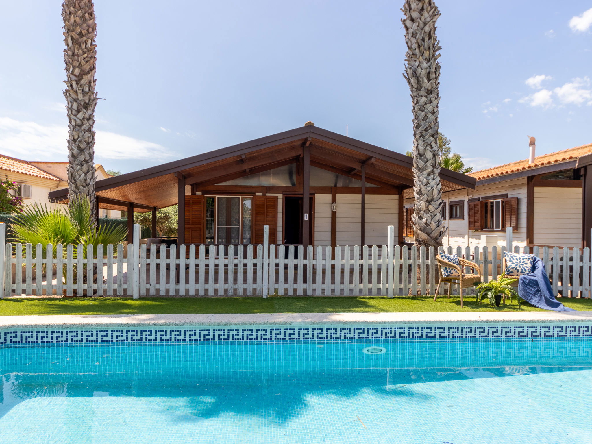 Riumar à 10 km de Deltebre: Beau maison en bois accueillant "Tropical 1", jumelé. Situation tranquille, ensoleillée, à 500 m de la mer, à 500 m de la plage. A usage privé: terrain (clôturé), jardin naturel, piscine rectangulaire (5 x 3 m, profondeur 1 - profondeur 60 cm, disponibilité saisonnière: 01.Mar. - 30.Nov.) avec marches intérieures. Pergola, terrasse, meubles de jardin, barbecue. Infrastructures de la Maison: Connexion WIFI, air-conditionné. Place de parking près de la maison, parking public possible dans la rue. Supermarché 500 m, restaurant, bar 300 m, boulangerie 700 m, arrêt de bus "Riumar" 650 m, gare ferroviaire "Aldea- Amposta" 25 km, plage de sable "Riumar" 500 m. Port plaisance 1 km. Attractions à proximité: Parque natural Delta del Ebro 2 km, Tortosa 35 km, Playa el Trabucador 29 km, Barcelona 190 km, Port Aventura 70 km. Région de randonnées: Parque natural Puerto Tortosa Beseit 52 km, GR 92 15 km. Veuillez noter: voiture recommandée. Adapté(e) aux familles. Groupes de jeunes sur demande seulement. La photo n´est qu´un exemple.