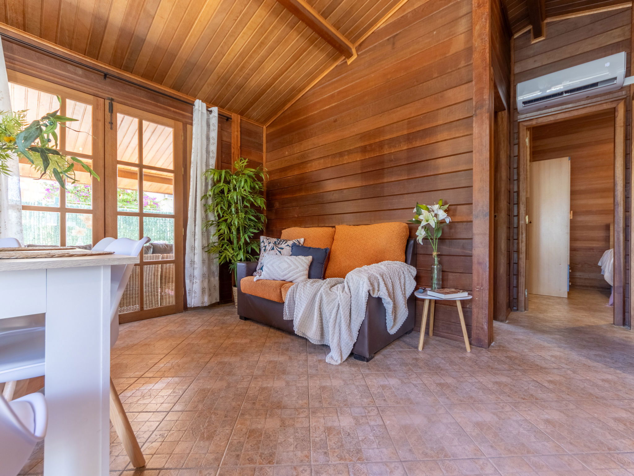 "Tropical 1", chalet 3 pièces 62 m2, au rez-de-chaussée. Aménagement agréable et plaisant: séjour/salle à manger avec table pour les repas, Télévision numérique, air-conditionné et chauffage à air chaud. Sortie sur le jardinet. 1 chambre double avec 1 grand-lit (150 cm, longueur 190 cm), 1 lit gigogne (2 pers. 2 x 90 cm, longueur 190 cm). 1 chambre double avec 1 grand-lit (150 cm, longueur 190 cm). Cuisine ouverte dans l'entrée (4 plaques de cuisson, four, grille-pain, micro-ondes, congélateur, cafetière électrique, four à pizza) avec bar. Baignoire sabot/WC. Air-conditionné, chauffage à air chaud. Meubles de terrasse, barbecue, chaises longues, loggia. A disposition: lave-linge, fer à repasser, moustiquaire, sèche-cheveux. Internet (Connexion WIFI, gratuit). Place de parking près de la maison. Adapté(e) aux familles. Maximum 2 animaux/ chiens autorisés. HUTTE-000439