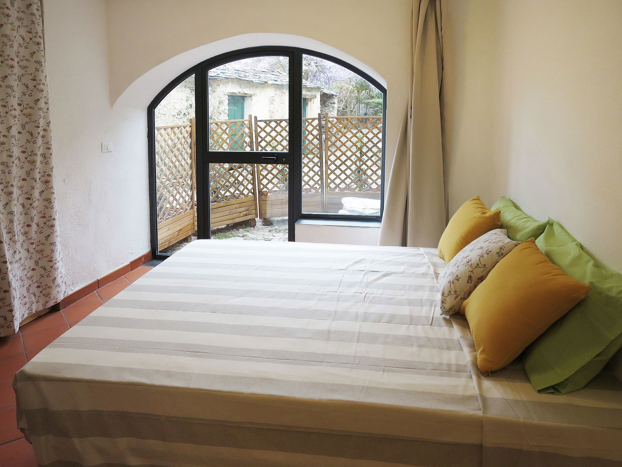 "Annina ", maison 2 pièces 40 m2 sur 2 niveaux. Rénovée en 2015: 1 chambre ouverte avec 1 lit double et douche/bidet/WC. Sortie sur la terrasse. À l'étage supérieur: séjour/chambre à coucher avec 1 divan-lit double et table pour les repas. Petite cuisine ouverte (four, 4 feux, bouilloire électrique, congélateur). Pas de chauffage. Jardinet, jardin 100 m2. Meubles de terrasse, chaises longues (2). Belle vue sur les montagnes, la vallée et la localité. A disposition: lave-linge, fer à repasser. Maximum 2 animaux/ chiens autorisés. IT008030C22G9L7BM3