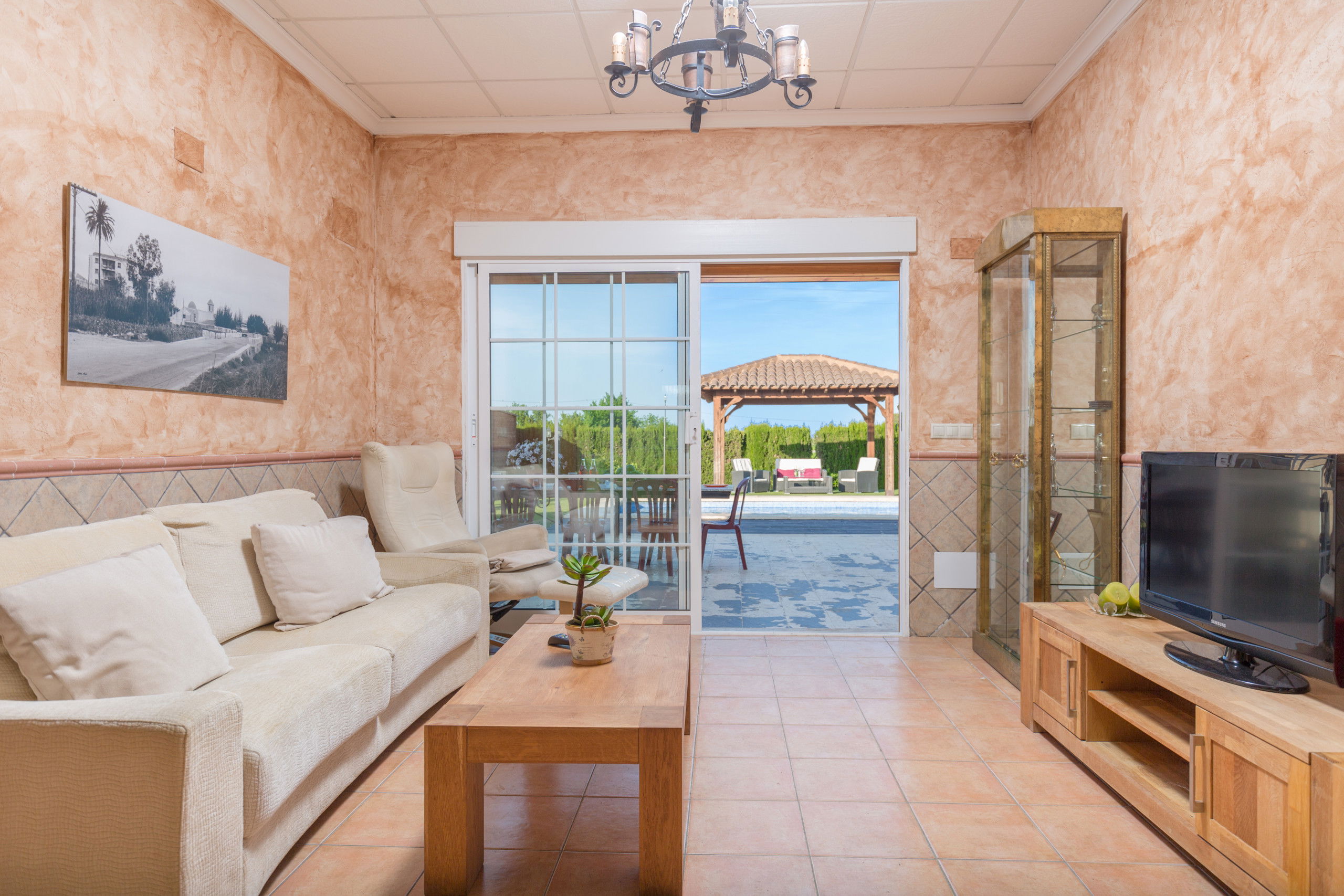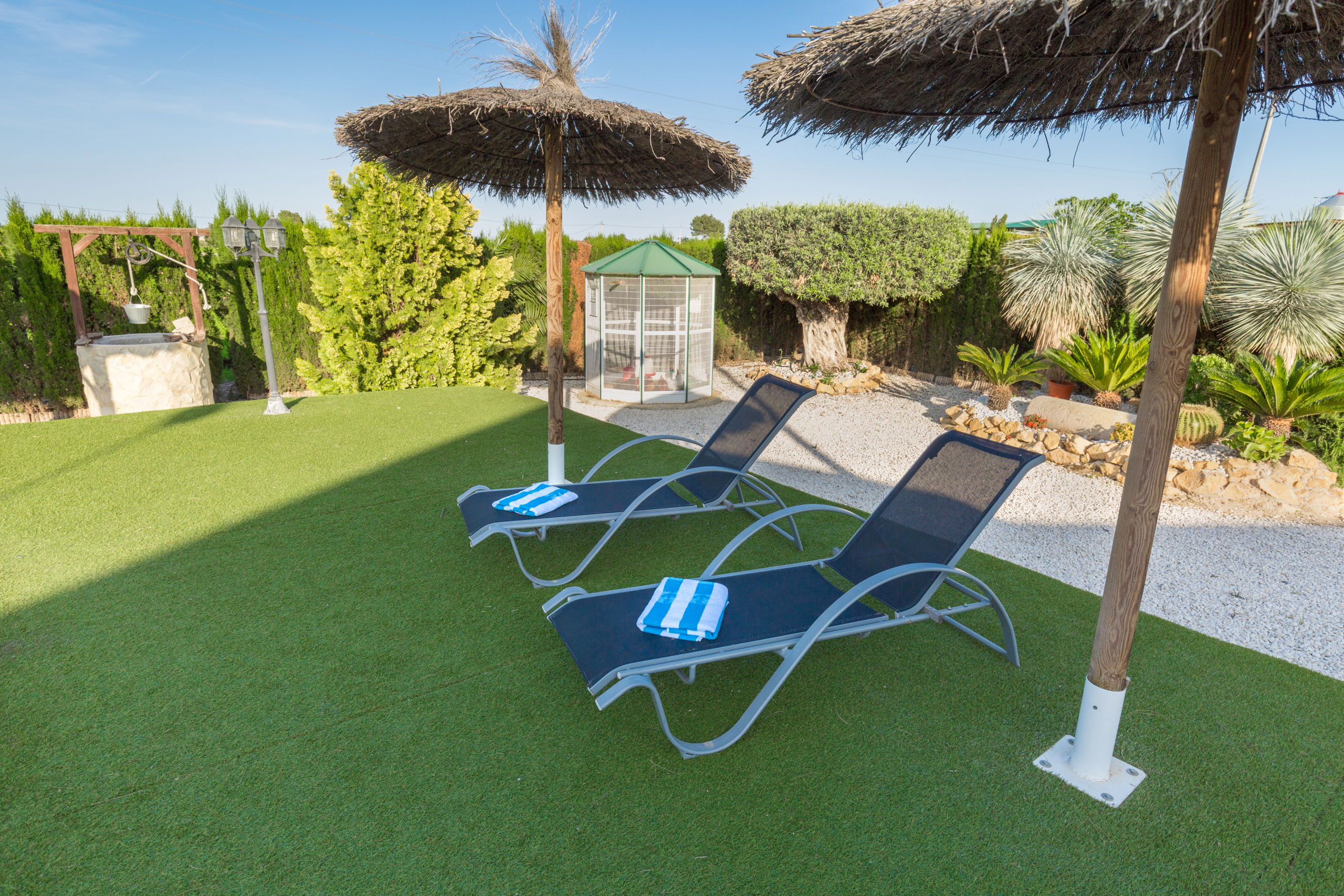 Appartement confortable de 100 m² et de construction récente, donnant sur le jardin privé avec piscine et barbecue, salon de jardin, terrain clôturé, 250 m² de terrasse, barbecue, cheminée, fer à repasser, accès internet (Wi-Fi), sèche-cheveux, sauna, piscine privée, parking en plein air dans le même bâtiment, 1 ventilateur, 1 TV, TV satellite (Langues: espagnol, anglais, allemand, néerlandais, français, russe, suédois, norvégien).