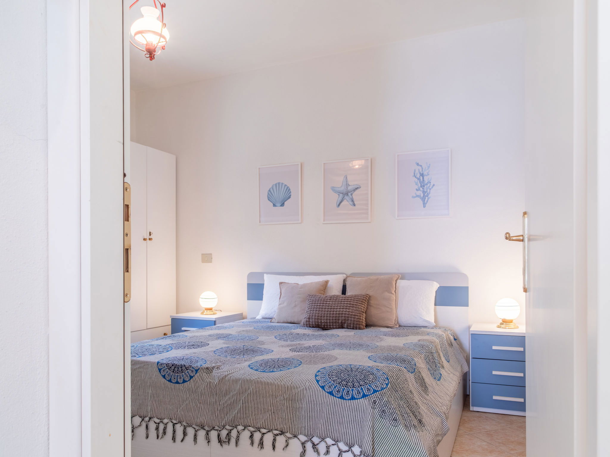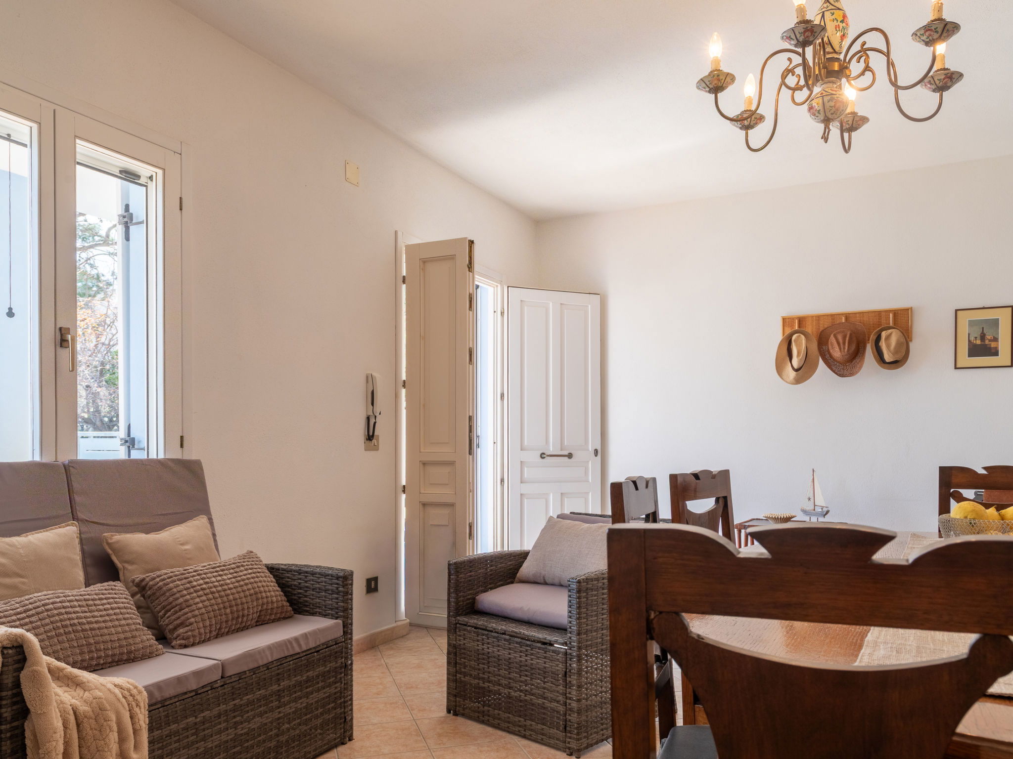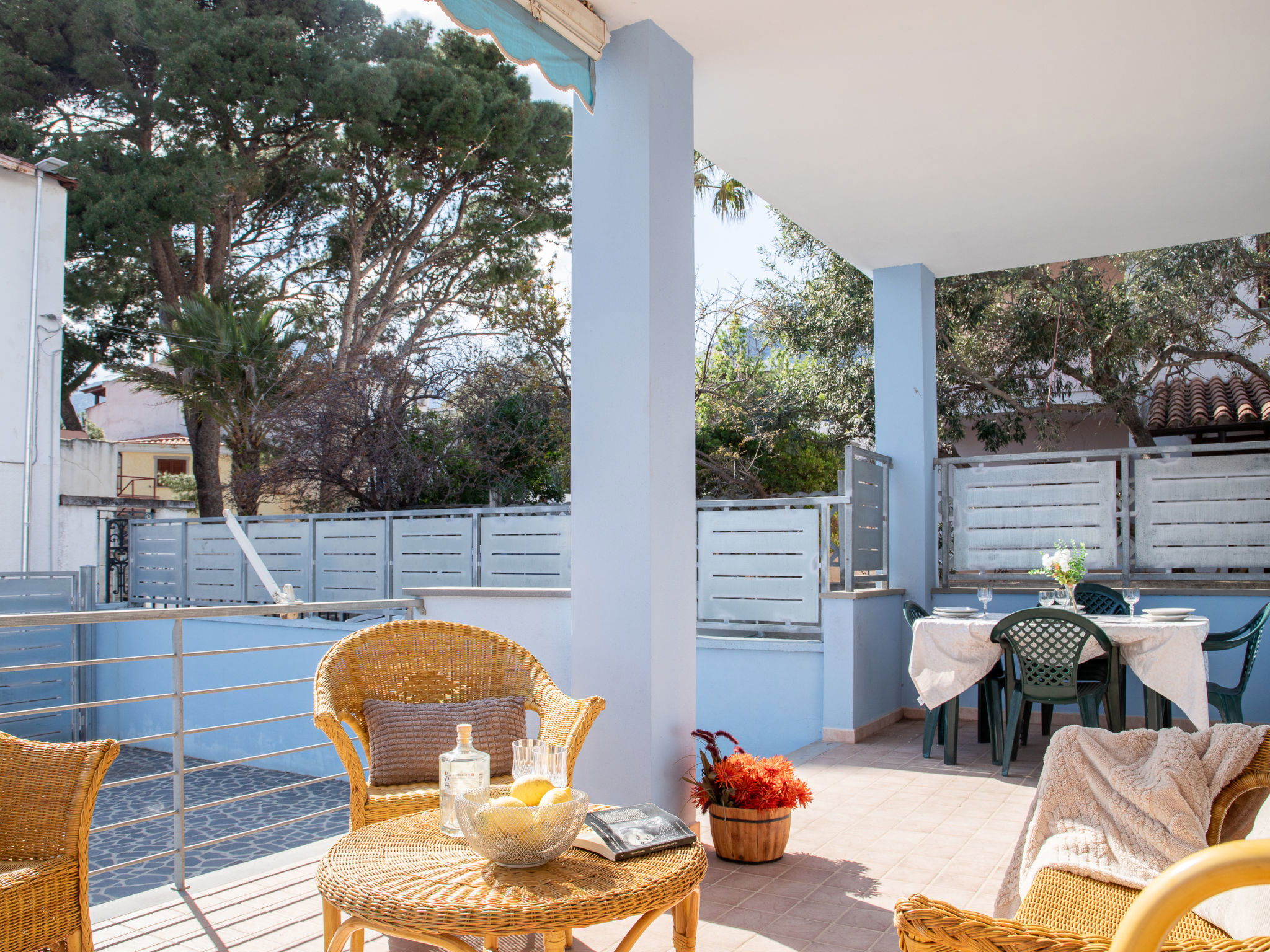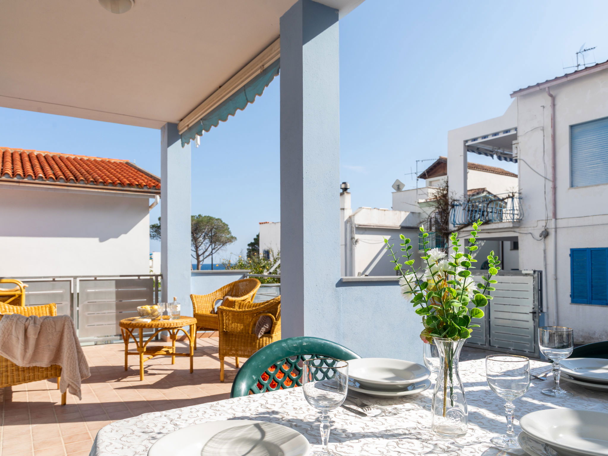 Appartement de 3 pièces 76 m2, rez-de-chaussée surélevé. Aménagement agréable et plaisant: séjour/salle à manger avec TV (écran plat). Sortie sur la terrasse. 2 chambres, chaque chambre avec: 1 divan-lit (80 cm, longueur 180 cm), 1 lit double. Cuisine ouverte (4 plaques de cuisson, four, lave-vaisselle, grille-pain, bouilloire électrique, micro-ondes, cafetière électrique). 2 douches/bidet/WC. Air-conditionné, chauffage à air chaud. Terrasse couverte. Meubles de terrasse, place pour s'asseoir. A disposition: lave-linge, fer à repasser, moustiquaire, sèche-cheveux. Internet (Connexion WIFI, gratuit). Place de parking (cloturée, 2 Voitures). Maximum 1 animal/ chien autorisé. Les canapés-lits des chambres conviennent aux enfants. IT091017C2000U2230