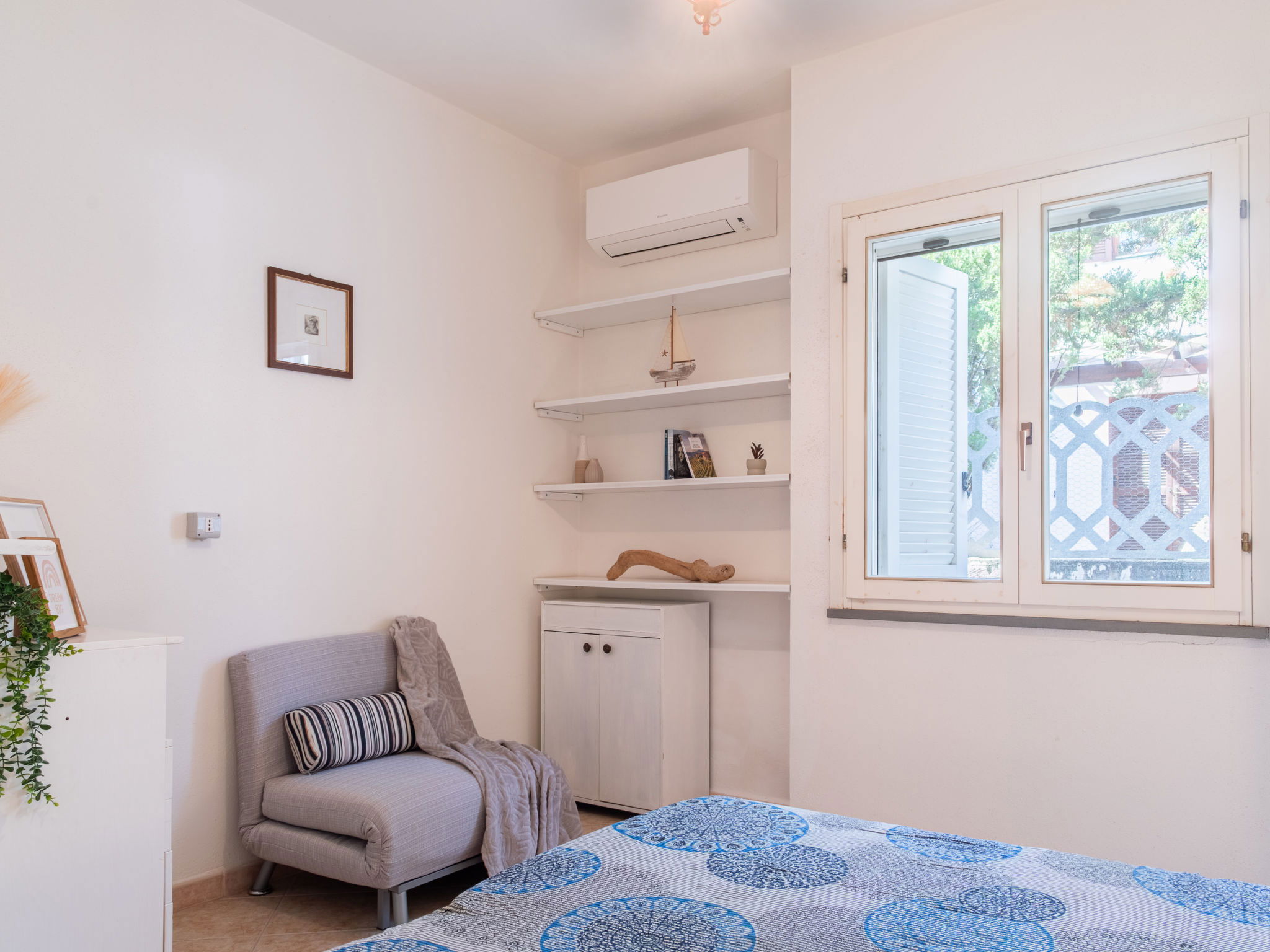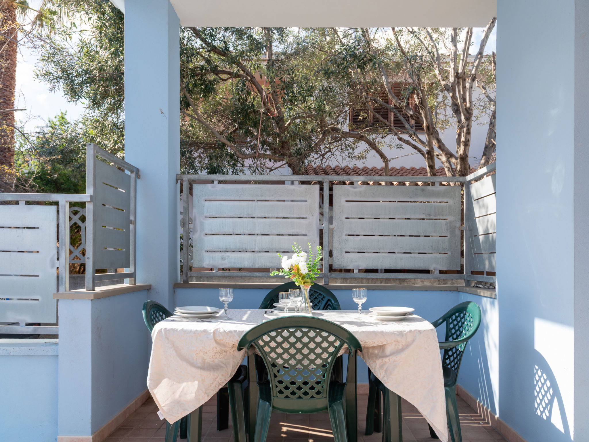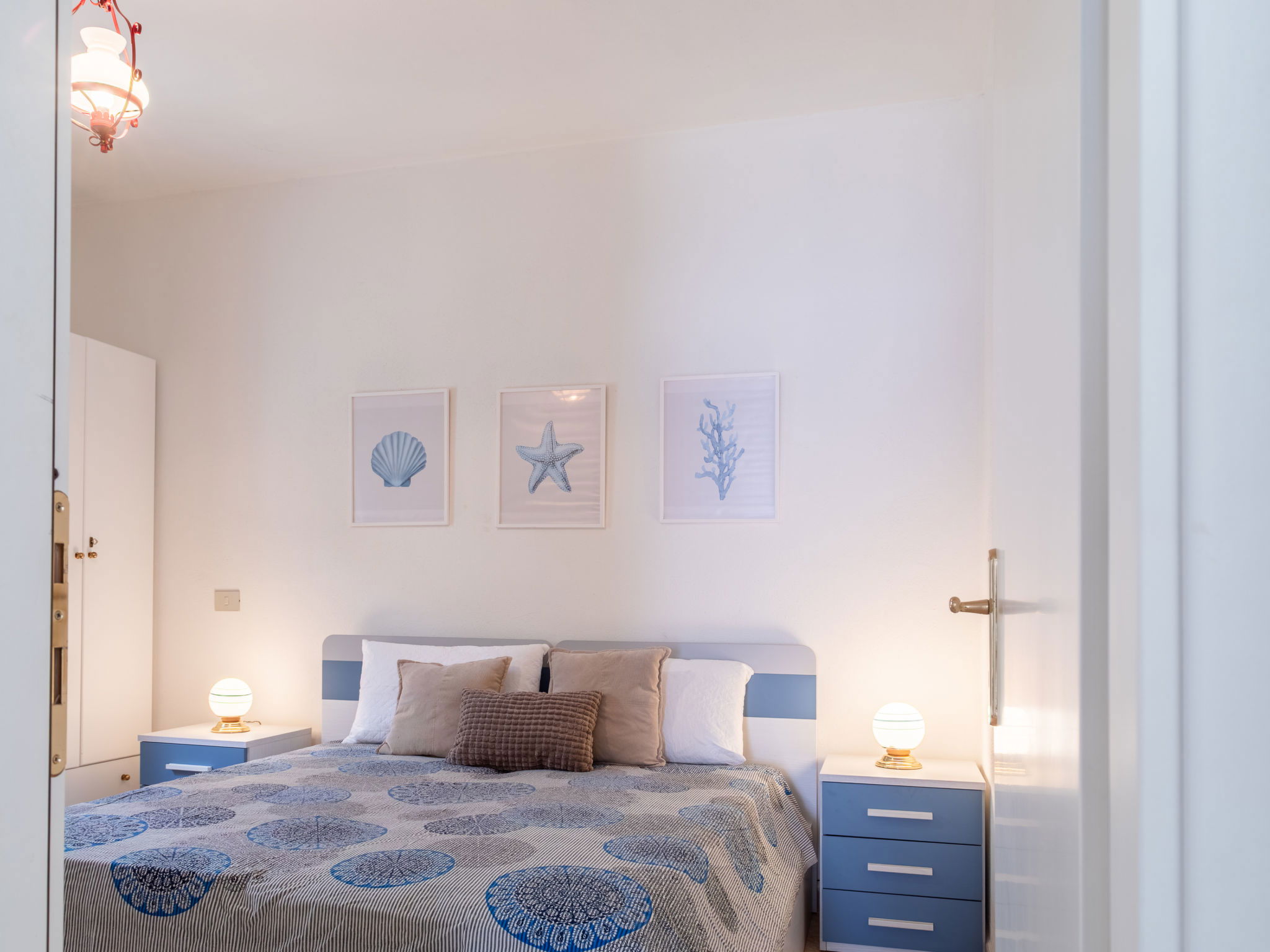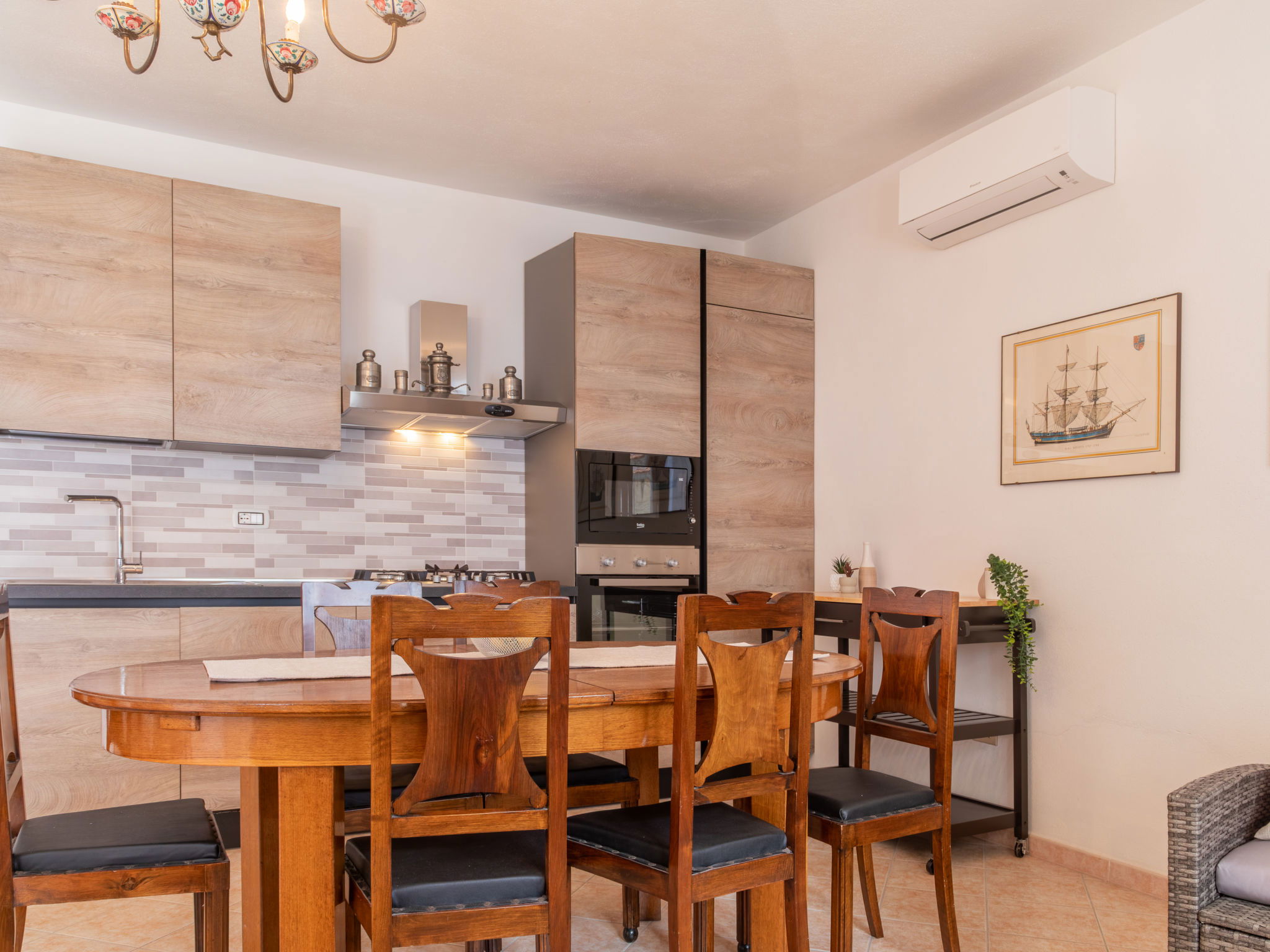 Appartement de 3 pièces 76 m2, rez-de-chaussée surélevé. Aménagement agréable et plaisant: séjour/salle à manger avec TV (écran plat). Sortie sur la terrasse. 2 chambres, chaque chambre avec: 1 divan-lit (80 cm, longueur 180 cm), 1 lit double. Cuisine ouverte (4 plaques de cuisson, four, lave-vaisselle, grille-pain, bouilloire électrique, micro-ondes, cafetière électrique). 2 douches/bidet/WC. Air-conditionné, chauffage à air chaud. Terrasse couverte. Meubles de terrasse, place pour s'asseoir. A disposition: lave-linge, fer à repasser, moustiquaire, sèche-cheveux. Internet (Connexion WIFI, gratuit). Place de parking (cloturée, 2 Voitures). Maximum 1 animal/ chien autorisé. Les canapés-lits des chambres conviennent aux enfants. IT091017C2000U2230
