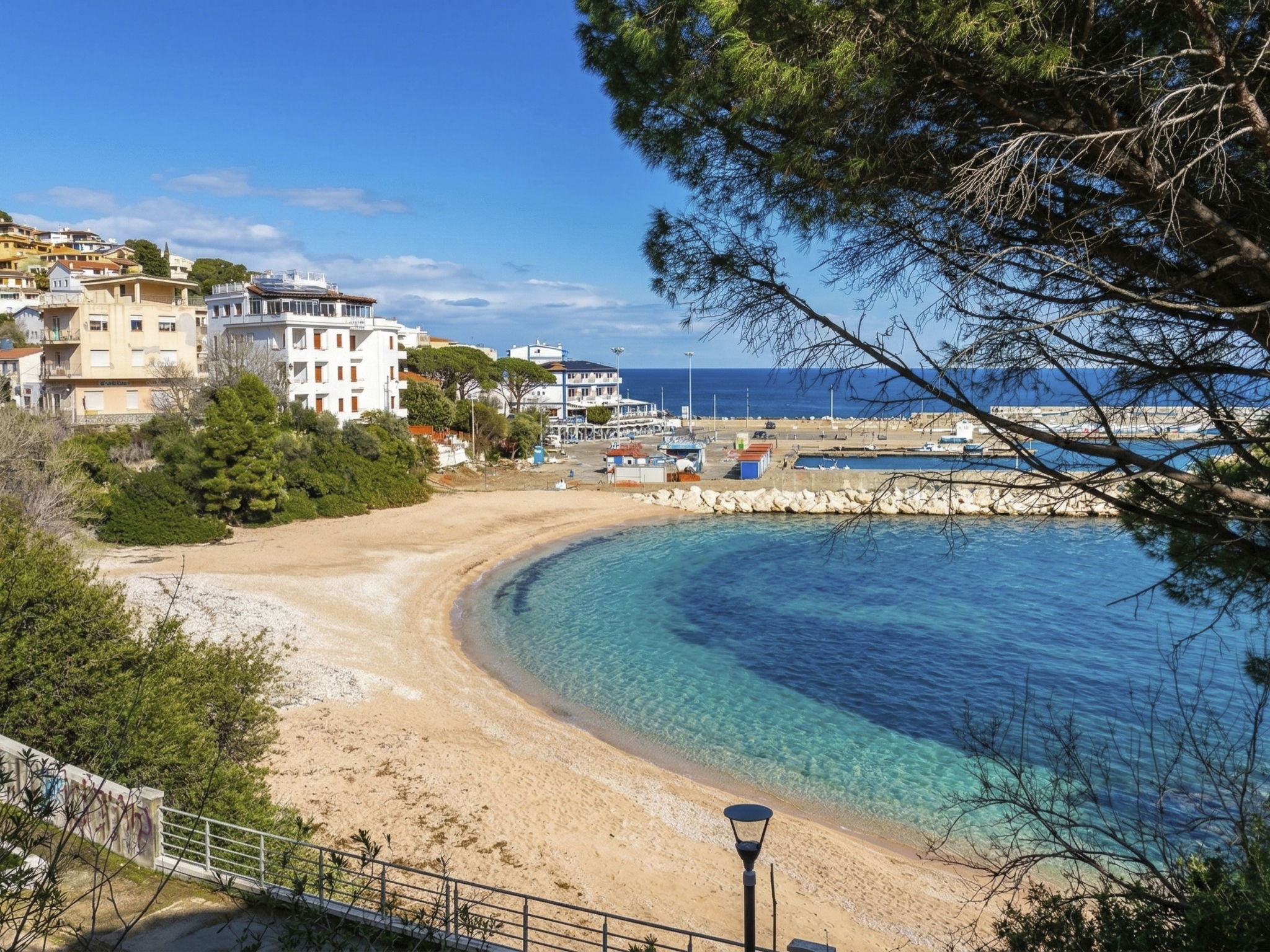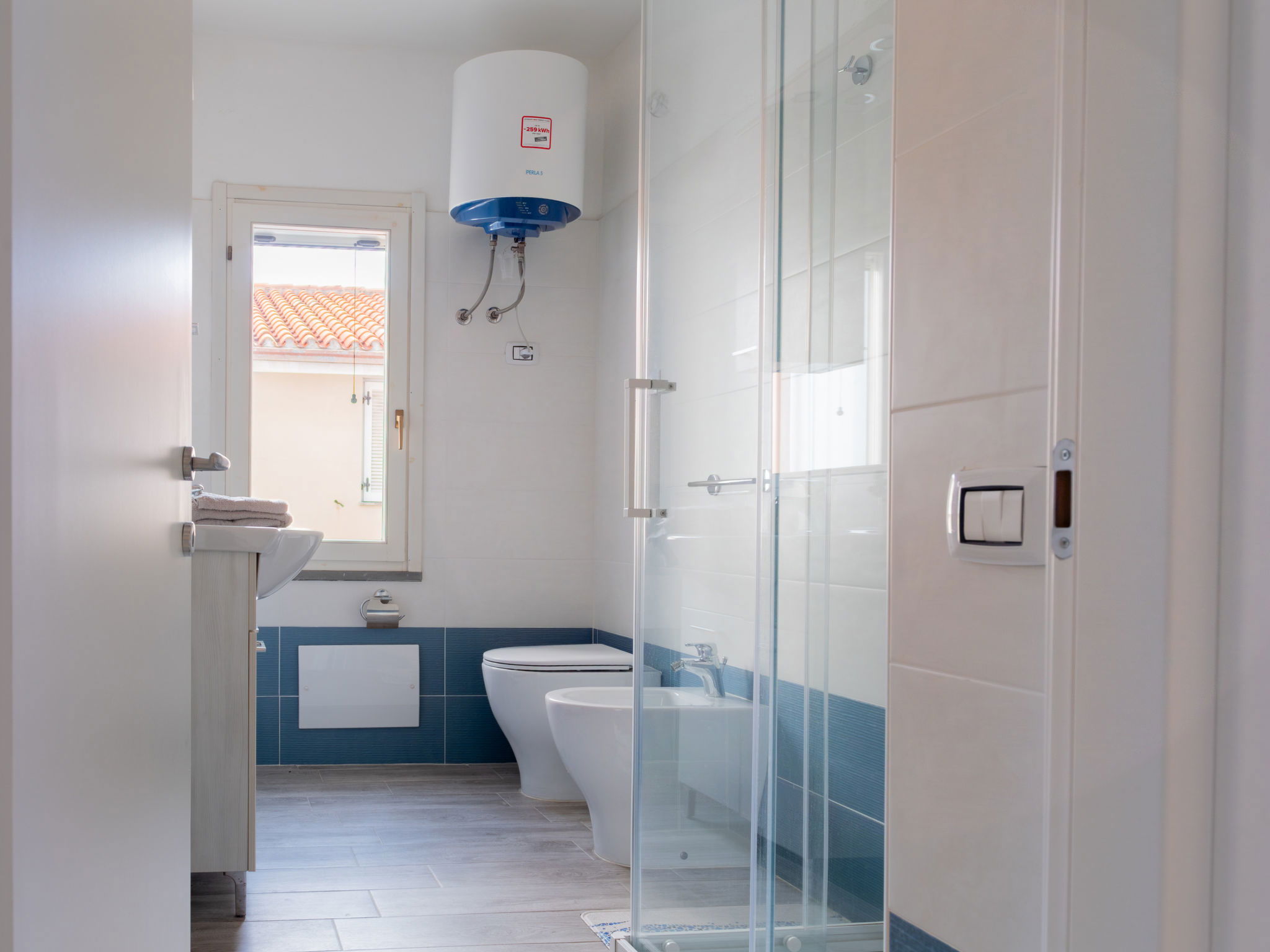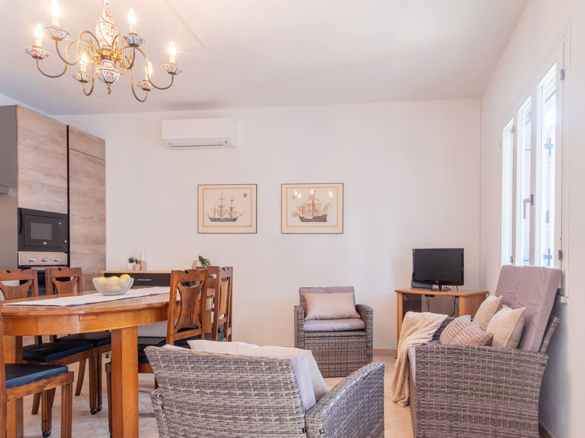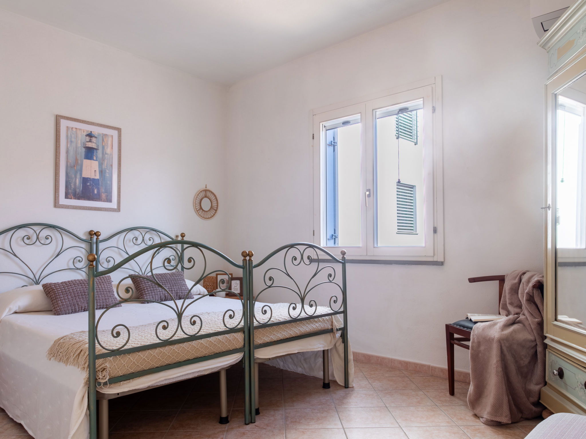 Appartement de 3 pièces 76 m2, rez-de-chaussée surélevé. Aménagement agréable et plaisant: séjour/salle à manger avec TV (écran plat). Sortie sur la terrasse. 2 chambres, chaque chambre avec: 1 divan-lit (80 cm, longueur 180 cm), 1 lit double. Cuisine ouverte (4 plaques de cuisson, four, lave-vaisselle, grille-pain, bouilloire électrique, micro-ondes, cafetière électrique). 2 douches/bidet/WC. Air-conditionné, chauffage à air chaud. Terrasse couverte. Meubles de terrasse, place pour s'asseoir. A disposition: lave-linge, fer à repasser, moustiquaire, sèche-cheveux. Internet (Connexion WIFI, gratuit). Place de parking (cloturée, 2 Voitures). Maximum 1 animal/ chien autorisé. Les canapés-lits des chambres conviennent aux enfants. IT091017C2000U2230