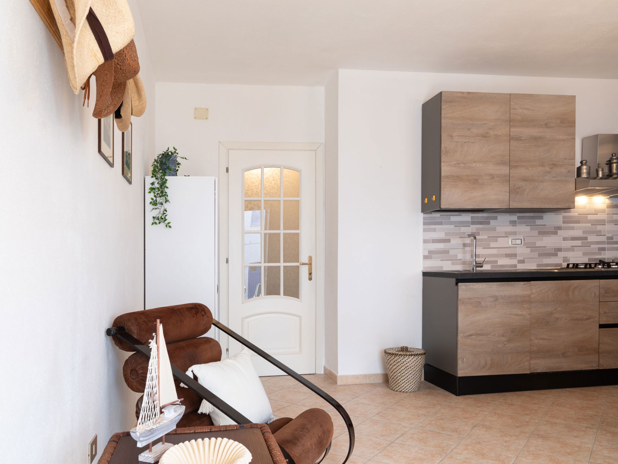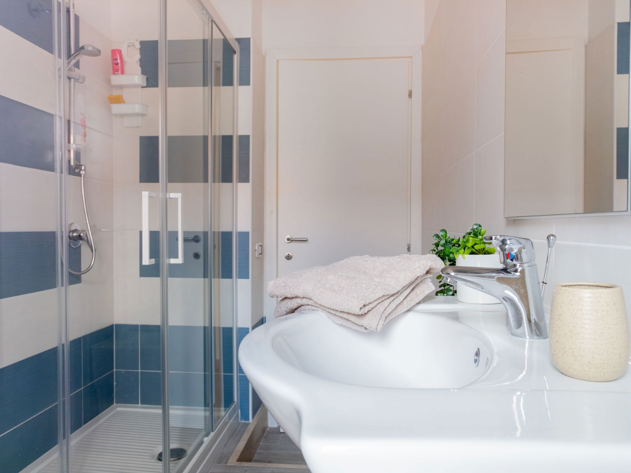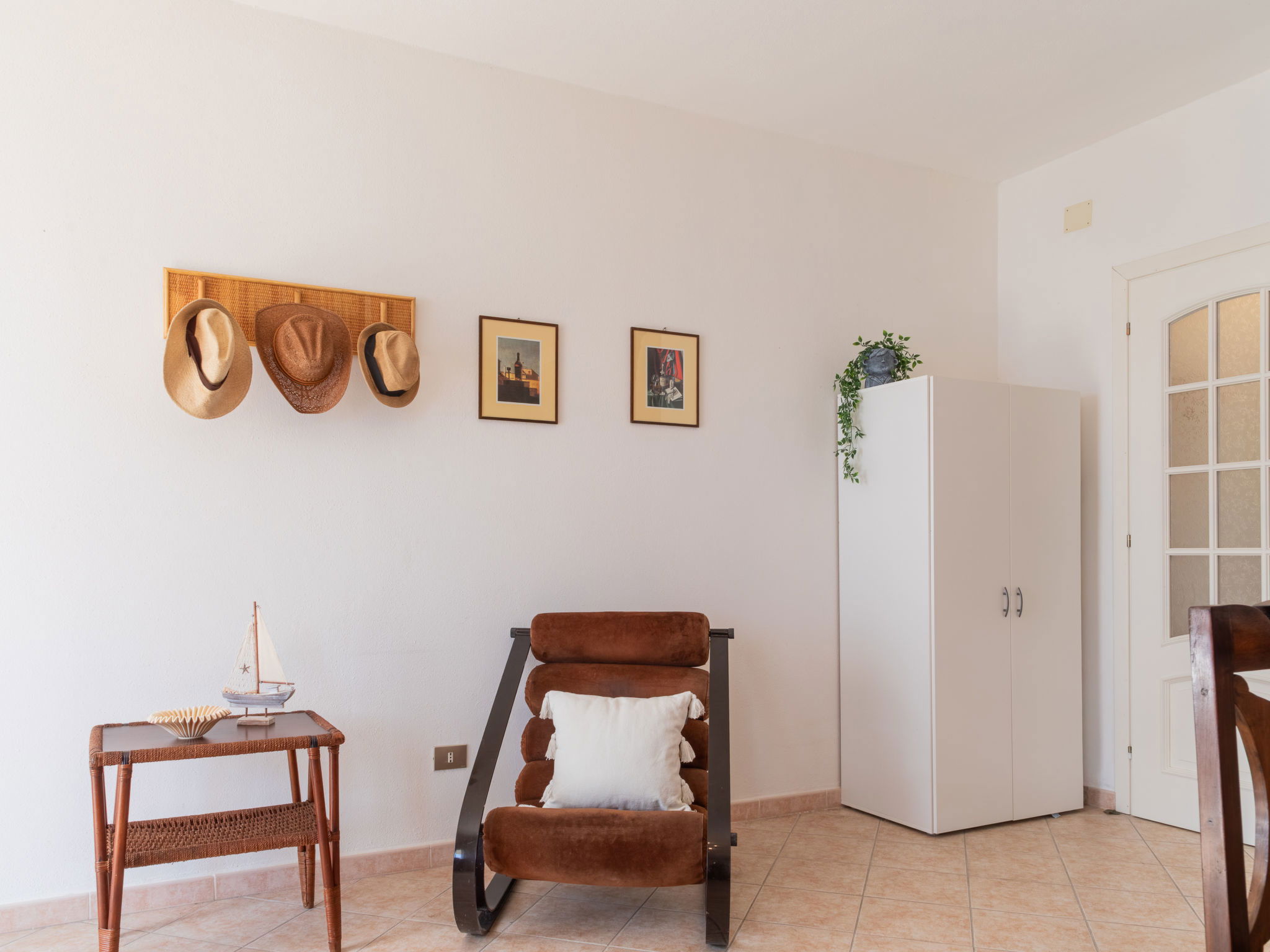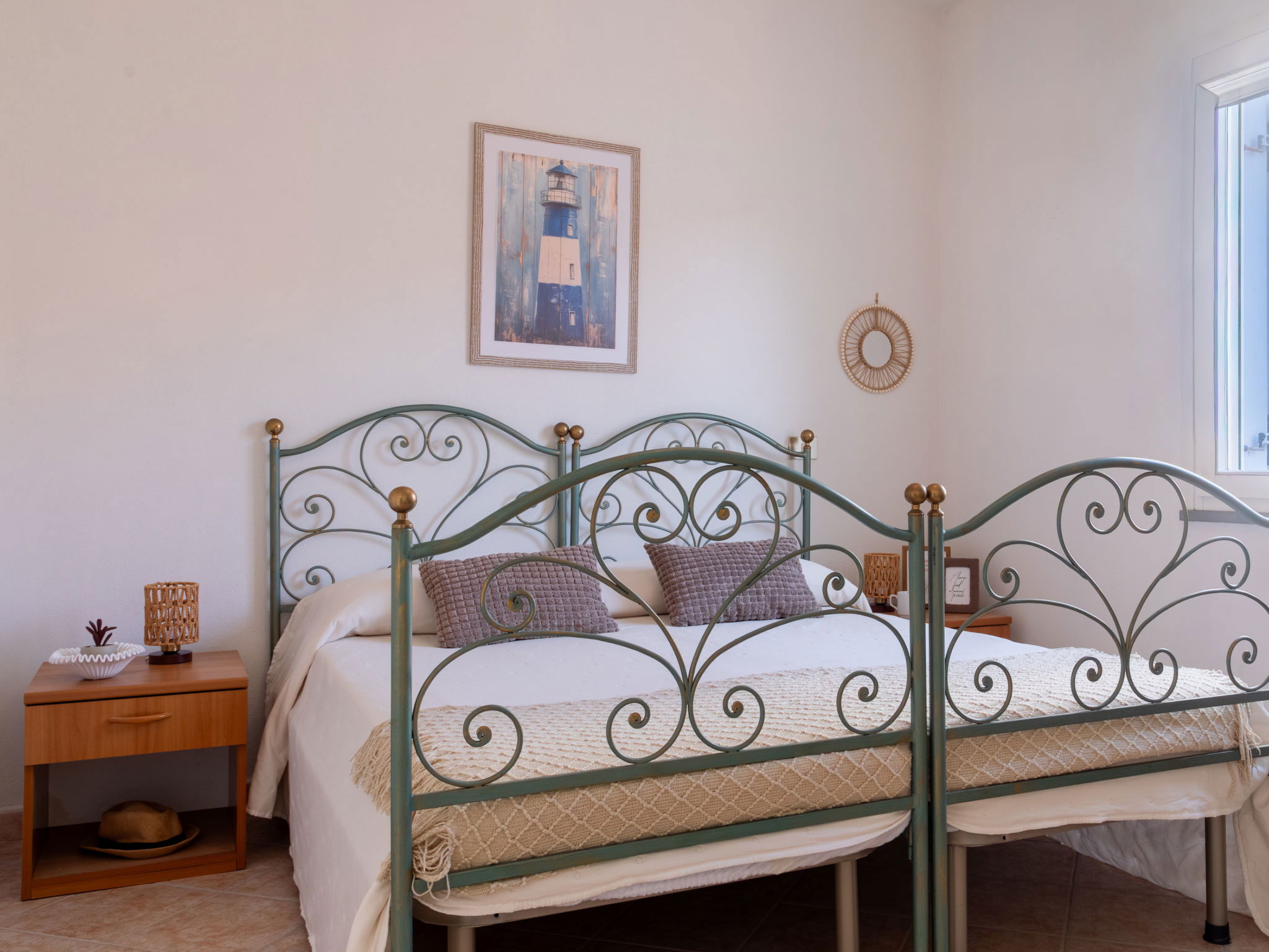 Appartement de 3 pièces 76 m2, rez-de-chaussée surélevé. Aménagement agréable et plaisant: séjour/salle à manger avec TV (écran plat). Sortie sur la terrasse. 2 chambres, chaque chambre avec: 1 divan-lit (80 cm, longueur 180 cm), 1 lit double. Cuisine ouverte (4 plaques de cuisson, four, lave-vaisselle, grille-pain, bouilloire électrique, micro-ondes, cafetière électrique). 2 douches/bidet/WC. Air-conditionné, chauffage à air chaud. Terrasse couverte. Meubles de terrasse, place pour s'asseoir. A disposition: lave-linge, fer à repasser, moustiquaire, sèche-cheveux. Internet (Connexion WIFI, gratuit). Place de parking (cloturée, 2 Voitures). Maximum 1 animal/ chien autorisé. Les canapés-lits des chambres conviennent aux enfants. IT091017C2000U2230
