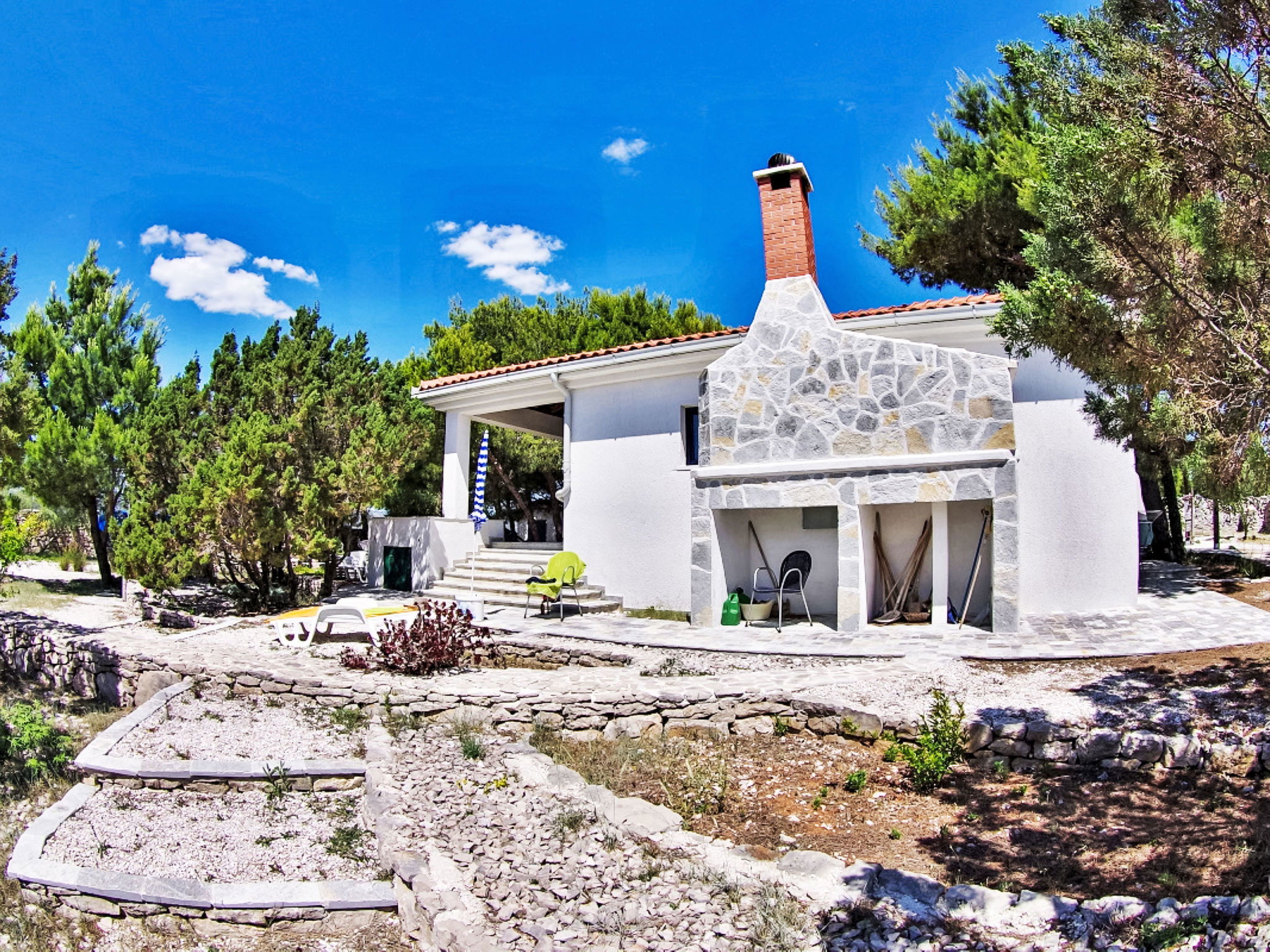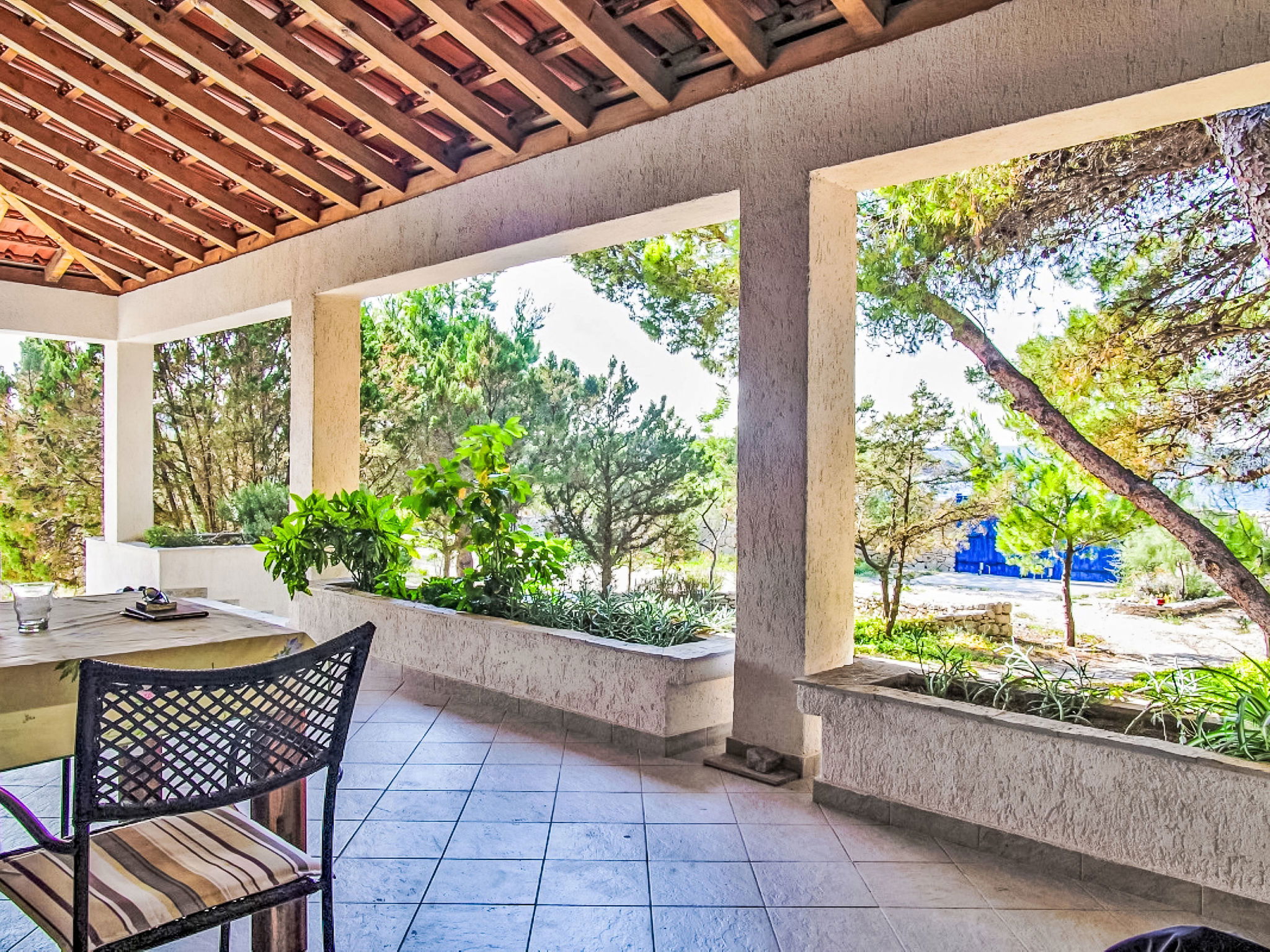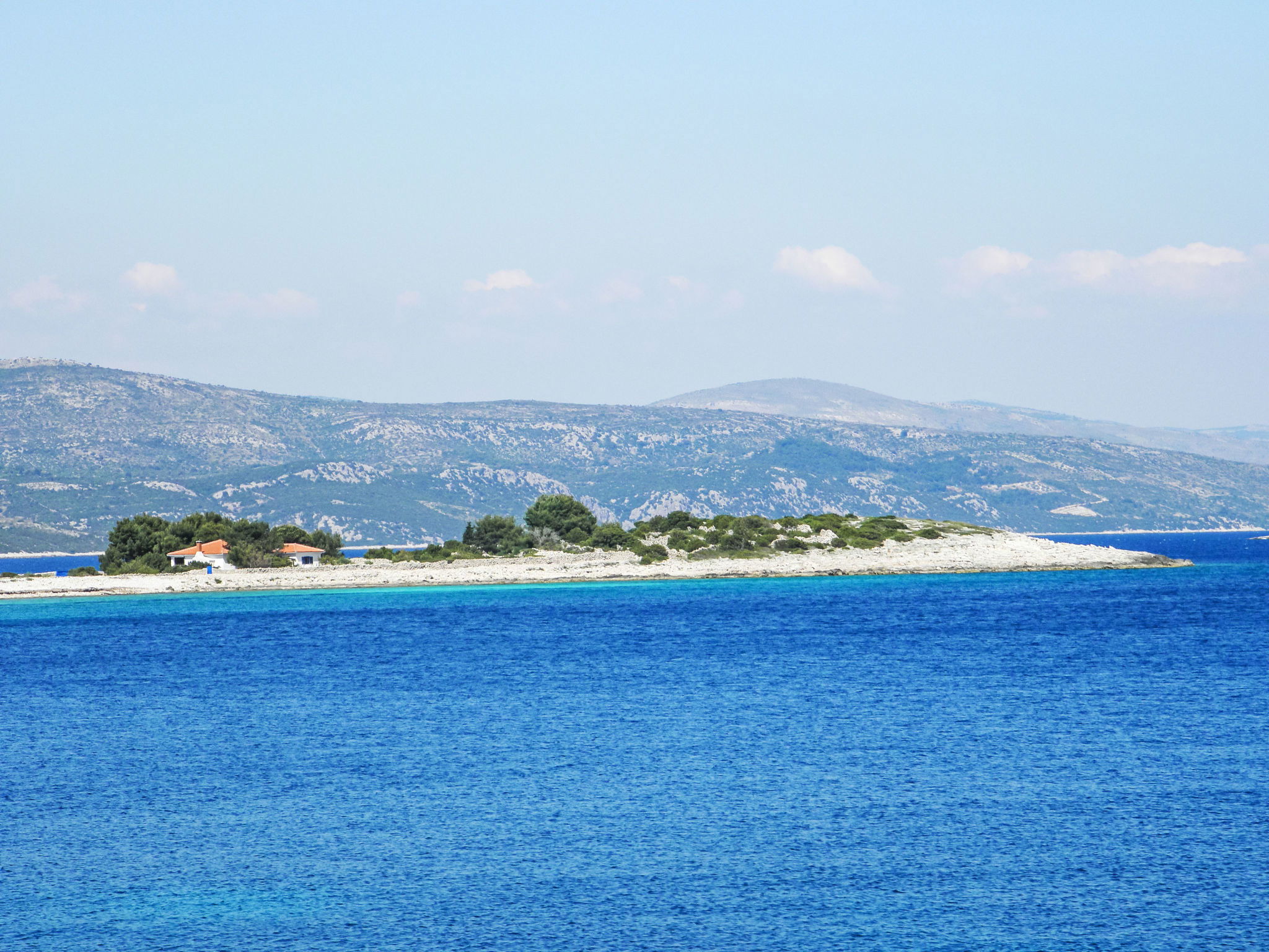 Maison "Blue". À 600 m du centre de Drvenik Mali, situation isolée, tranquille, ensoleillée, à 20 m de la mer, à 20 m de la plage. A usage privé: terrain 2'900 m2 (clôturé). Infrastructures de la Maison: accès internet, lave-linge. Accès en voiture (250 m chemin non goudronné). Place de parking près de la maison sur le terrain. Magasins, restaurant 550 m, arrêt de bus 15 km, ferry 600 m, plage de galets 20 m. Veuillez noter: place d'amarrage privée (en sus) sur demande. Aéroport 21 km de la maison. Pas d'eau courante dans la maison.