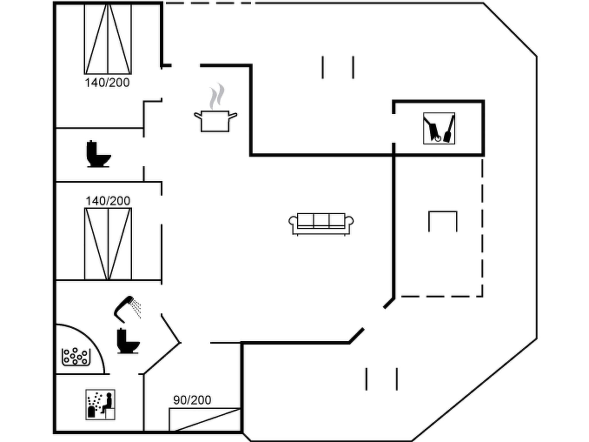 Maison individuelle, année de construction 1996. En commun: jardin. A usage privé: terrain 800 m2, jardin entretenu (clôturé). Barbecue, espace de jeux pour les enfants (balançoire). Infrastructures de la Maison: sauna, lave-linge, sèche-linge. Place de parking près de la maison. Magasin d'alimentation 4 km. Le propriétaire n'accepte pas les groupes de jeunes.
