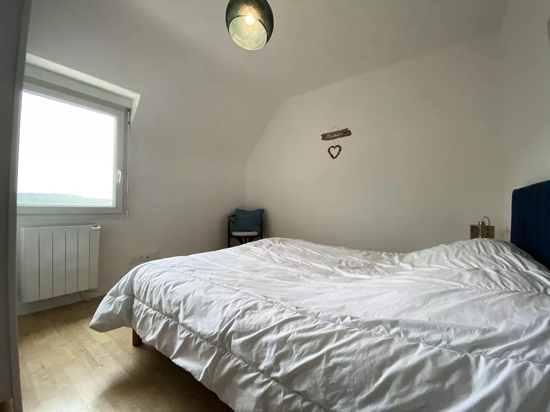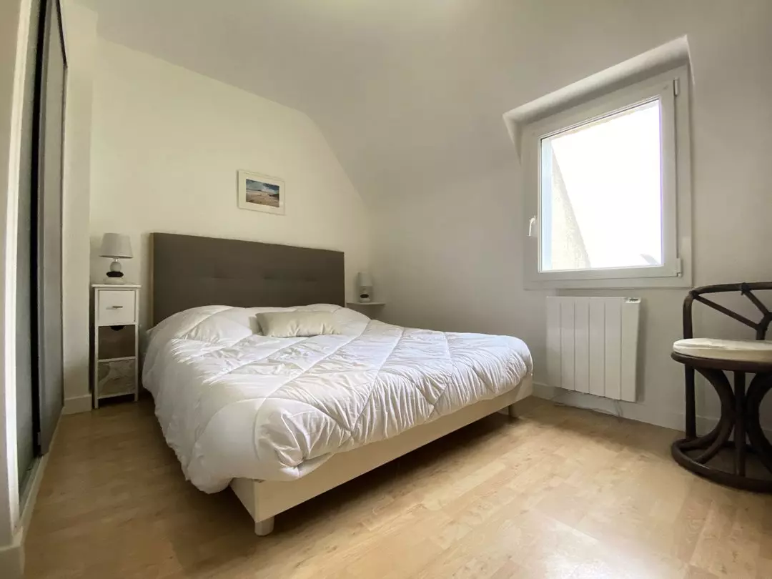 - Une chambre mansardée avec velux et très belle vue mer, 2 lits d'1 personne.