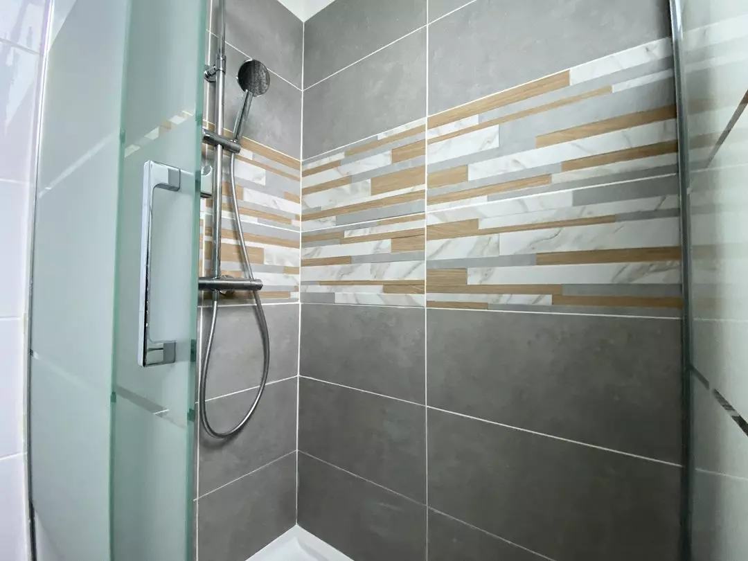 - Salle d'eau avec douche, meuble ;