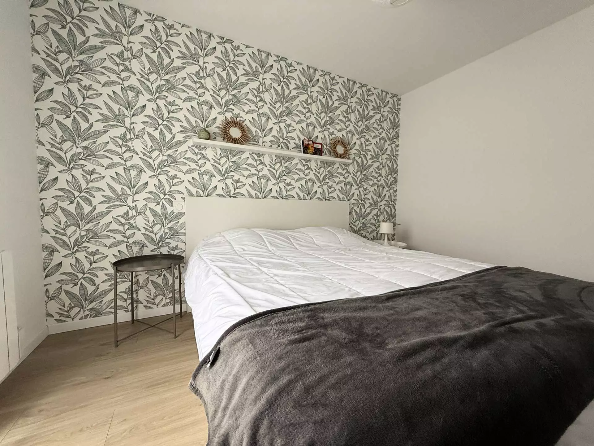 - Chambre 3 : lit double 160×200 cm, placard.