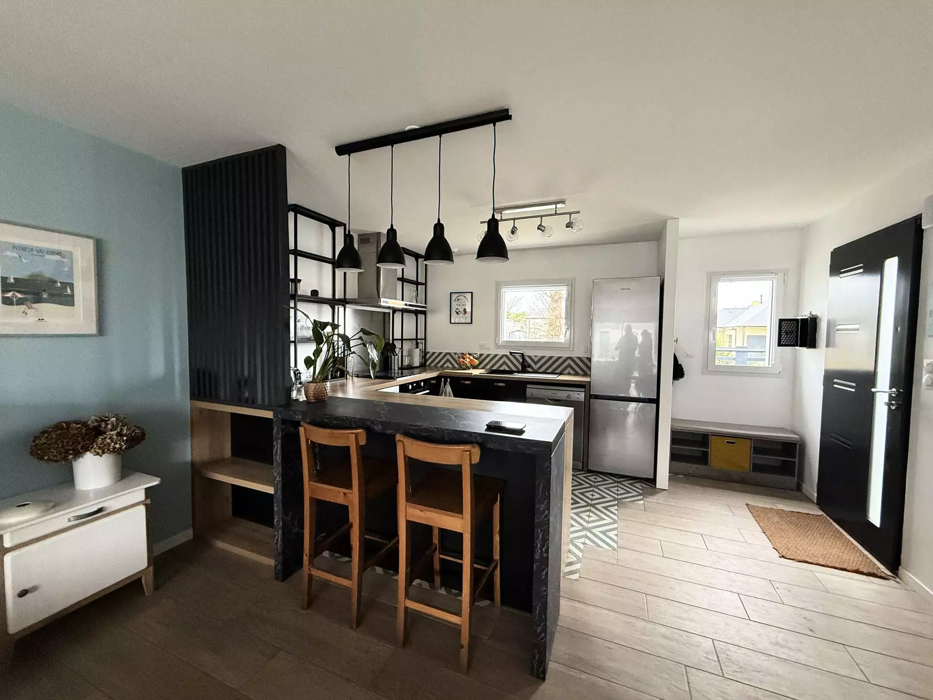 Cuisine ouverte entièrement équipée :