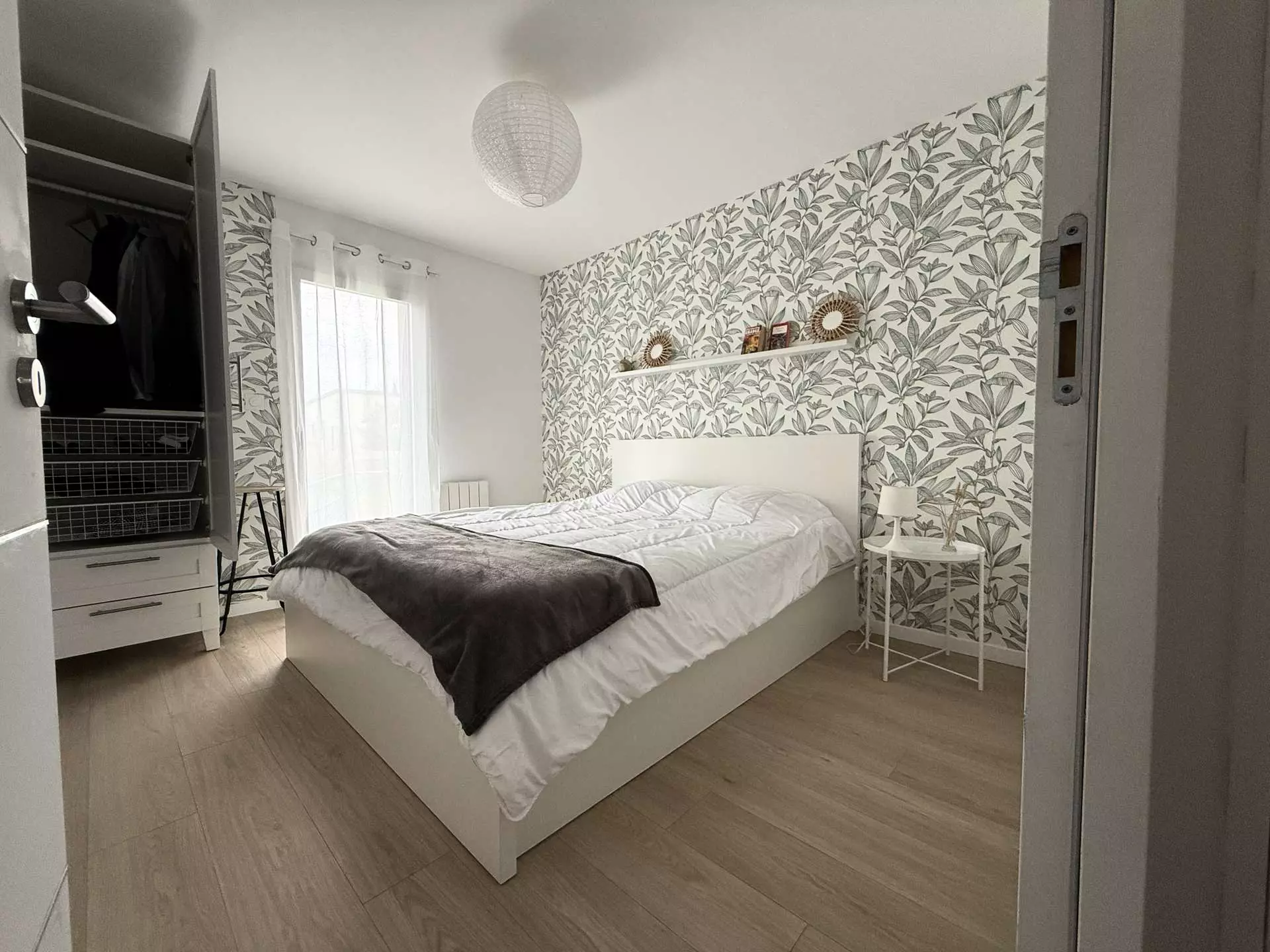 - Chambre 1 : lit double 160×200 cm, placard.