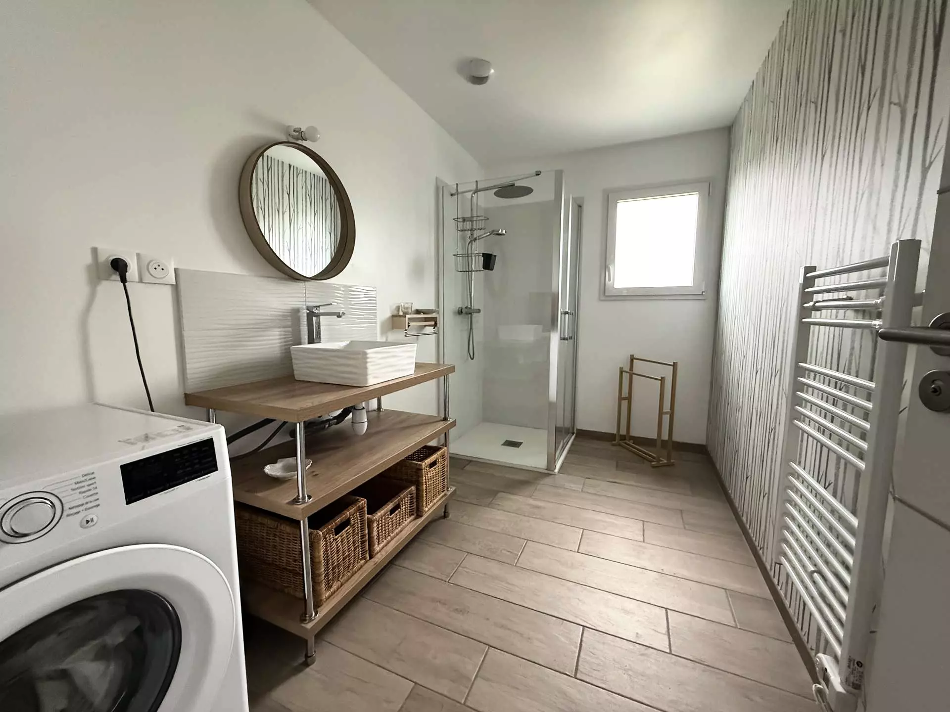 - Grande salle d’eau avec douche et vasque.