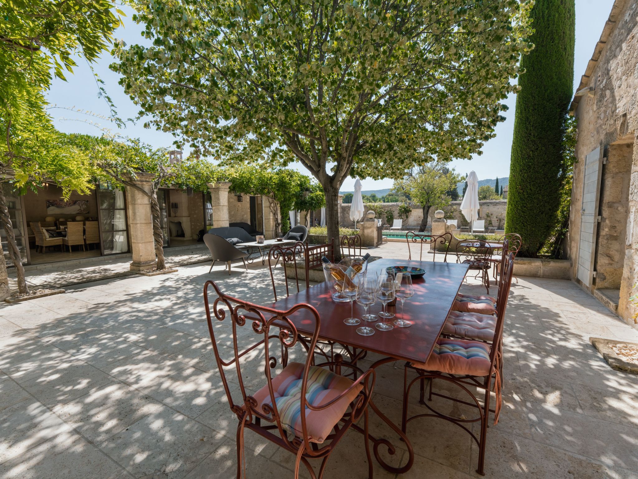 Accommodation at the villa is set over one floor, with spacious open-plan living areas and formal dining room opening onto a surrounding terrace overlooking the Alpilles.