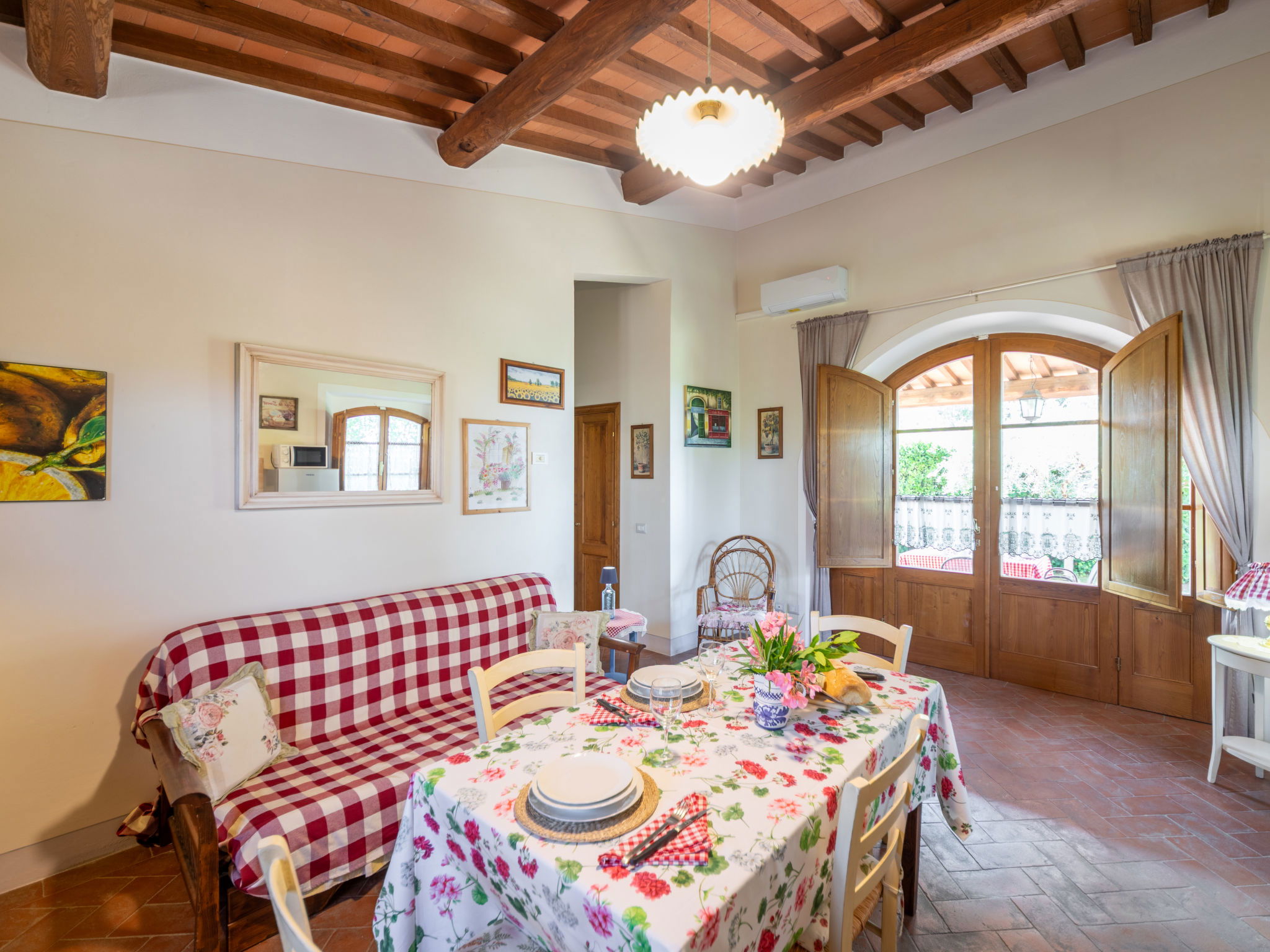 Complexe de vacances "San Regolo", 460 m au dessus du niveau de la mer. 6 maisons dans le même complexe de vacances. Dans le hameau de San Regolo, à 10 km du centre de Gaiole in Chianti, à 16 km du centre de Radda in Chianti, à 76 km du centre de Firenze, situation ensoleillée sur une colline, quartier résidentiel, dans la verdure. En commun: piscine (15 x 6 m, profondeur 120 - 220 cm, disponibilité saisonnière: 01.Mai. - 25.Oct.). Bassin pour les enfants, douche extérieure, meubles de jardin, entretien de la piscine par le propriétaire/jardinier. Infrastructures de la résidence: réception, massage (en sus). Chauffage central, blanchisserie, lave-linge (en commun), chauffage payable localement (29.Mar. - 31.Oct.), possibilité de chauffage uniquement du 01.Nov. - 28.Mar.. A disposition: vélos (6) (en sus). Cuisinier possible (en sus). Place de parking sur le terrain. Borne de recharge électrique. Magasins 10 km, magasin d'alimentation 5 km, supermarché 10 km, restaurant 1 km, arrêt de bus 10 km, plage de sable "Castiglione della Pescaia" 115 km, centre thermal "Rapolano Terme" 26 km. Attractions à proximité: Castello di Brolio 2 km, Castelnuovo Berardenga 13 km, Siena 20 km, Castellina in Chianti 27 km, Greve in Chianti, Monteriggioni 35 km, Monte San Savino 39 km. Veuillez noter: adapté(e) aux familles. La photo ne montre qu’un exemple de location de vacances.