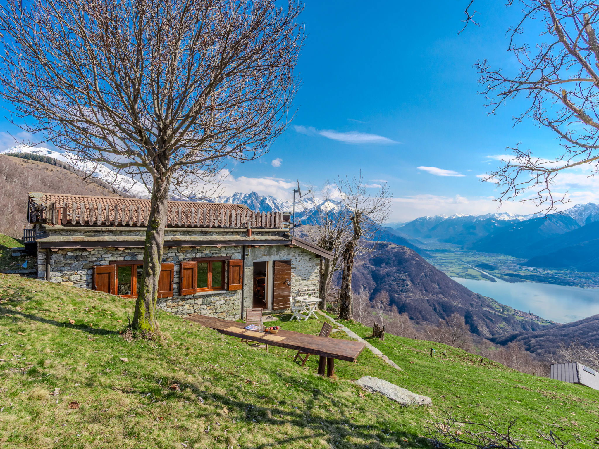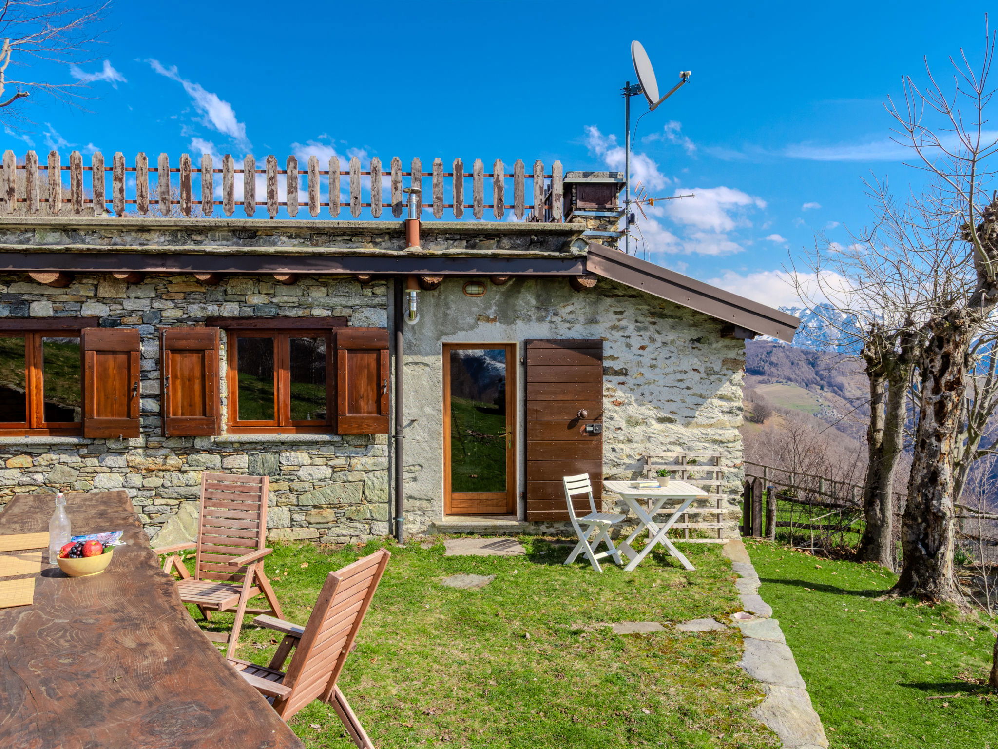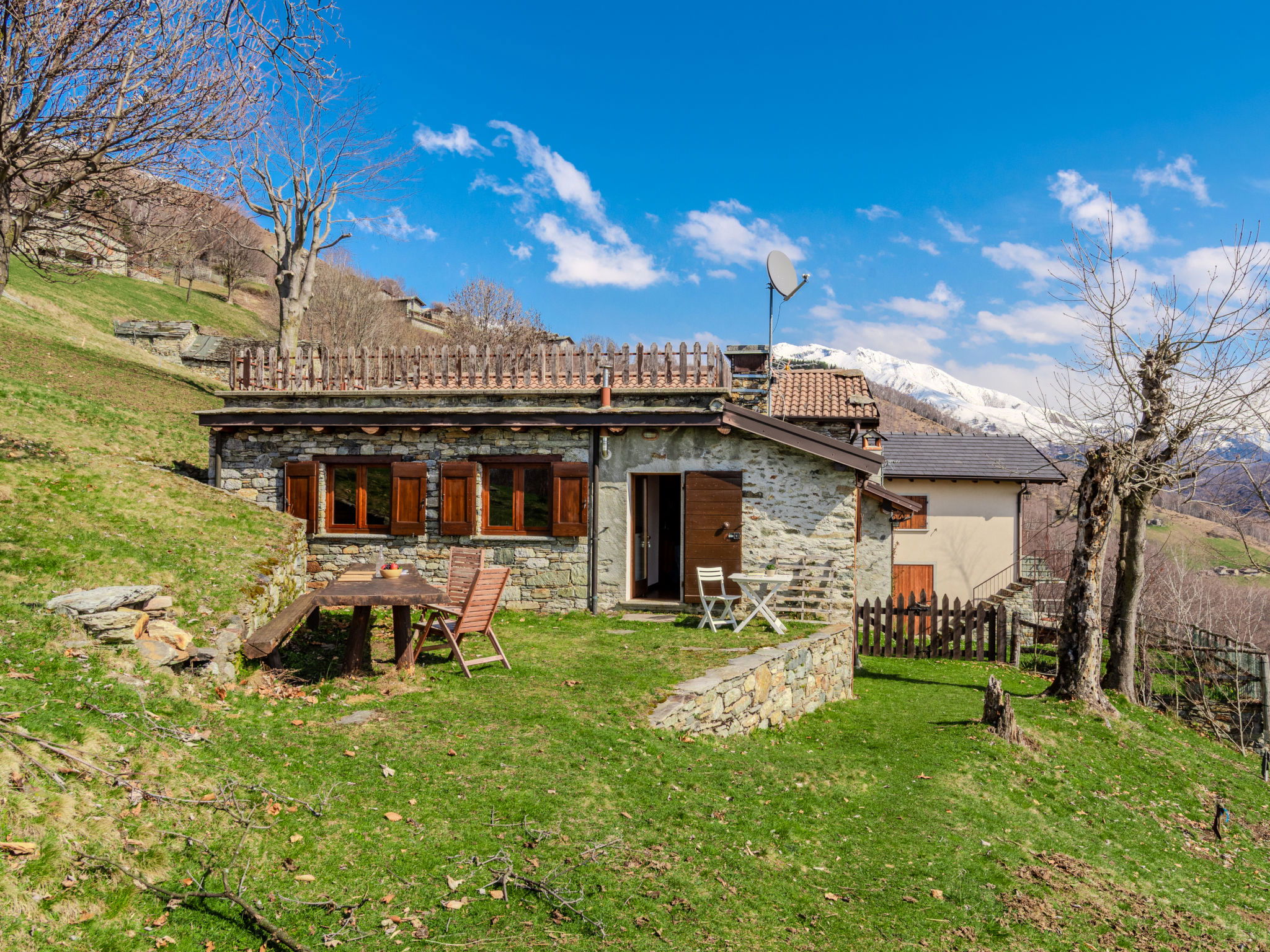 Chalet d'alpage accueillant, rustique "Baita Santina". Dans le haut de la station de Peglio, dans le hameau de Bodone, à 15 km du centre de Gravedona, à 32 km du centre de Menaggio, à 67 km du centre de Como, situation tranquille, ensoleillée, surélevée sur un versant, à 12 km du lac. A usage privé: terrain à l'état naturel, jardin (pas clôturé). Accès en voiture par un chemin étroite de 5 km de long (route de montagne). Place de parking sur le terrain. Magasin d'alimentation 5 km, supermarché 13 km, arrêt de bus 5 km, gare ferroviaire "Como San Giovanni" 60 km, plage de graviers "Lido di Gravedona" 12 km, piscine 12 km. Marina 12 km, ecole de surf 18 km, ecole de voile 18 km. Attractions à proximité: Palazzo Gallio-Gravedona, Chiesa Santa Maria del Tiglio Gravedona, Agriturismo Zertin, Parco Valle Albano, Lake Como Adventure Park, Gravedona. Les lacs connus sont facilement accessibles: Lago di Lugano, Lago di Mezzola. Région de randonnées: Monte La Motta, Monte Duria, Alpe Paregna.