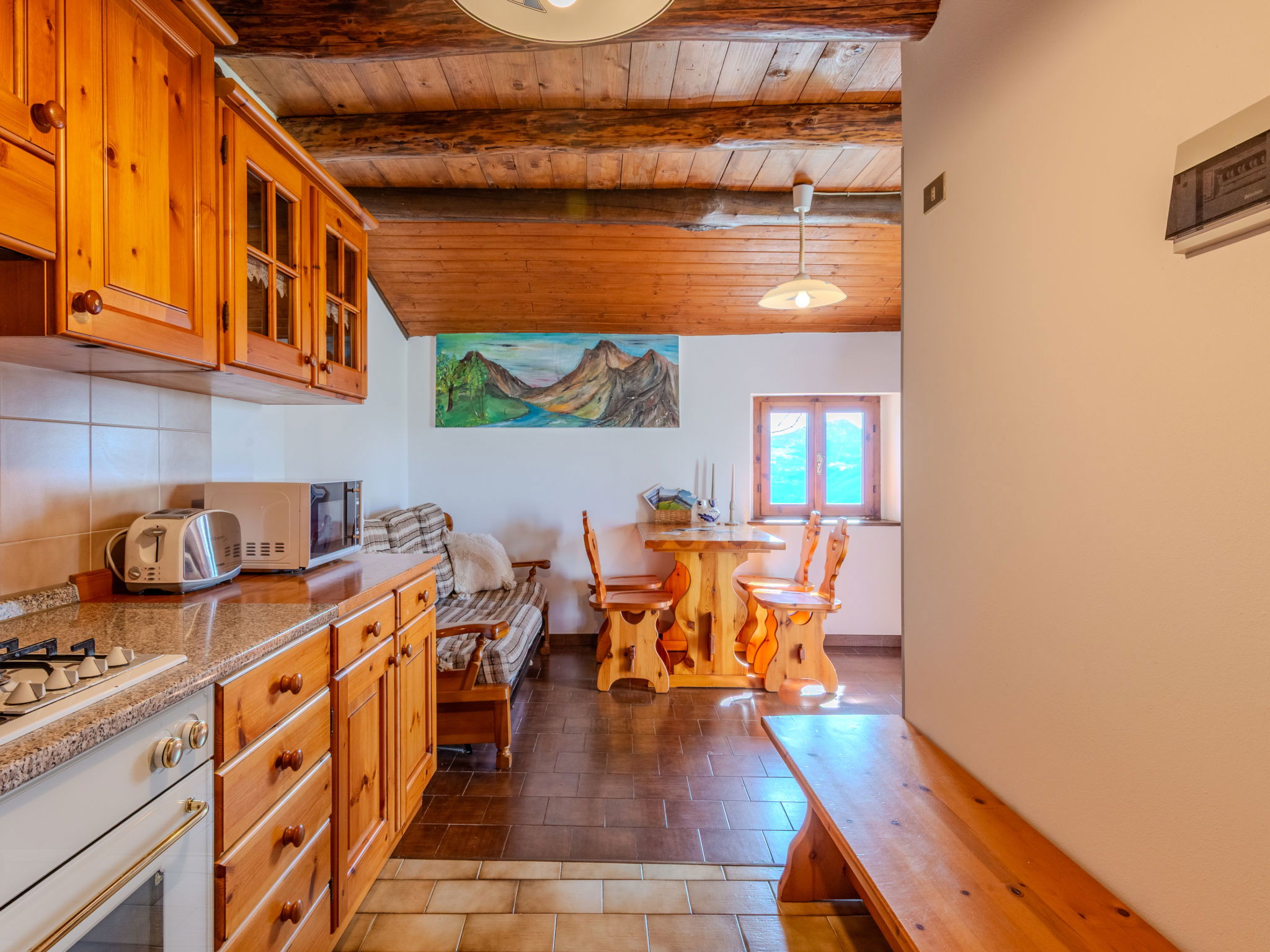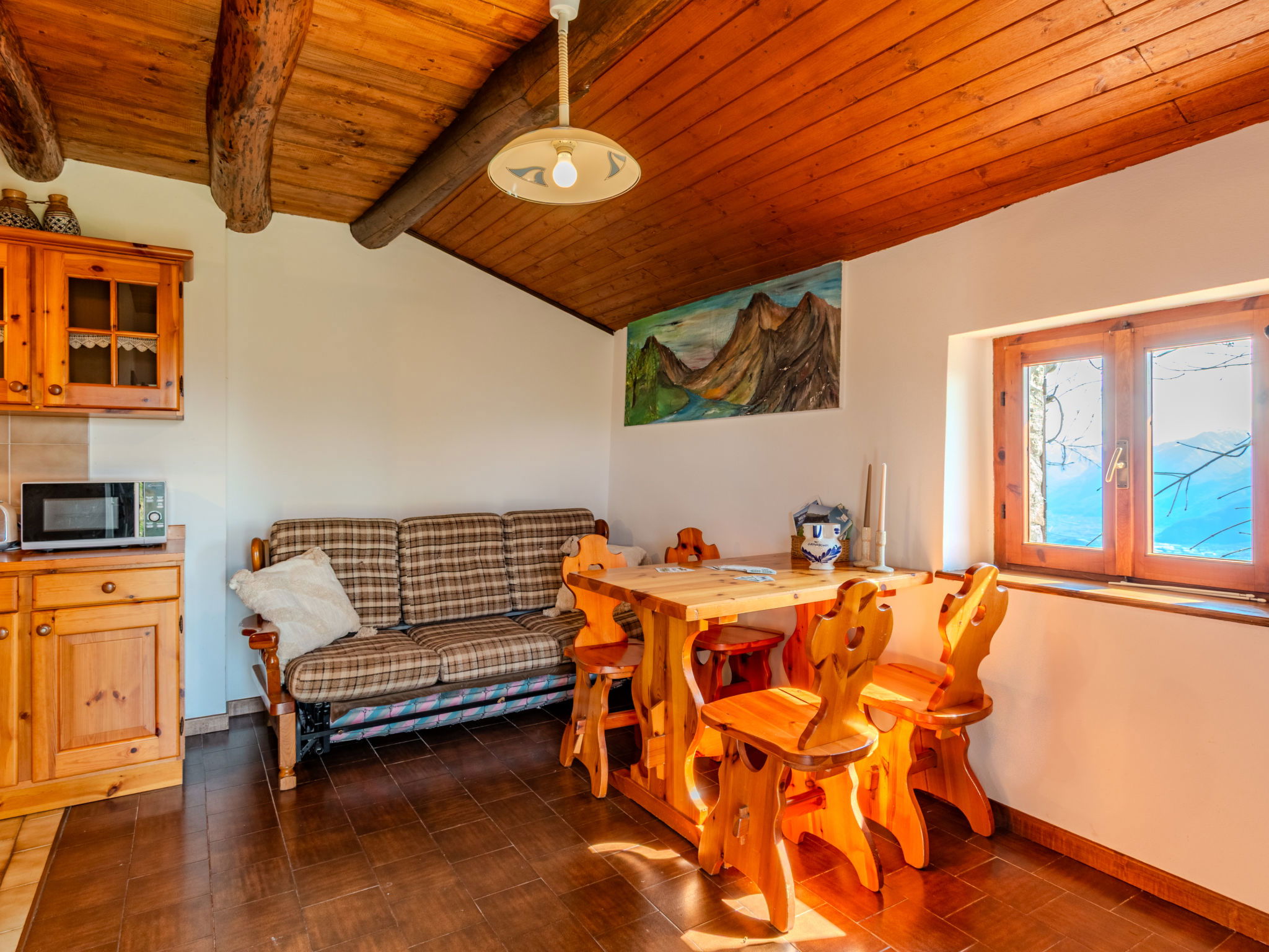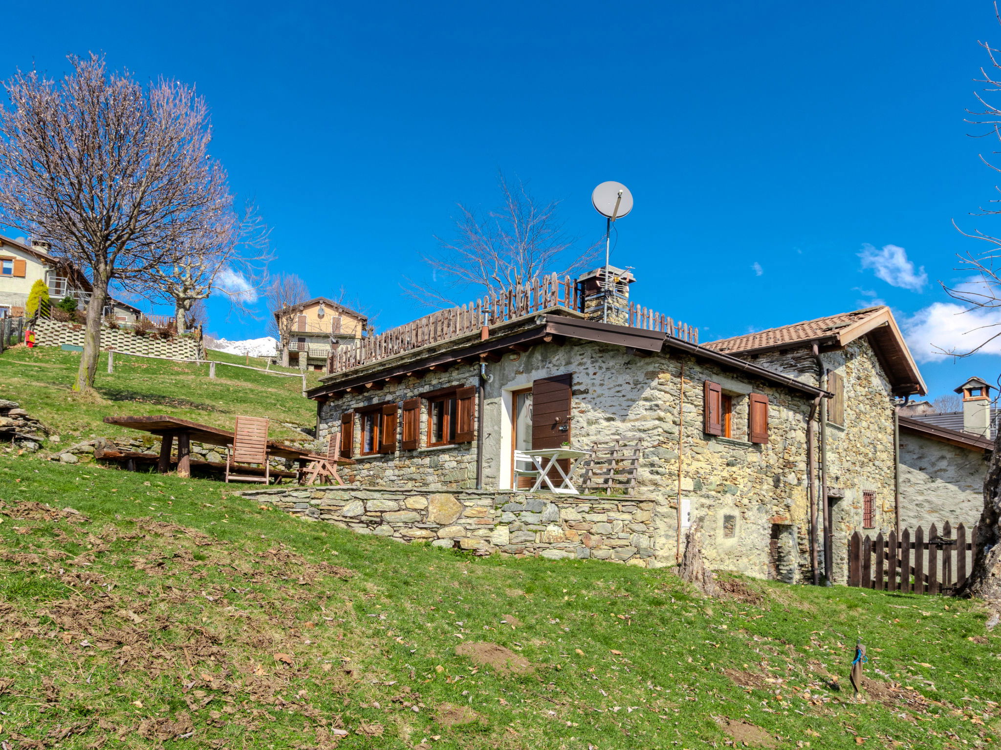 Chalet d'alpage accueillant, rustique "Baita Santina". Dans le haut de la station de Peglio, dans le hameau de Bodone, à 15 km du centre de Gravedona, à 32 km du centre de Menaggio, à 67 km du centre de Como, situation tranquille, ensoleillée, surélevée sur un versant, à 12 km du lac. A usage privé: terrain à l'état naturel, jardin (pas clôturé). Accès en voiture par un chemin étroite de 5 km de long (route de montagne). Place de parking sur le terrain. Magasin d'alimentation 5 km, supermarché 13 km, arrêt de bus 5 km, gare ferroviaire "Como San Giovanni" 60 km, plage de graviers "Lido di Gravedona" 12 km, piscine 12 km. Marina 12 km, ecole de surf 18 km, ecole de voile 18 km. Attractions à proximité: Palazzo Gallio-Gravedona, Chiesa Santa Maria del Tiglio Gravedona, Agriturismo Zertin, Parco Valle Albano, Lake Como Adventure Park, Gravedona. Les lacs connus sont facilement accessibles: Lago di Lugano, Lago di Mezzola. Région de randonnées: Monte La Motta, Monte Duria, Alpe Paregna.