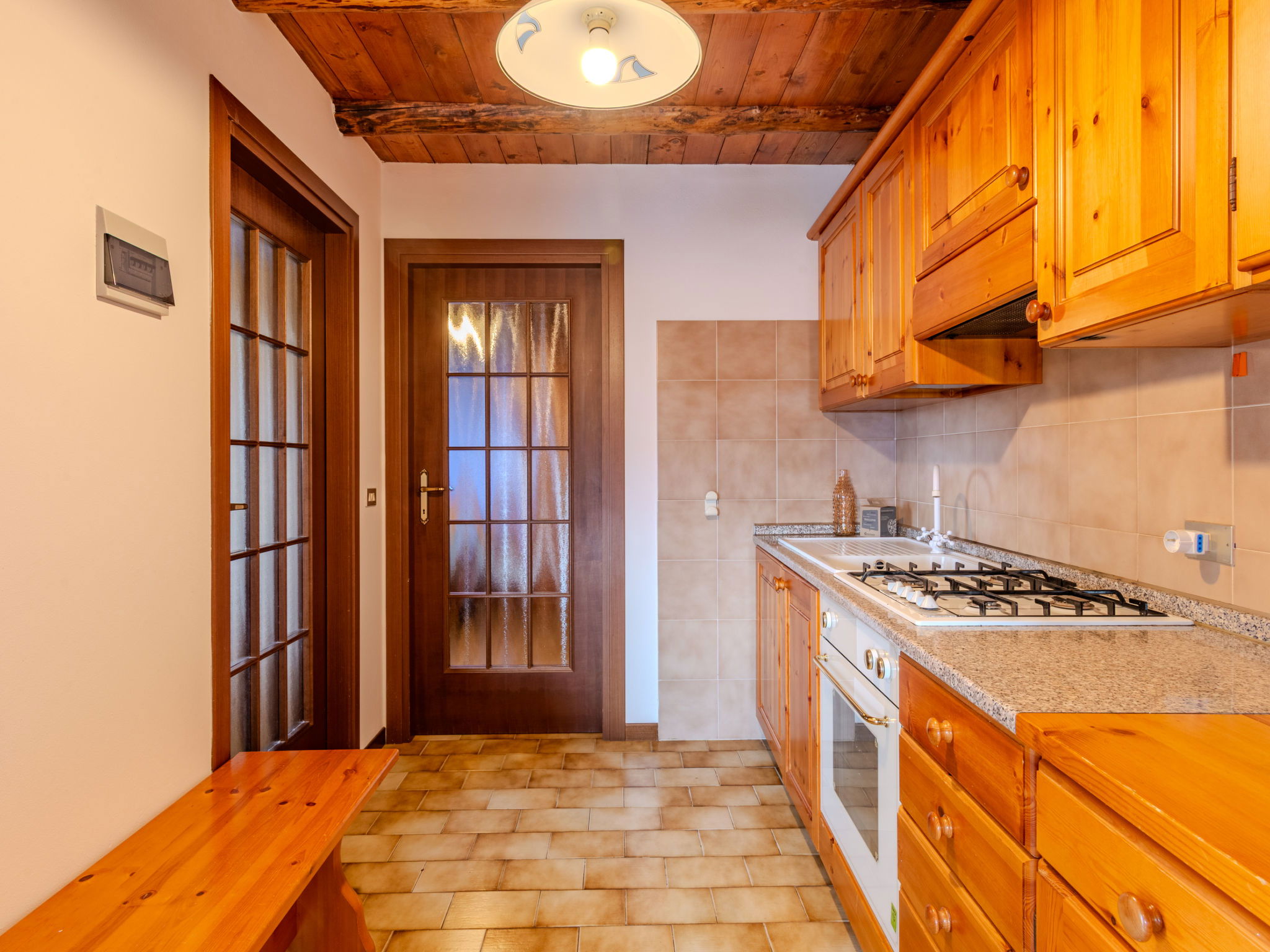 "Baita Santina", maison 2 pièces 40 m2, au rez-de-chaussée. Aménagement rustique et avec beaucoup de bois: séjour avec cheminée (uniquement à titre de décoration), table pour les repas. 1 chambre avec 1 x 1 lits superposés, 1 lit double. Coin cuisine (four, Cuisinière à gaz, 4 feux, grille-pain, bouilloire électrique, congélateur). Bain/bidet/WC. Pas de chauffage. Sol en pierres naturelles. Jardin. Place pour s'asseoir. Très belle vue panoramique sur le lac, les montagnes et les alentours. Place de parking No 1. Veuillez noter: adapté(e) aux familles. Maison non-fumeur. 1 animal/ chien autorisé. Détecteur de fumée, extincteur. IT013178C27C5RSM47