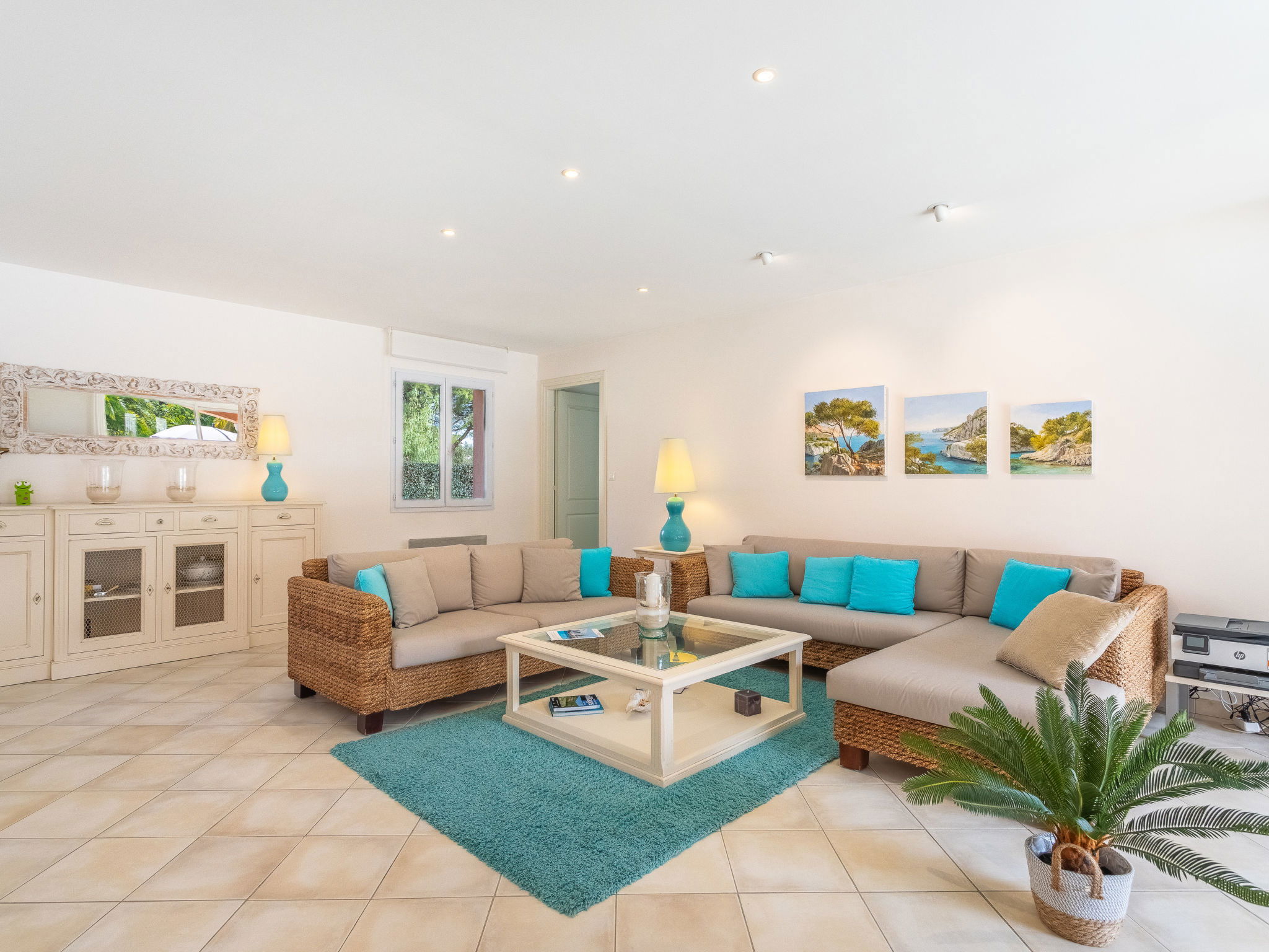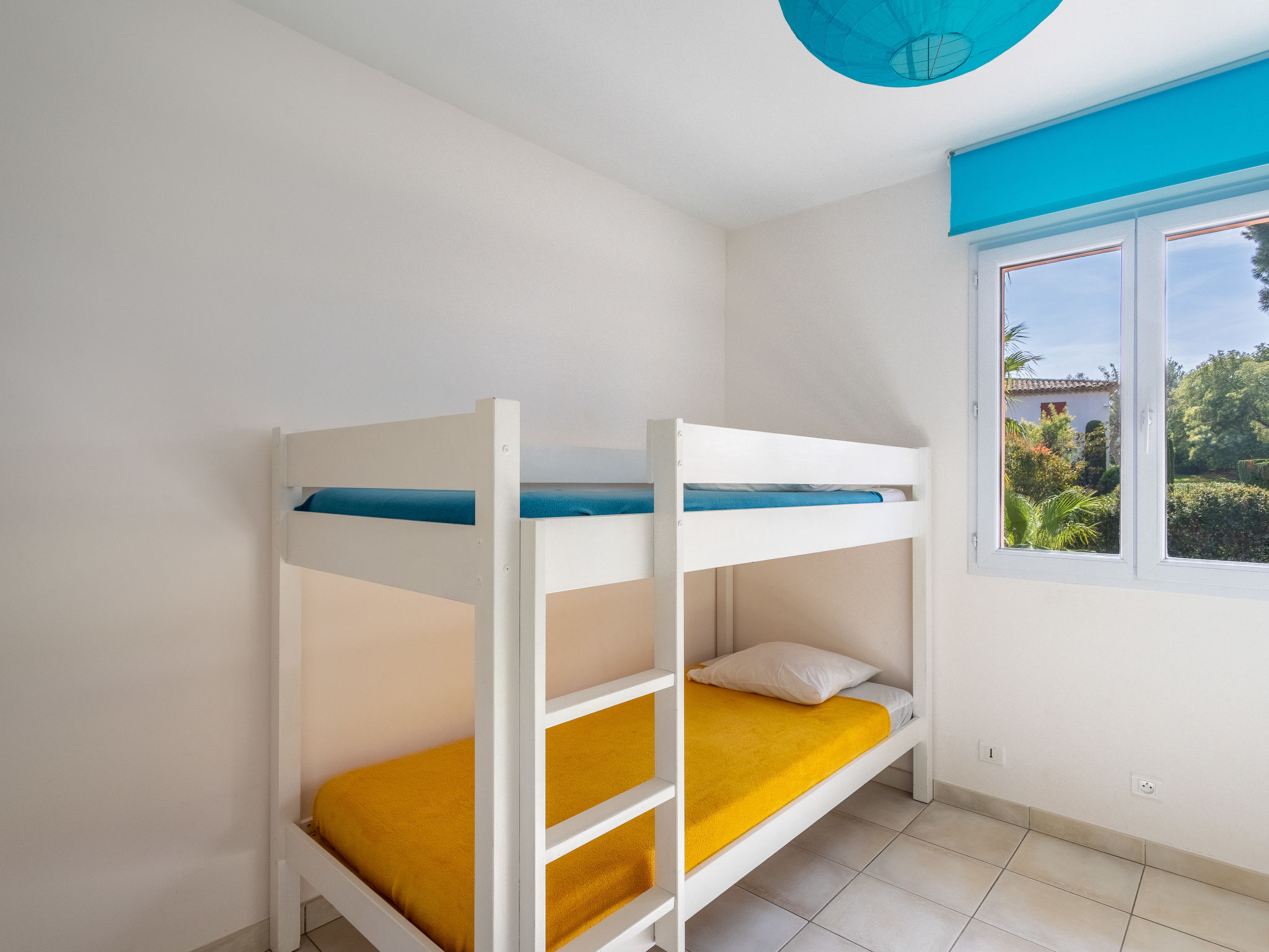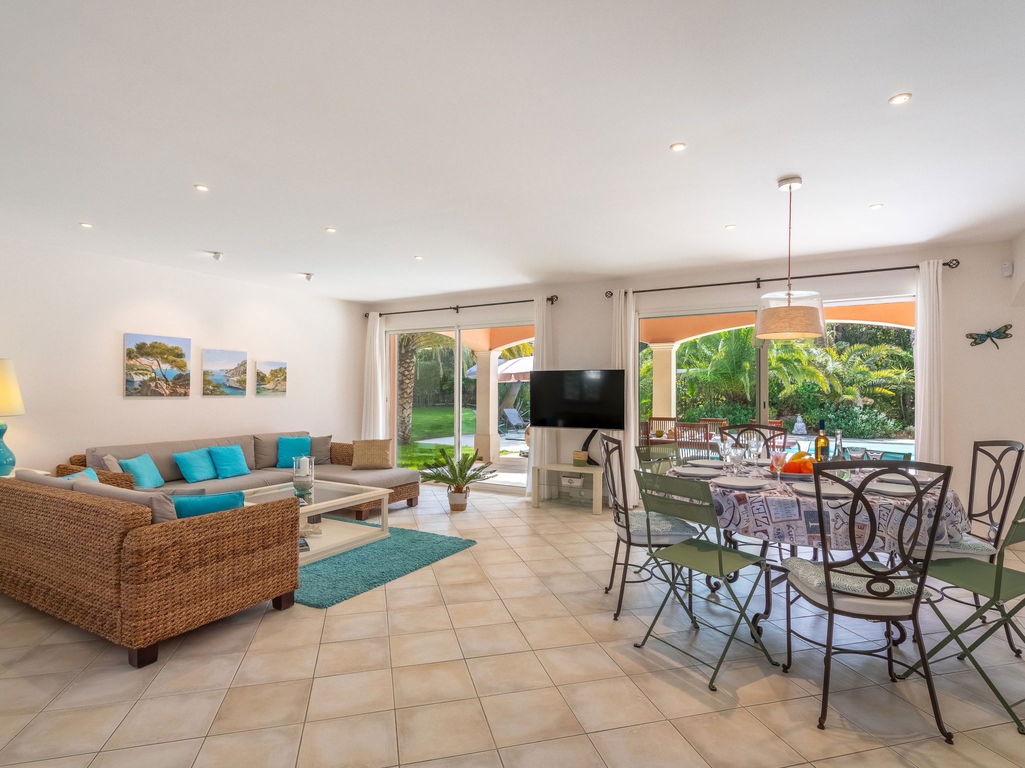 Villa 5 pièces 160 m2 sur 2 niveaux. Aménagement luxueux: grand séjour/salle à manger avec TV (écran plat). Sortie sur la terrasse. 1 chambre avec Dressing avec 1 grand-lit (160 cm, longueur 200 cm), bain/douche/WC, double vasque et TV (écran plat), air-conditionné. Sortie sur le jardin. 1 chambre avec 1 grand-lit (160 cm, longueur 200 cm), douche, double vasque et air-conditionné. Sortie sur la terrasse. Cuisine (four, lave-vaisselle, 3 plaques à induction, grille-pain, bouilloire électrique, micro-ondes, congélateur, cafetière électrique, Capsules pour machine à café (Nespresso) (NON INCLUSES)). WC séparé. À l'étage supérieur: 1 chambre avec 1 grand-lit (160 cm, longueur 200 cm). Sortie sur le balcon. 1 chambre avec 1 x 2 lits superposés (90 cm, longueur 200 cm). Douche/WC, double vasque. Chauffage électrique, air-conditionné. Balcon 4 m2, grande terrasse 24 m2, couverte, situation sud. Meubles de terrasse, barbecue, chaises longues (8). A disposition: lave-linge, sèche-linge, chaise haute pour enfant, lit bébé jusqu'à 2 ans, sèche-cheveux. Internet (Connexion WIFI, gratuit). Place de parking, garage, hauteur 195 cm, largeur 300 cm. Veuillez noter: maison non-fumeur. 1 animal/ chien de petite taille autorisé. Détecteur de fumée. Annonce d'un particulier (art 155, IV du CGI). 83068001414RR
