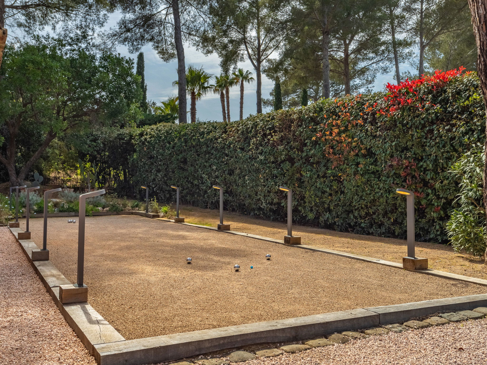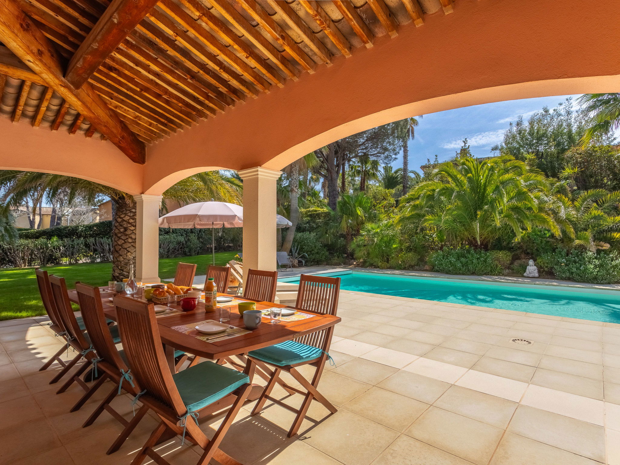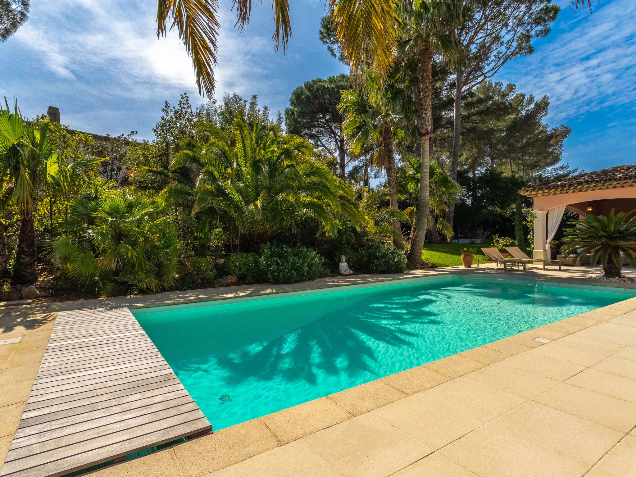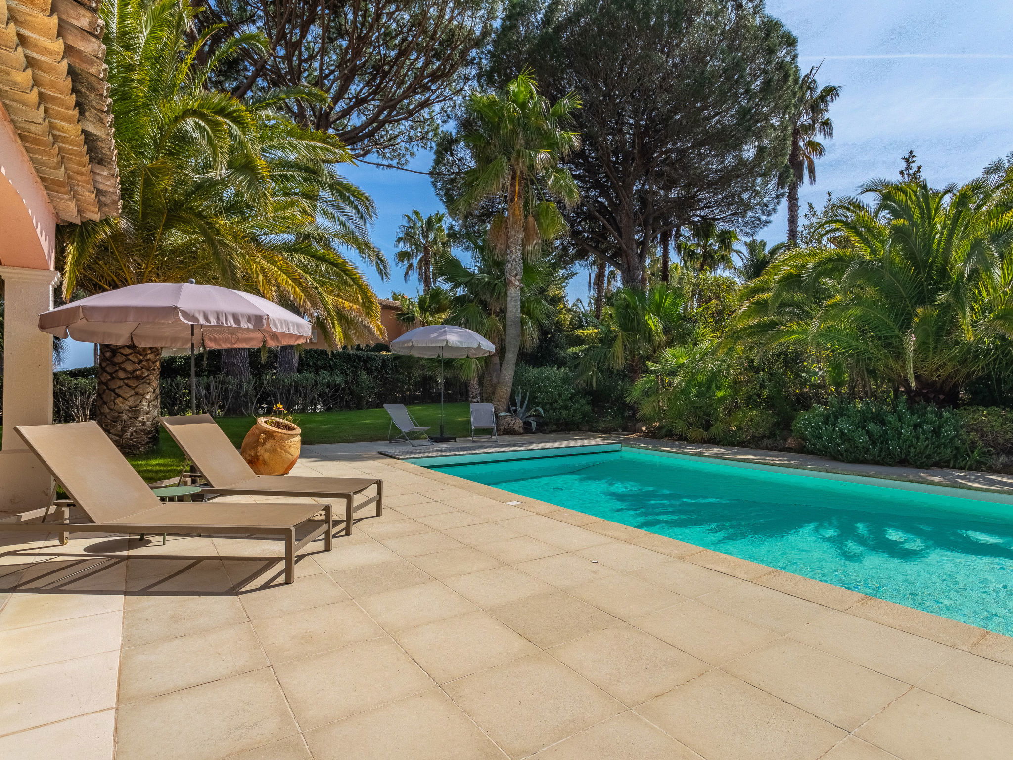 Belle villa "Indigo", de 2 étages. En-dehors de la localité, à 5 km du centre de Grimaud, dans un quartier résidentiel, à 1.4 km de la mer, à 1.4 km de la plage. A usage privé: jardin entretenu 1'330 m2 (clôturé) avec pelouse, piscine chauffée (10 x 5 m, profondeur 100 - 190 cm, disponibilité saisonnière: 01.Avr. - 31.Oct.) avec protection par couverture de volet. Pool house avec réfrigérateur, terrain de pétanque. Magasins 4 km, magasin d'alimentation 300 m, supermarché 4 km, restaurant 800 m, arrêt de bus "Prairies de la mer" 1 km, plage de sable "Les Prairies de la mer" 1.4 km. Port plaisance 3 km, terrain de golf (18 trous) 4 km, ecole de voile 5 km, tennis 4 km, piste cyclable 800 m. Attractions à proximité: Saint Tropez 11 km, Sainte Maxime 11 km, Plages de Pampelonne 17 km, Cannes 85 km, Nice 110 km, Monaco 130 km. Les lacs connus sont facilement accessibles: Le Lac de Sainte Croix 98 km. Région de randonnées: Le Massif de l'Esterel 50 km. Veuillez noter: voiture recommandée. La remise des clés a lieu à l’agence de Gassin, 4 km.