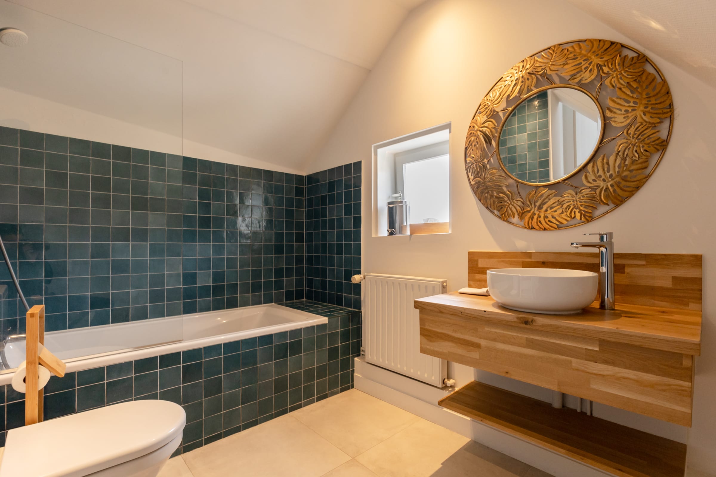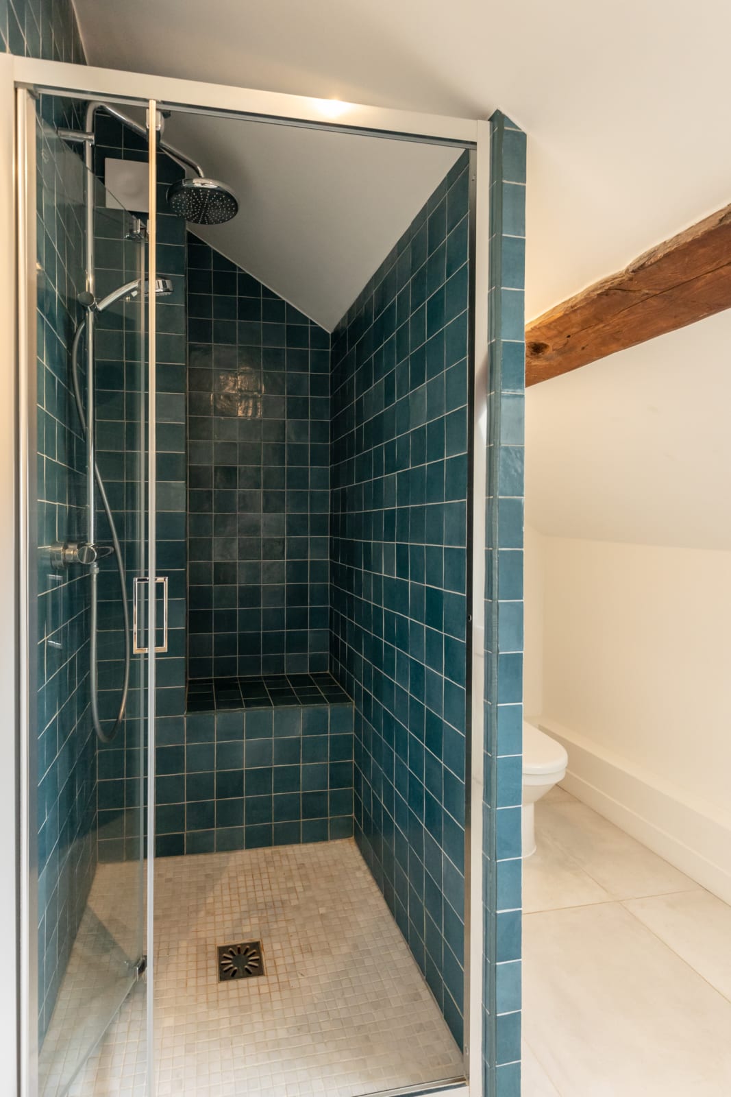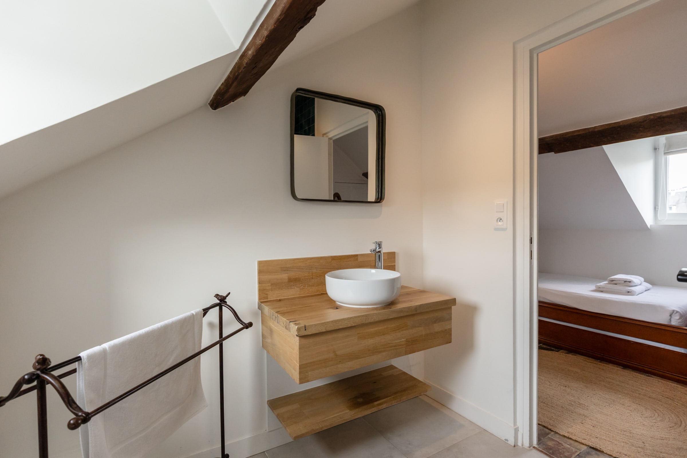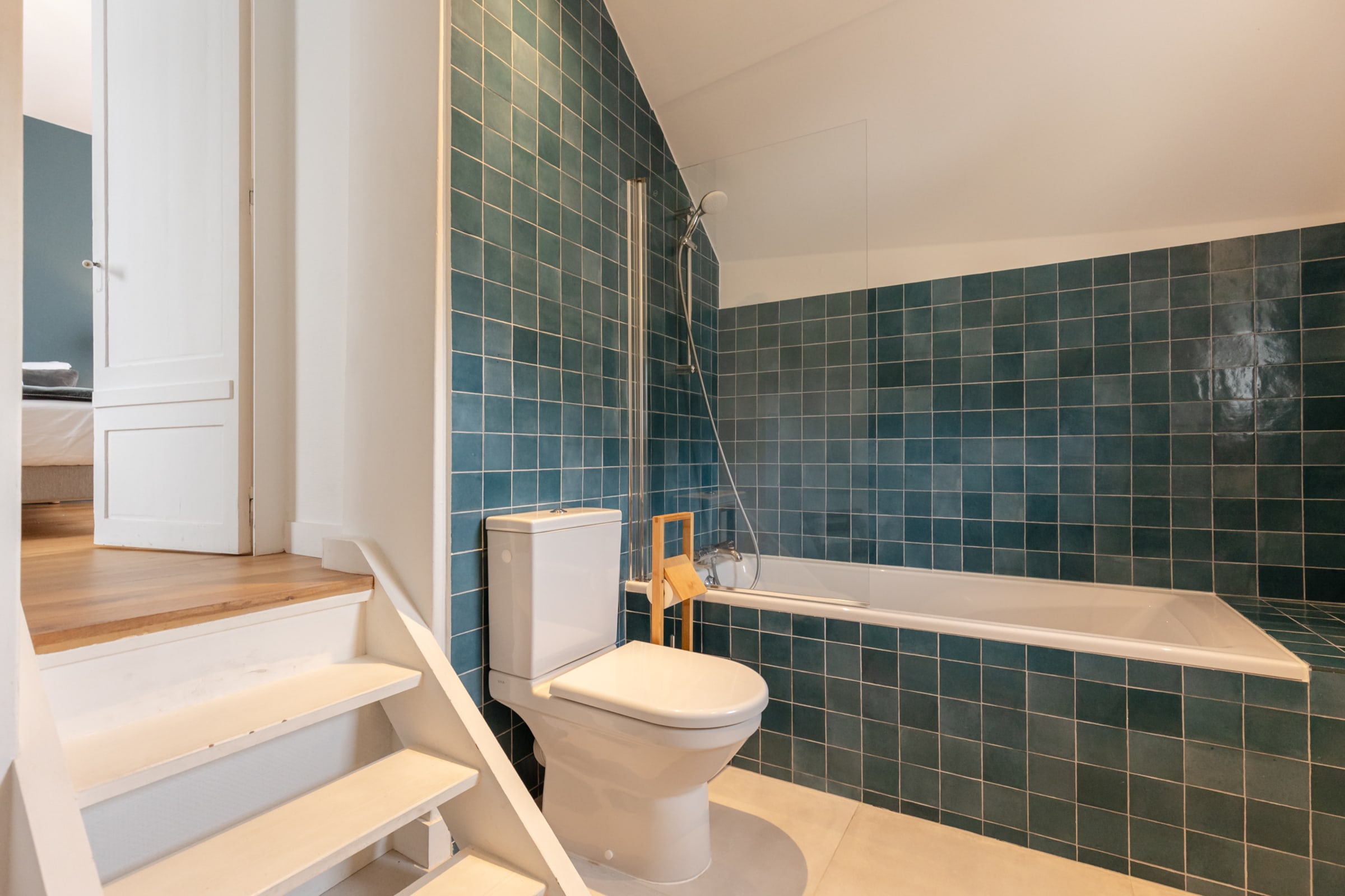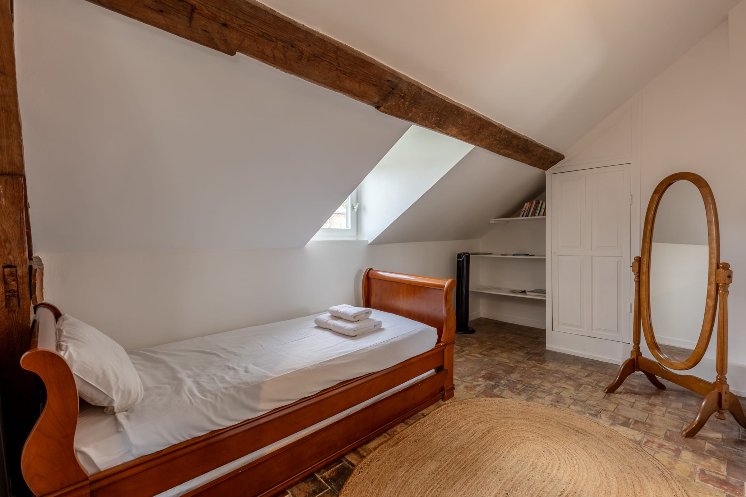 Un très bel escalier dessert deux grandes chambres, avec lit 160/200 cm avec chacune salle de bains et wc, dressing et lingerie.