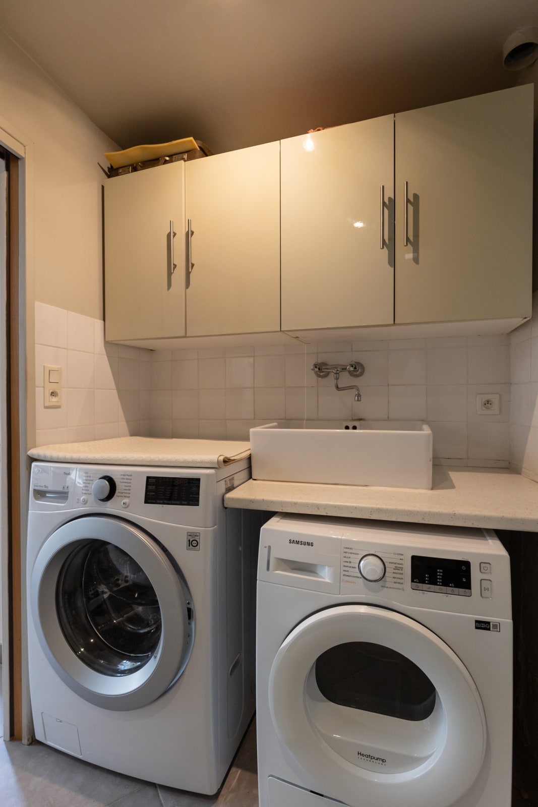 Elle est composée au rez de chaussée, d'une entrée galerie avec carreaux de ciments, une cuisine équipée (Nespresso, four, plaques, micro ondes, réfrigérateur, lave vaisselle, bouilloire, toaster), salle à manger avec cheminée, salon avec cheminée, toilettes invités et buanderie avec lave linge et sèche linge.
