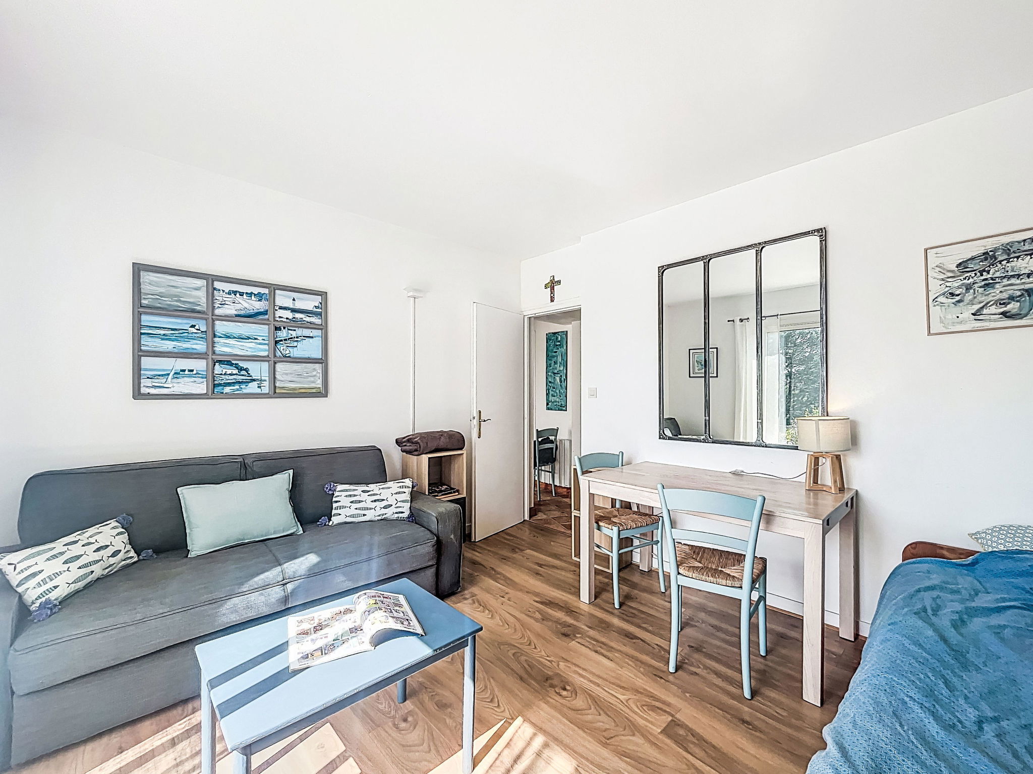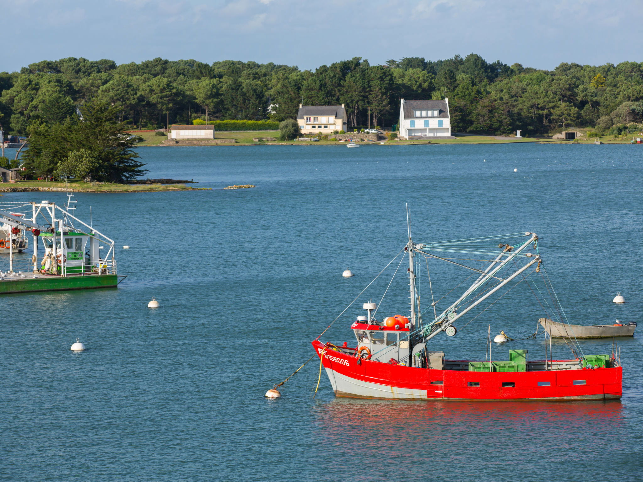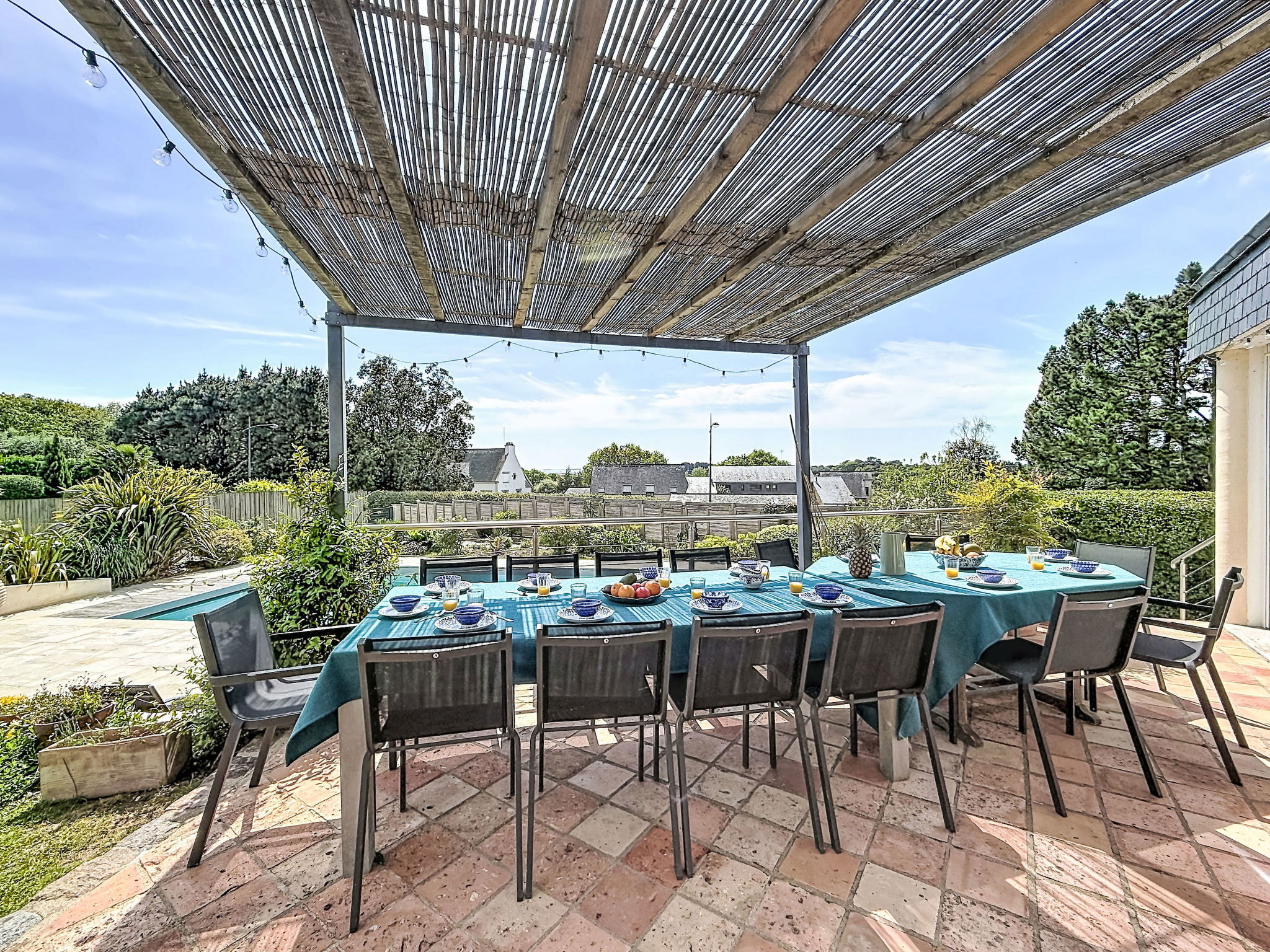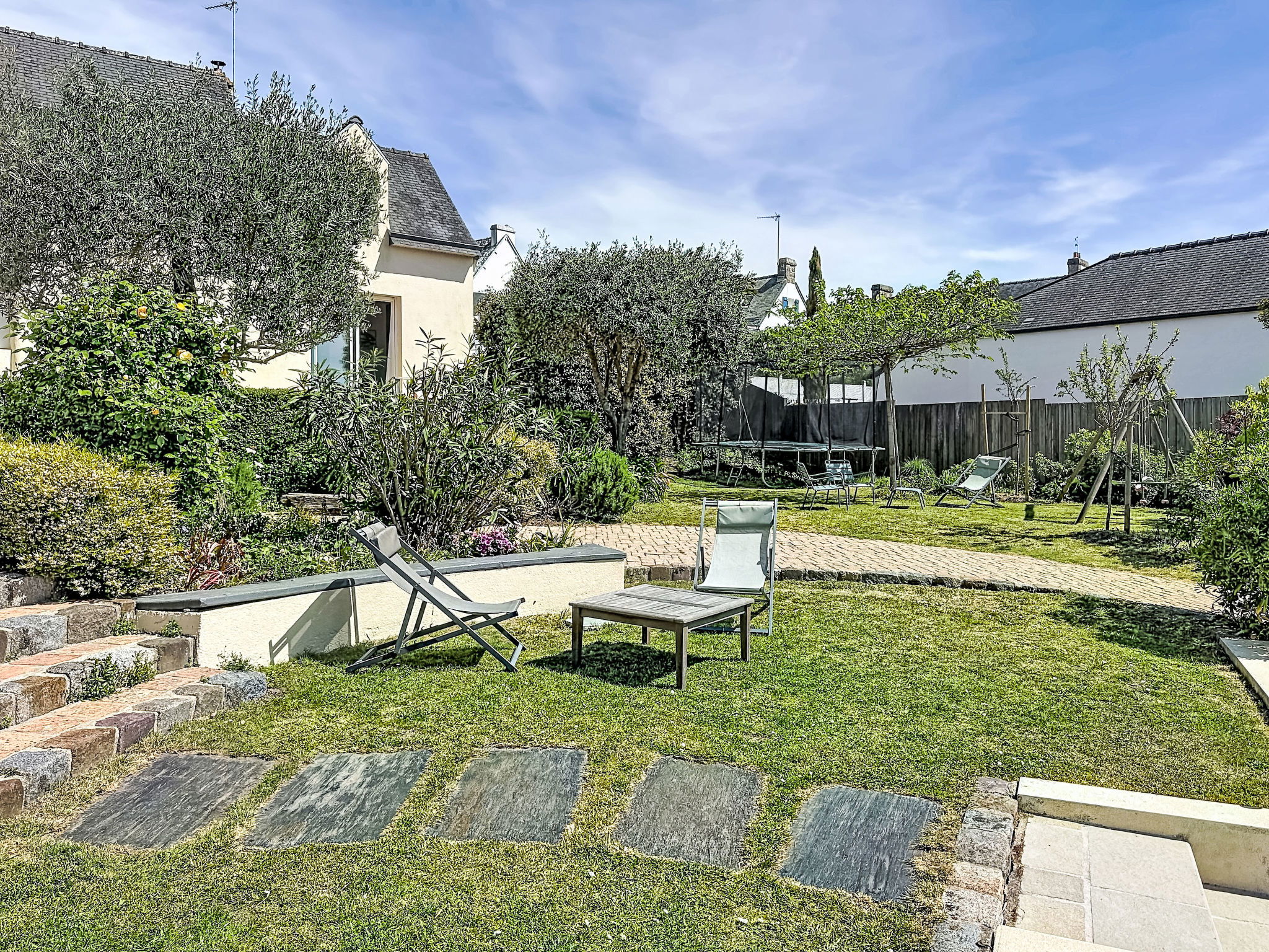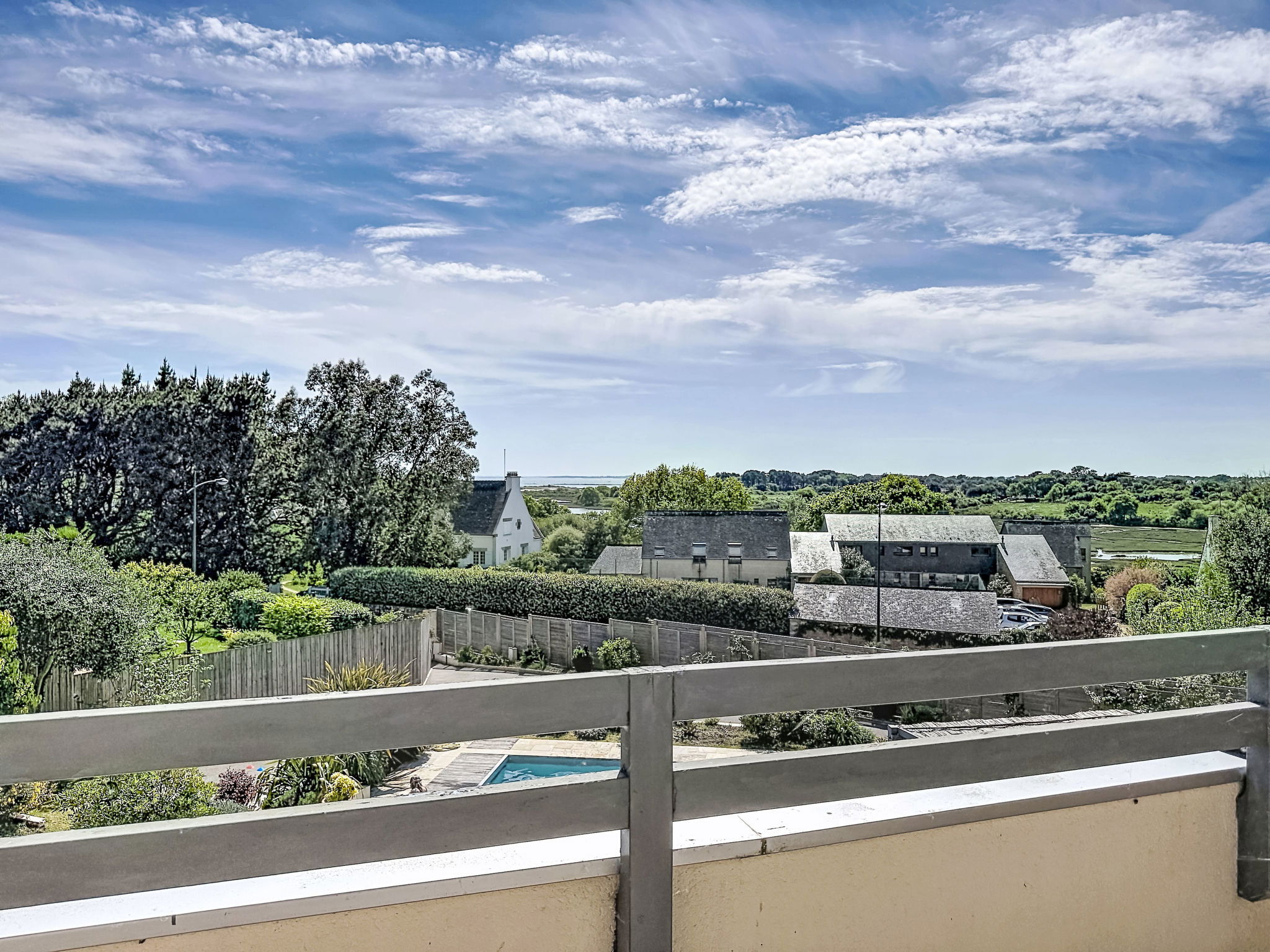 Villa "Villa Trugarez". Dans la localité, à 800 m du centre, à 900 m de la mer, à 2.5 km de la plage. A usage privé: terrain 1'200 m2 (clôturé), jardin entretenu, piscine rectangulaire, chauffée (4 x 9 m, profondeur 150 - 200 cm, disponibilité saisonnière: 01.Mai. - 30.Sep.) avec alarme de sécurité. Place de parking (pour 4 voitures) sur le terrain. Magasins, magasin d'alimentation, supermarché 800 m, restaurant 900 m, boulangerie 1 km, café 900 m, arrêt de bus 800 m, plage de sable "Port Biren" 2.5 km, centre thermal "Thalazur" 5 km. Port plaisance 900 m, terrain de golf (18 trous) 15 km, ecole de surf 9 km, ecole de voile 1.5 km, tennis 3 km. Attractions à proximité: Les alignements de Carnac 5 km, Presqu'île de Quiberon 13 km, Auray & Saint-Goustan 18 km, Vannes 32 km, Lorient 49 km. Région de randonnées: Golfe du Morbihan, Belle-île-en-mer.