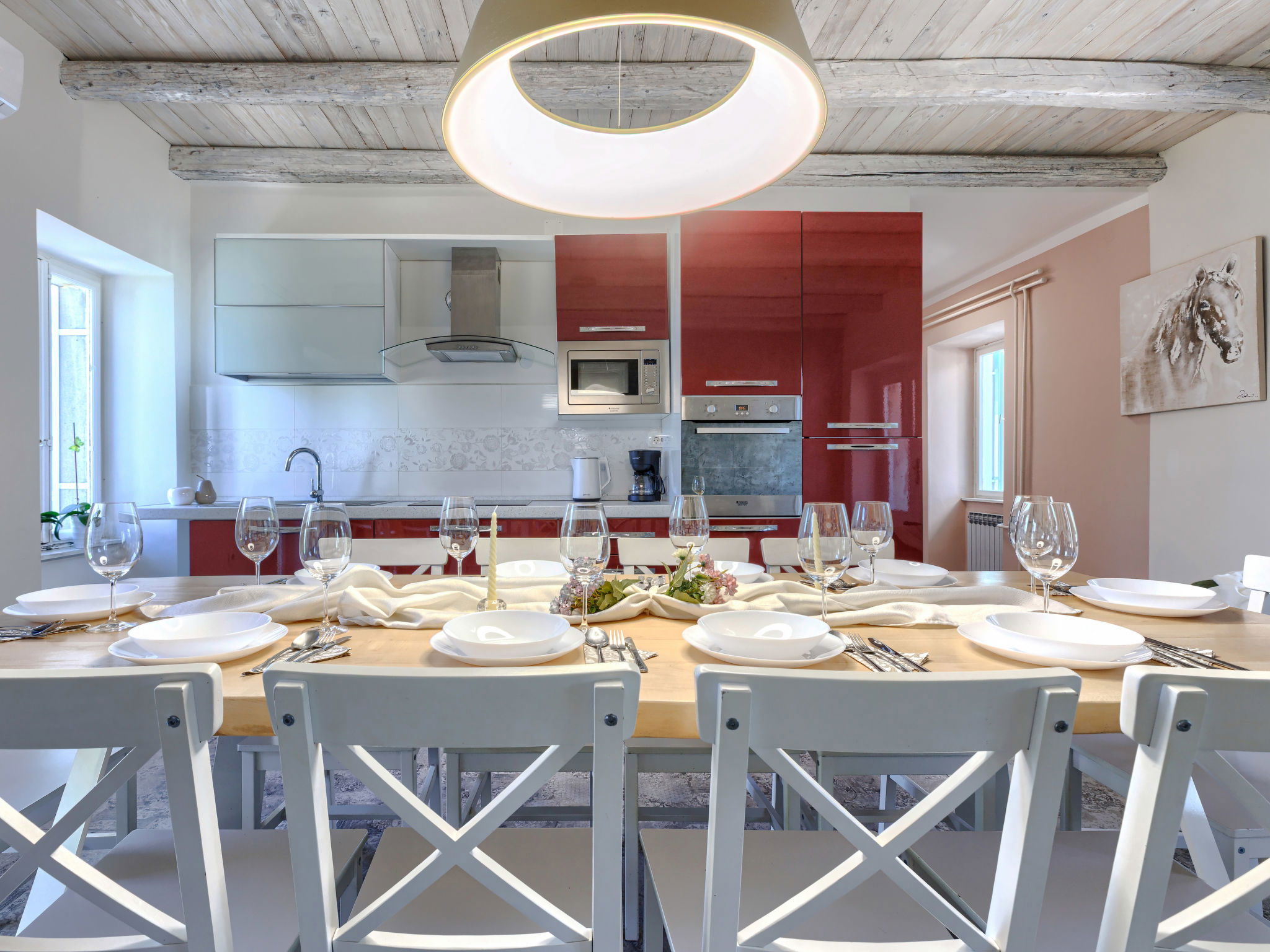 Maison individuelle "Villa Accordia", de 2 étages. À 1 km du centre de Labin, à 6 km du centre de Rabac, à 6 km de la mer, à 8 km de la plage. A usage privé: terrain 1'400 m2 (clôturé), pelouse et plantes, piscine rectangulaire (8 x 4 m, profondeur 140 cm, disponibilité saisonnière: 01.Avr. - 30.Oct.). Douche extérieure, terrasse (30 m2), barbecue, entretien de la piscine par le propriétaire/jardinier. Infrastructures de la Maison: accès internet, lave-linge. Place de parking (pour 6 voitures) près de la maison sur le terrain. Magasins 1 km, supermarché 4 km, restaurant 1 km, arrêt de bus "Labin" 4 km, plage de graviers 8 km, plage de rochers 6 km. Veuillez noter: Aéroport 45 km de la maison. La maison comprend 3 appartements loués ensemble: un appartement se situe au rez-de-chaussée et les deux autres se trouvent au 1er étage.