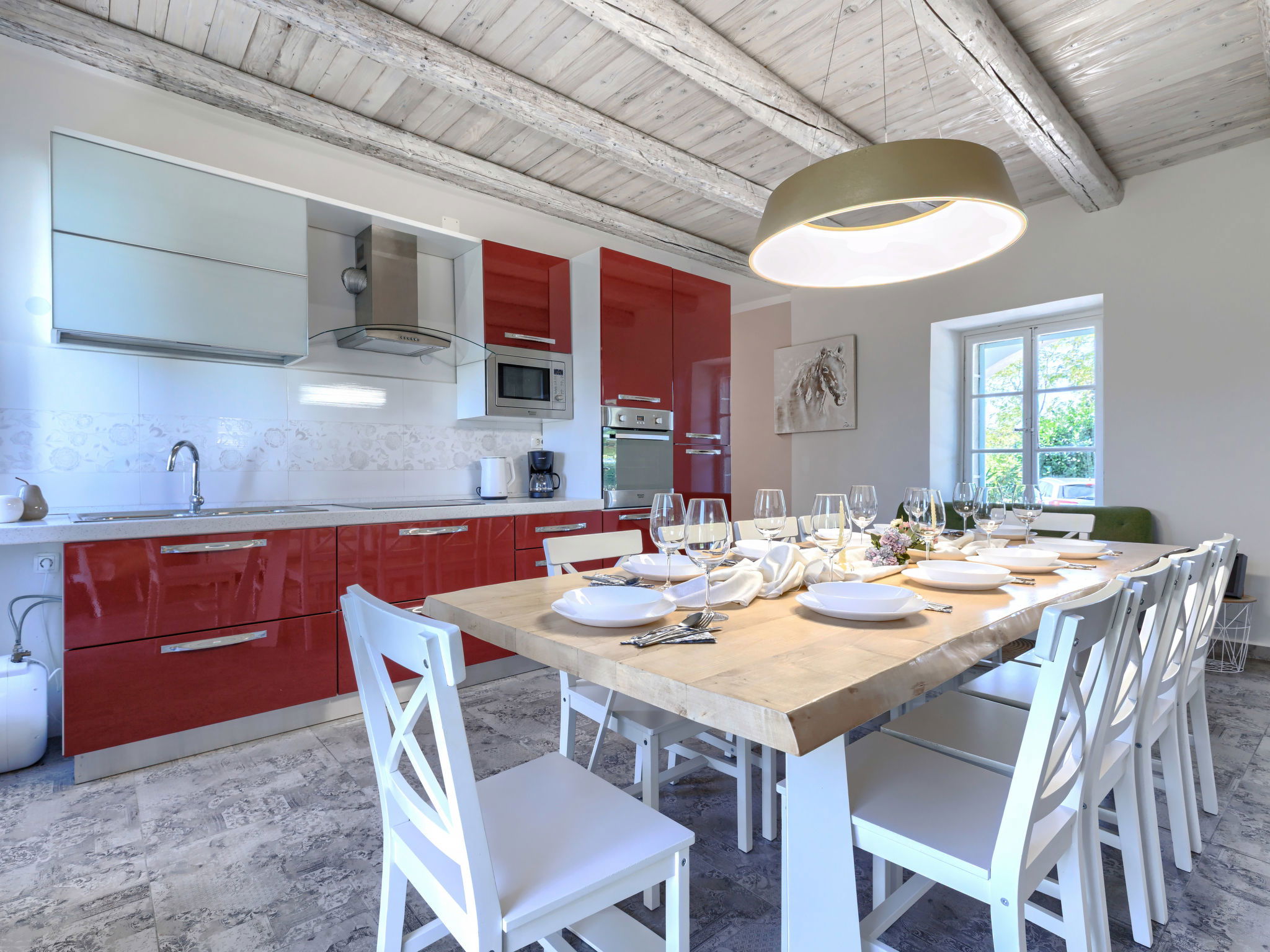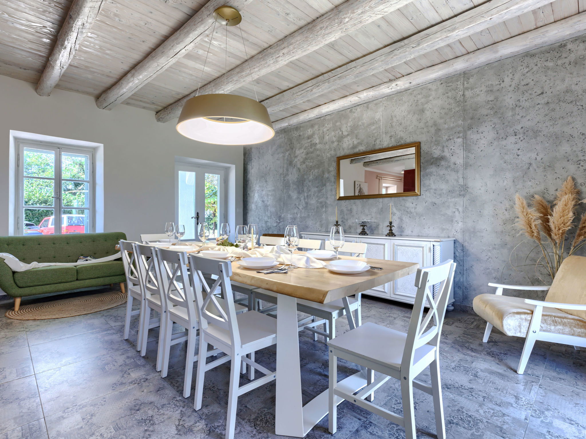 Maison 8 pièces 300 m2 sur 2 niveaux. Séjour/salle à manger avec TV (satellite) et air-conditionné. Sortie sur la terrasse, sur la piscine. 2 chambres, chaque chambre avec: 1 grand-lit (180 cm, longueur 200 cm). Cuisine ouverte (four, lave-vaisselle, 4 plaques vitrocéramiques, grille-pain, bouilloire électrique, micro-ondes, congélateur, cafetière électrique). Bain/bidet/WC. À l'étage supérieur: (escalier extérieur) salle à manger avec coin-cuisine et air-conditionné. 1 chambre avec 1 grand-lit (160 cm, longueur 200 cm). Séjour/salle à manger avec TV (satellite) et air-conditionné. Sortie sur le balcon. 2 chambres, chaque chambre avec: 1 grand-lit (180 cm, longueur 200 cm). 1 chambre avec 1 lit (90 cm, longueur 200 cm). Cuisine ouverte (1 plaque de cuisson, four, 3 feux, grille-pain, bouilloire électrique, congélateur, cafetière électrique). Bain/bidet/WC, douche/WC. Balcon 6 m2, terrasse 6 m2, couverte. Meubles de terrasse, mobilier de balcon, chaises longues. A disposition: fer à repasser, sèche-cheveux. Internet (Connexion WIFI, gratuit). Veuillez noter: maison non-fumeur. Maximum 2 animaux/ chiens autorisés.