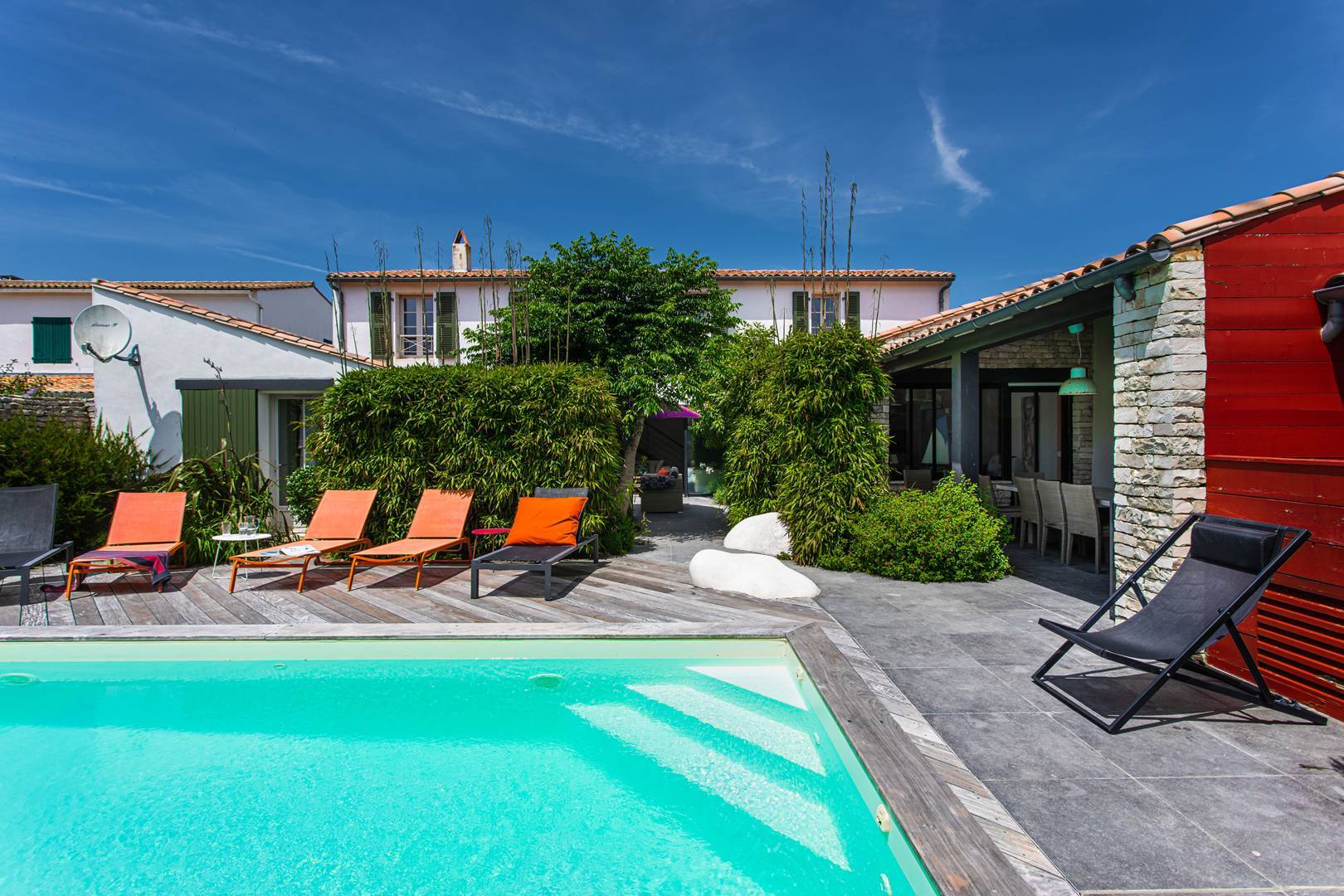 Venez vous ressourcer dans cette magnifique propriété décorée et aménagée avec goût, exposée sud, idéalement placée à quelques minutes à pied du marché de Bois-Plage, de la plage des Gollandières et à proximité des pistes cyclables. Vous apprécierez les volumes des espaces de vie ouverts sur le jardin avec terrasse, salon de jardin, préau d'été avec plancha gaz permettant de déjeuner/dîner dehors, et espace piscine avec transats. La piscine est chauffée (d'avril à octobre selon la météo) et sécurisée par un volet électrique.